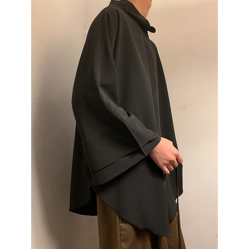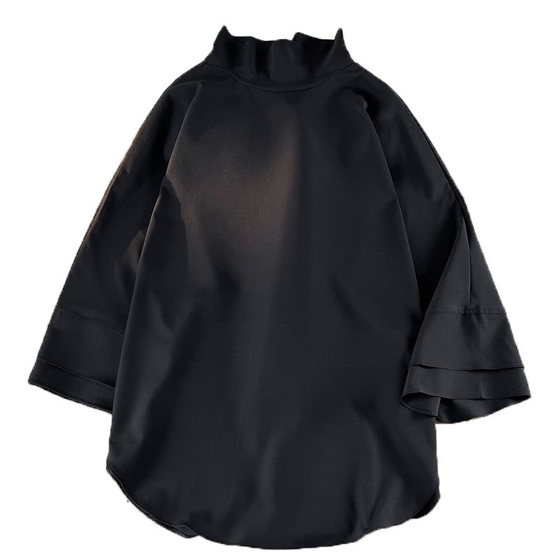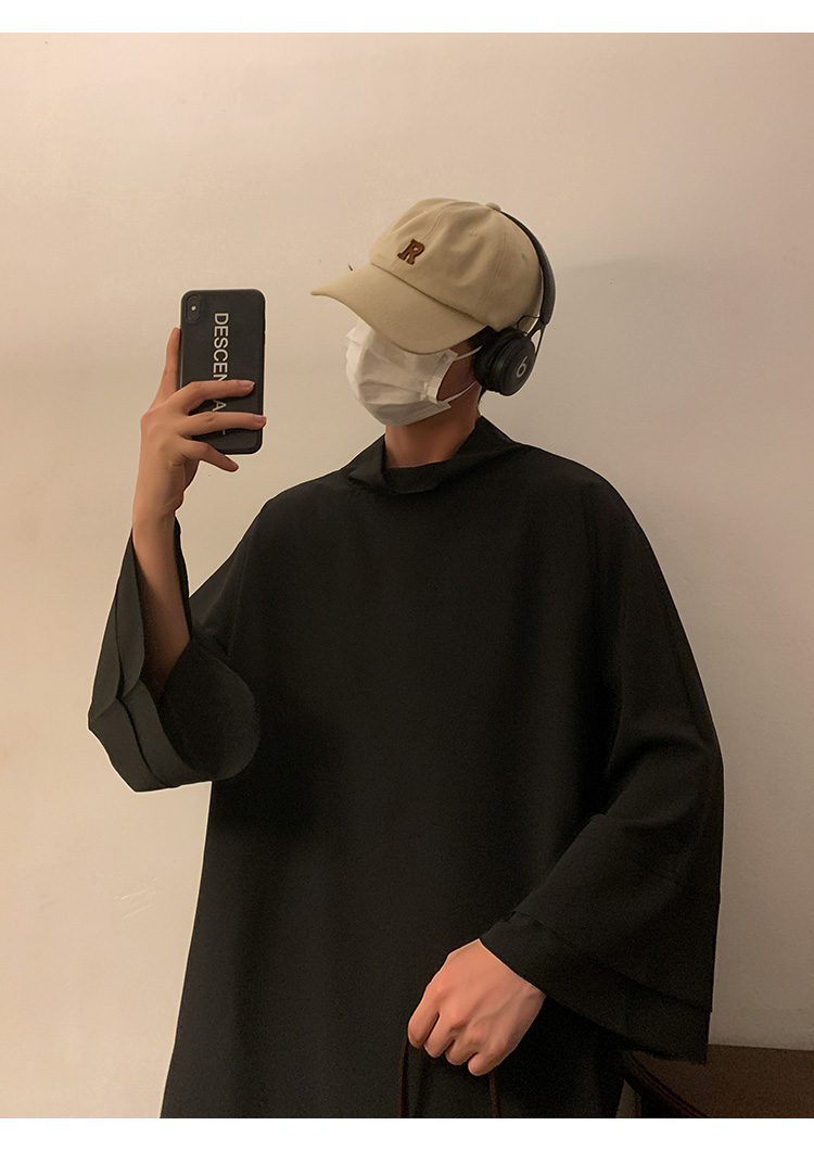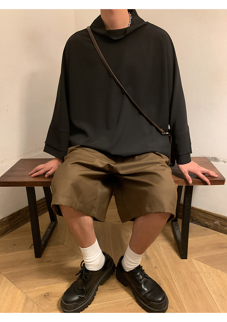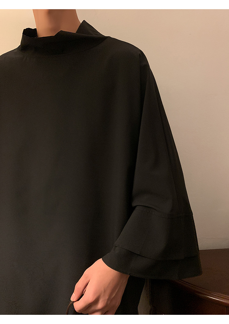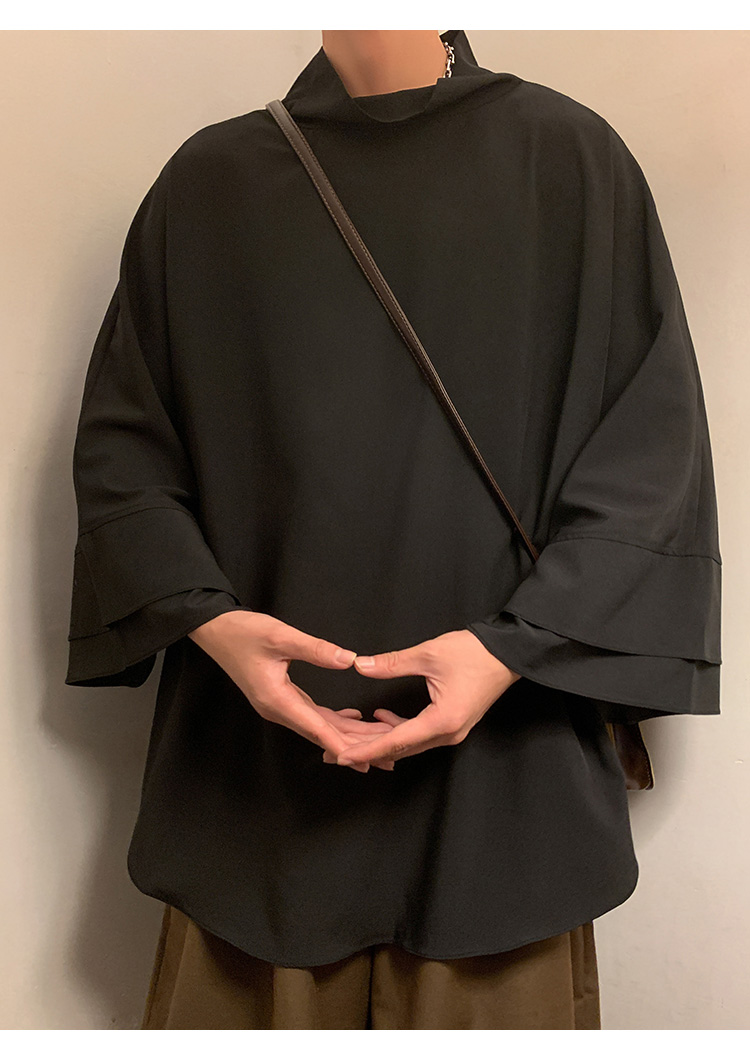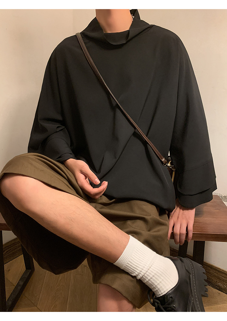 山本暗黑系痞帥冰絲T恤男短袖潮牌小高領設計感半袖假兩件七分袖T