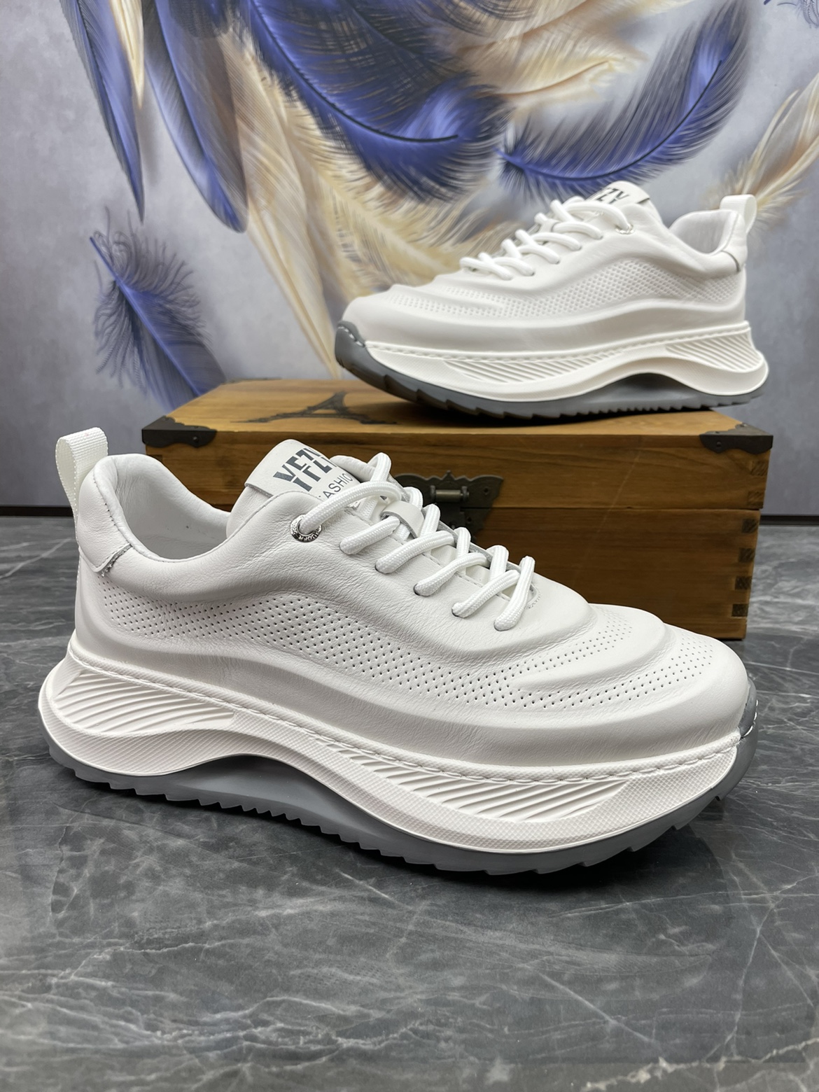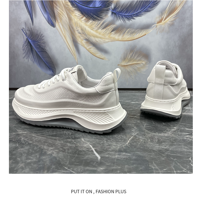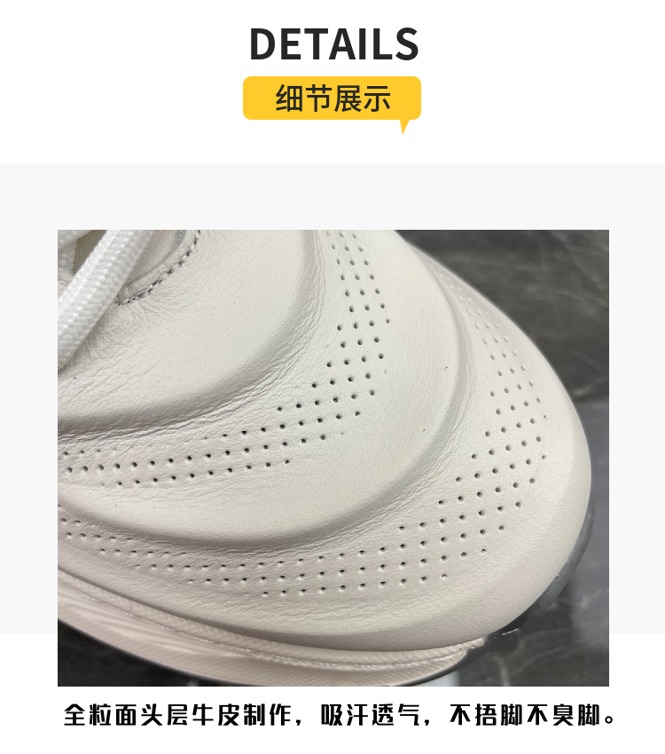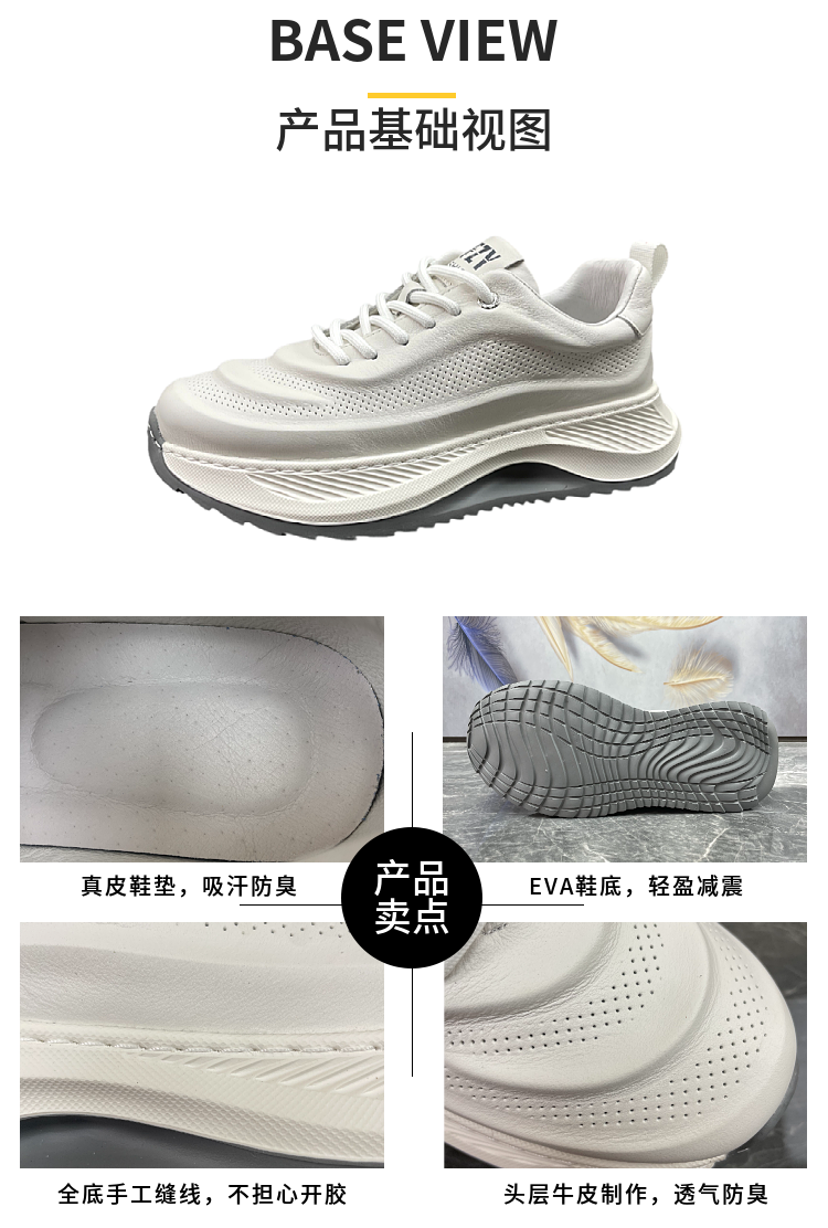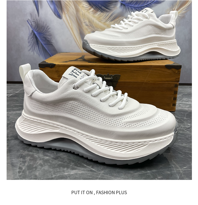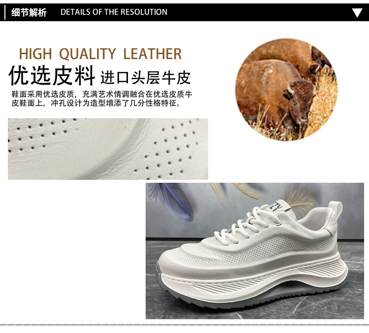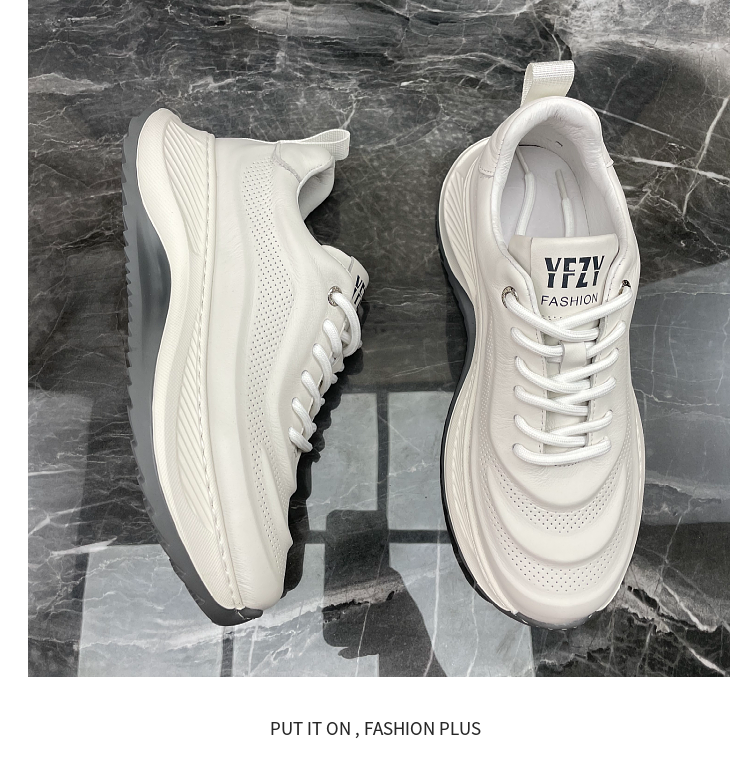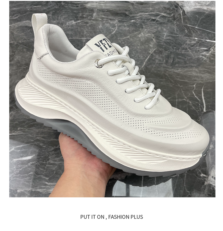 男鞋2023秋季新款頭層牛皮透氣厚底增高輕便真皮跑步運動休閒鞋潮