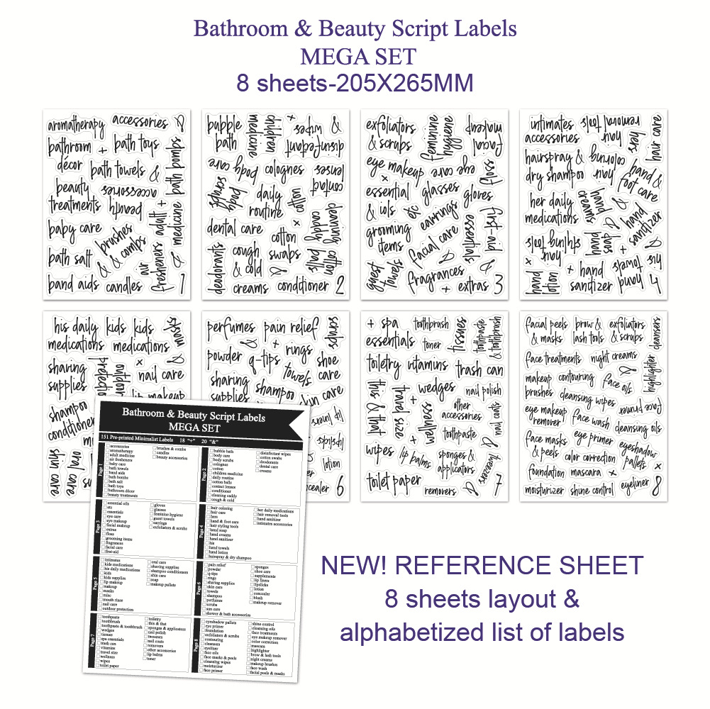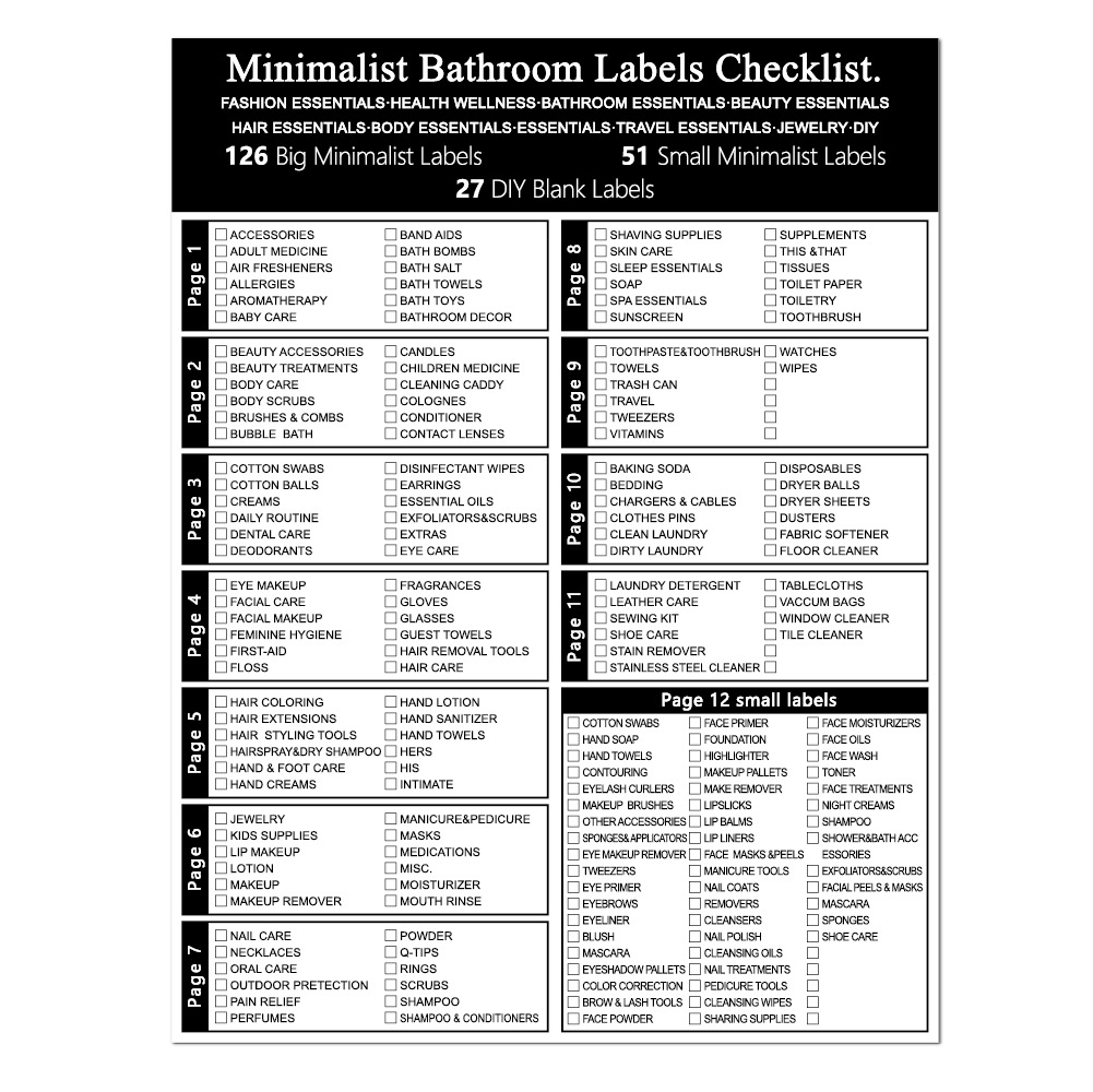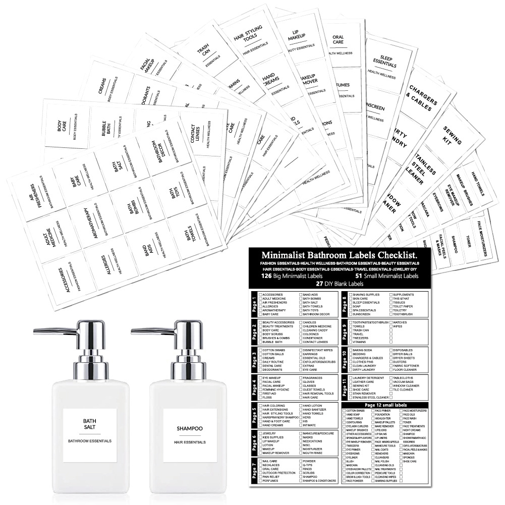 浴室罐标签189枚黑色收纳储存分类防水洗化美容护理浴室贴纸