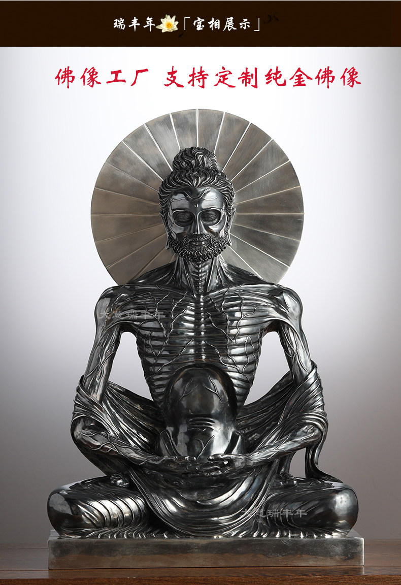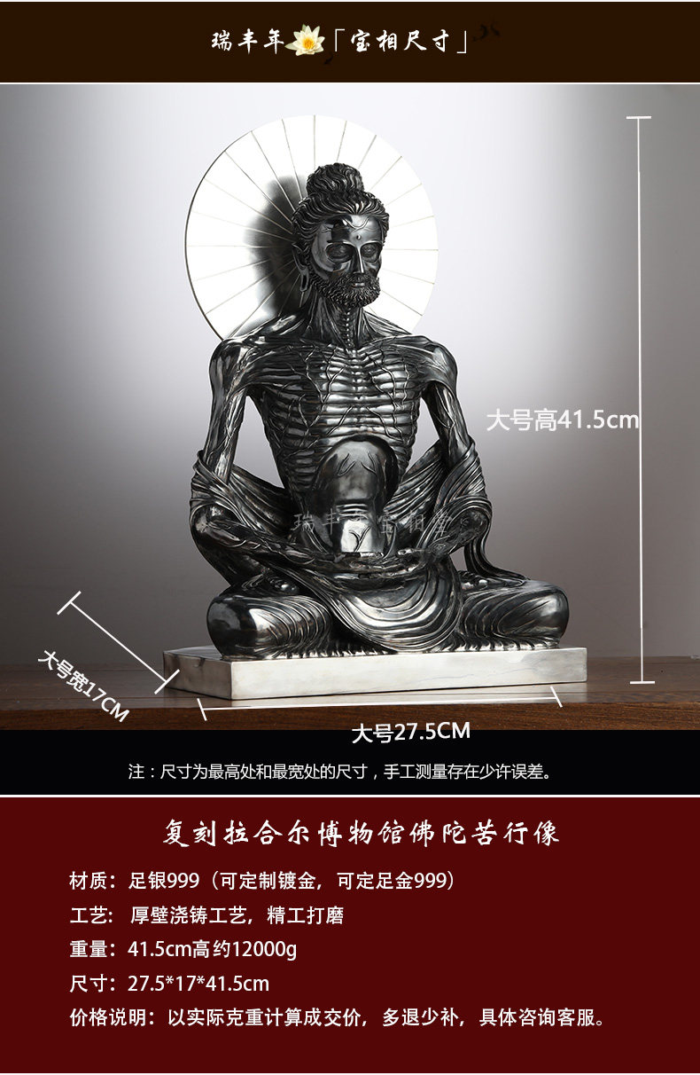 純銀復刻拉合爾博物館佛陀苦行像釋迦牟尼佛佛像苦修佛苦行僧隨身佛