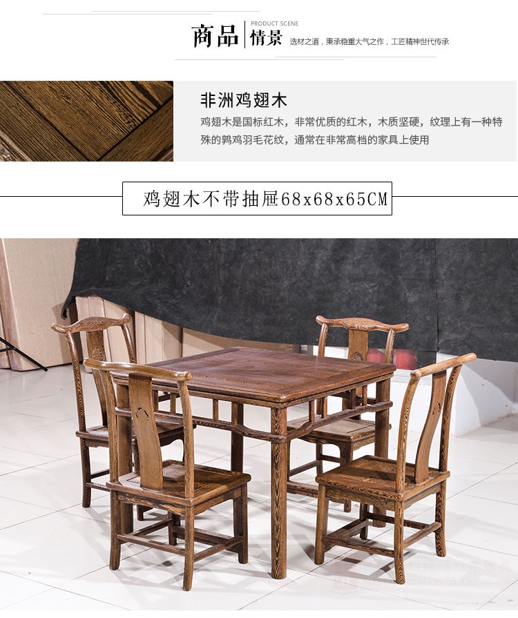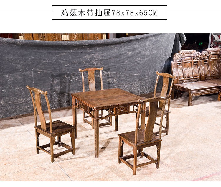 颜色 鸡翅木90*90*78的1桌4椅(带抽) 配坐高45厘米大椅,鸡翅木90*90*78单桌(带抽) 高78大桌,鸡翅木80*80*78的1桌4椅(带抽) 配坐高45厘米大椅,鸡翅木80*80*78单桌(带抽) 高78大桌,鸡翅木78*78*66的1桌4椅(带抽) 配坐高32厘米小椅,鸡翅木78*78*66单桌(带抽) 高66小桌,鸡翅木68*68*66的1桌4椅无抽 配坐高32厘米童椅,鸡翅木68*68*66单桌无抽 高66小桌,花梨木80*80*78的1桌4椅(带抽) 配坐高45厘米大椅,花梨木80*80*78单桌(带抽) 高78大桌,花梨木78*78*66的1桌4椅(带抽) 配坐高32厘米小椅,花梨木78*78*65单桌(带抽) 高65小桌,花梨木68*68*66的1桌4椅(不带抽) 配坐高32厘米小椅,花梨木68*68*65单桌(不带抽) 高65小桌,刺猬紫檀88*88*75一桌四椅带抽 配坐高45厘米大椅,刺猬紫檀88*88*75单桌带抽 高75大桌,刺猬紫檀80*80*75一桌四椅带抽 配坐高45厘米大椅,刺猬紫檀80*80*75单桌带抽 高75大桌,刺猬紫檀78*78*65一桌四椅带抽 配坐高31厘米小椅,刺猬紫檀78*78*65单桌(带抽) 高65小桌,刺猬紫檀68*68*65一桌四椅不带抽 配坐高31厘米小椅,刺猬紫檀68*68*65单桌不带抽 高65小桌,鸡翅木100*100*78带抽单桌,鸡翅木100*100*78带抽一桌四椅