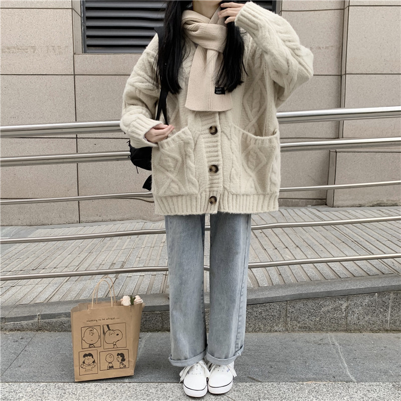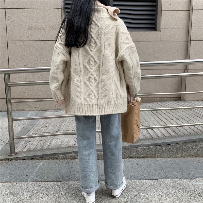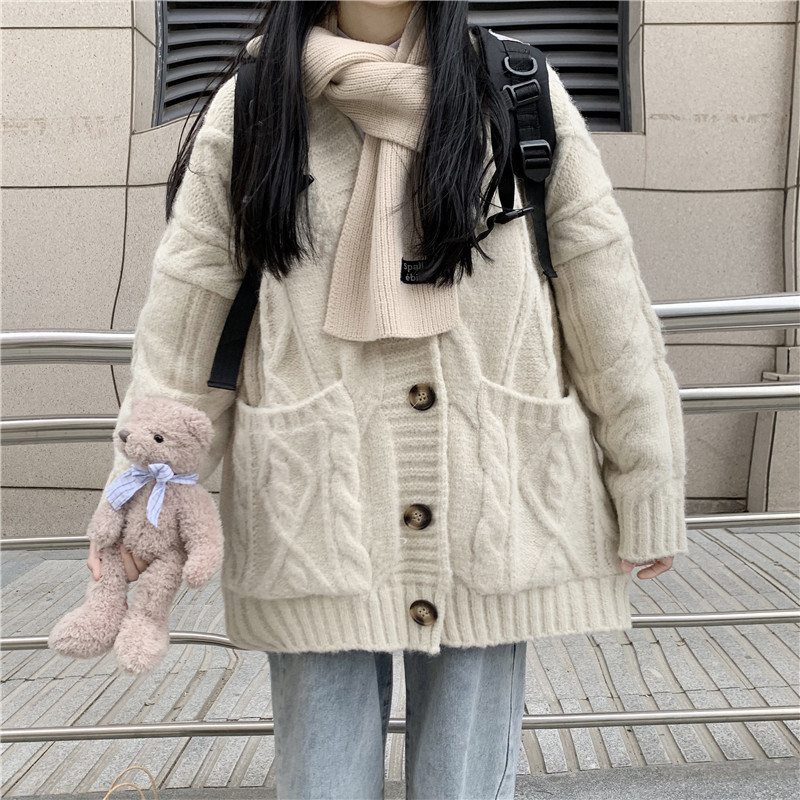 麻花毛衣外套女秋季外穿2023新款韓版慵懶風寬鬆加厚針織開衫上衣
