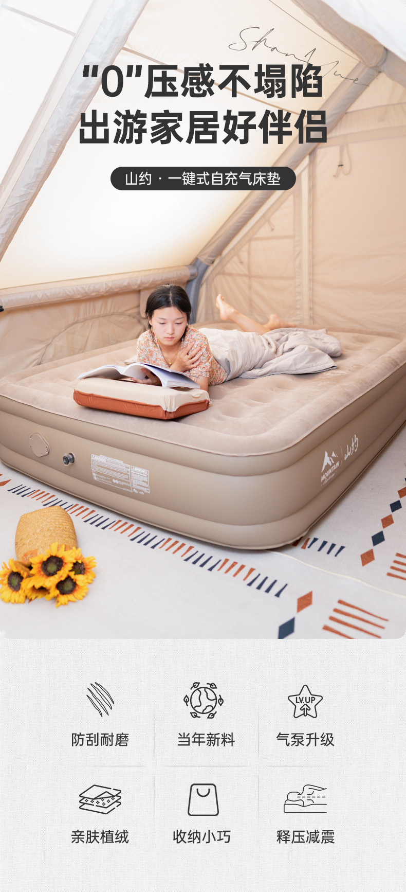 山約充氣牀墊氣墊牀帳篷戶外露營摺疊牀家用加厚自動打地舖充氣墊