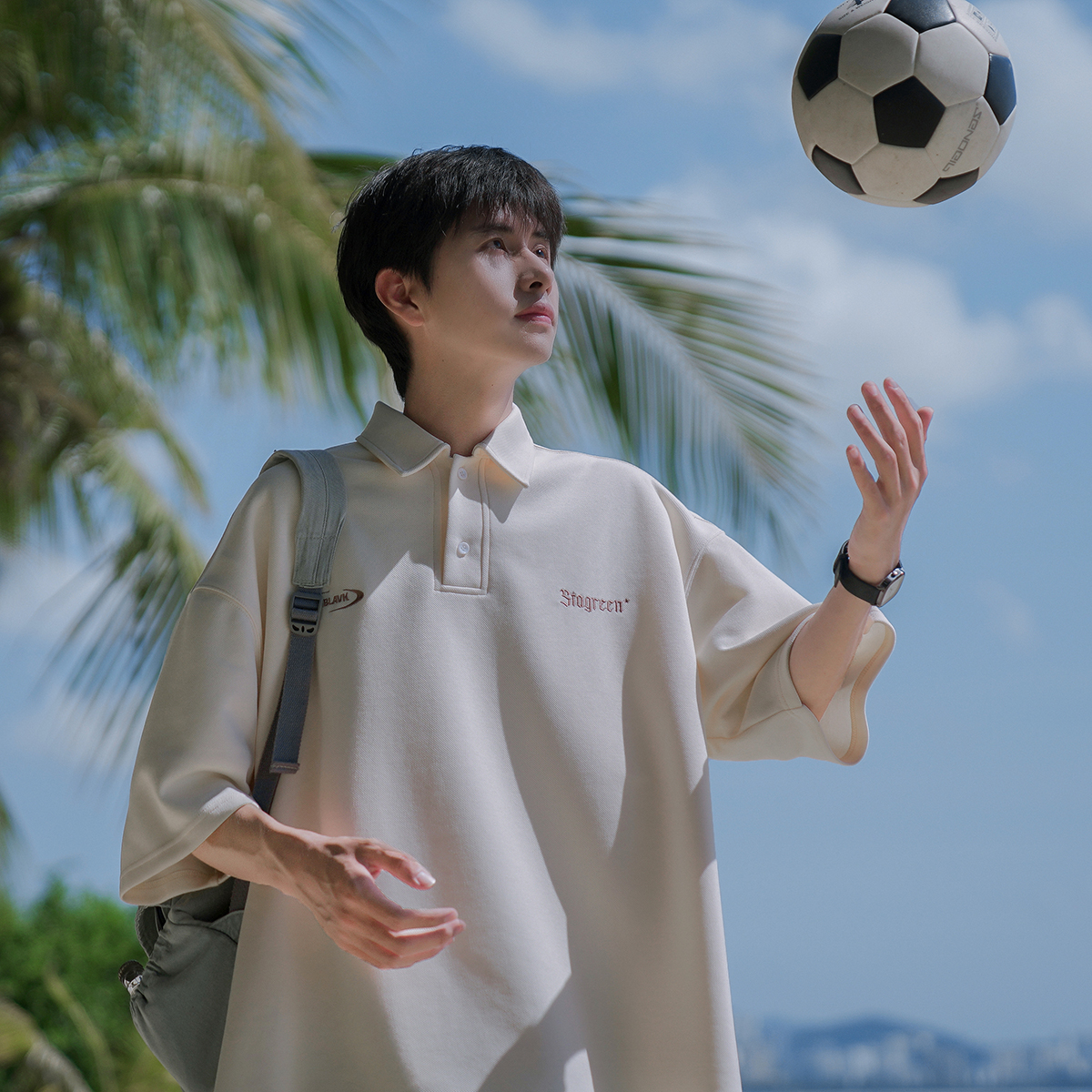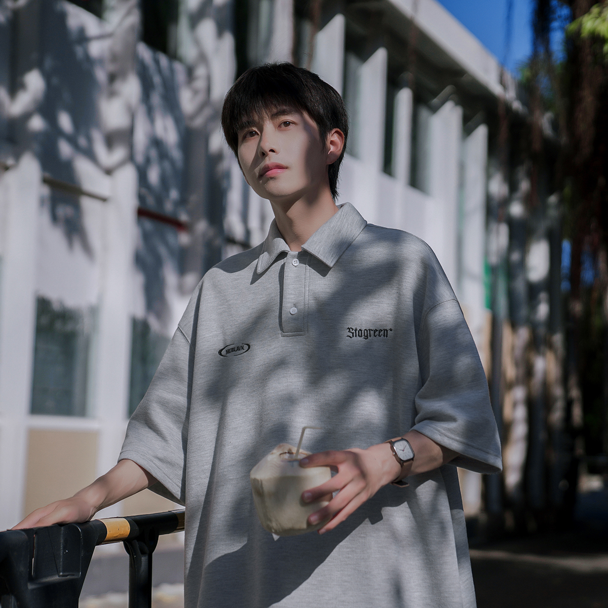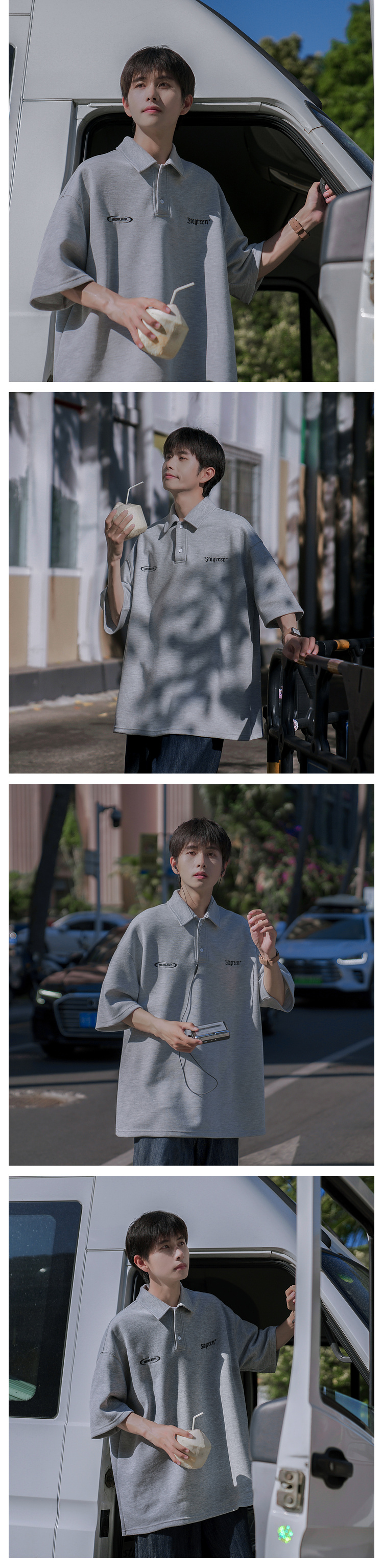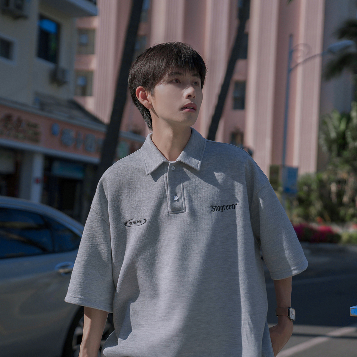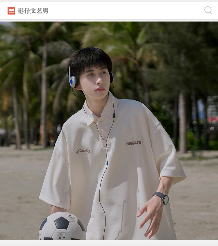 @港仔文藝男 250g重磅刺繡短袖polo衫男夏季潮牌日系復古翻領T恤
