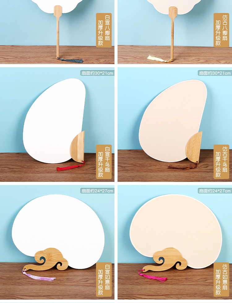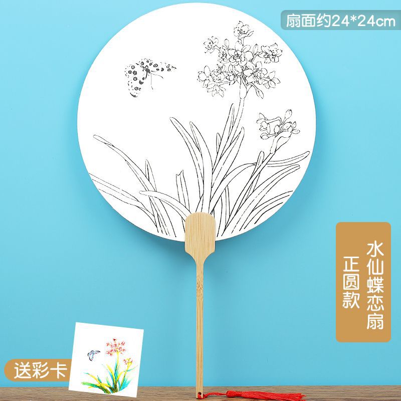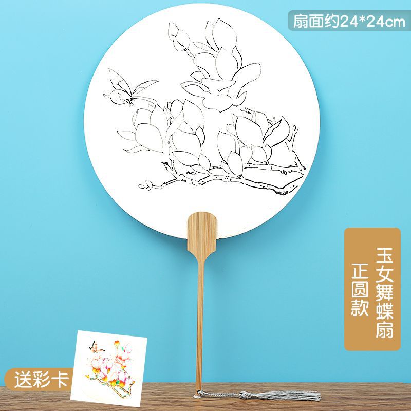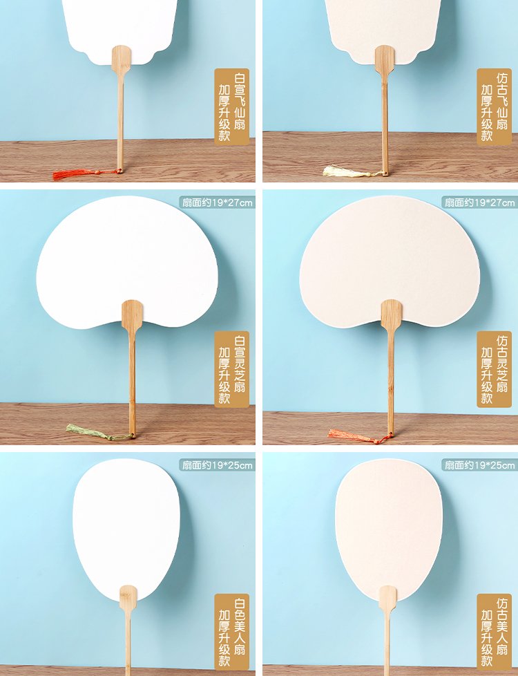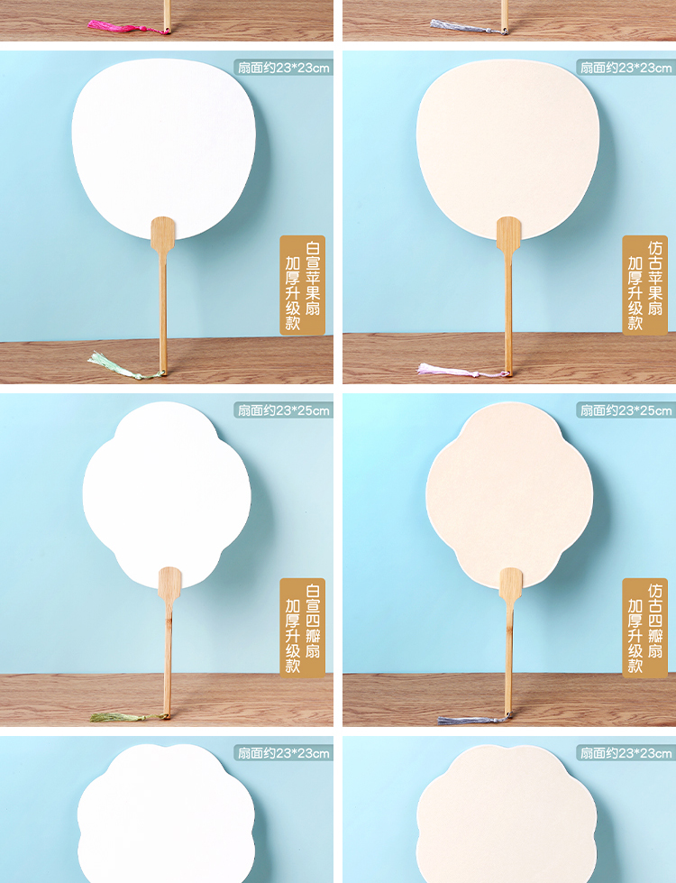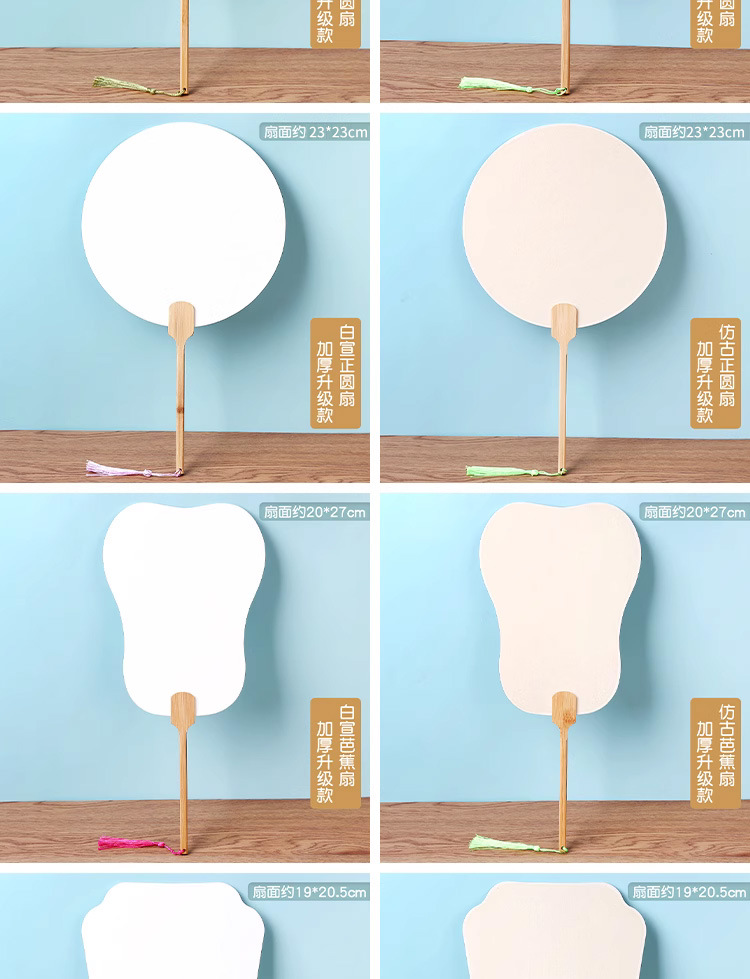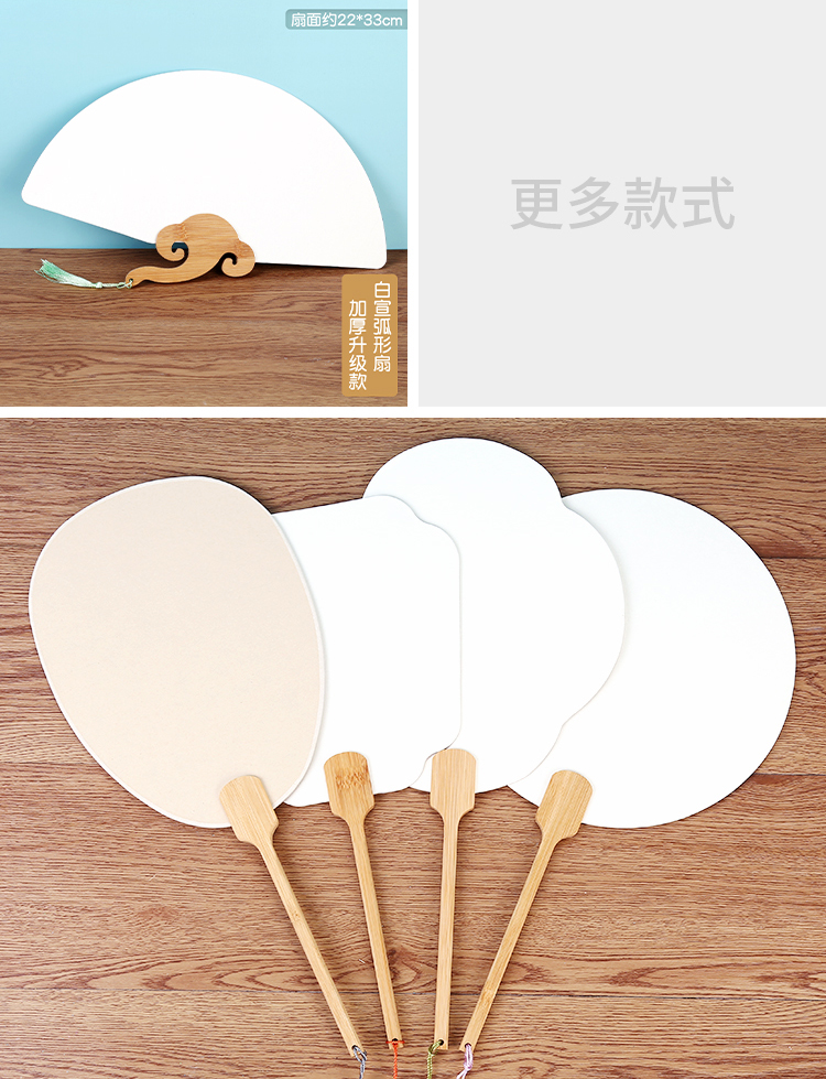空白宣纸团扇diy材料包纸扇宫扇古风加厚双面儿童手绘diy手工扇子