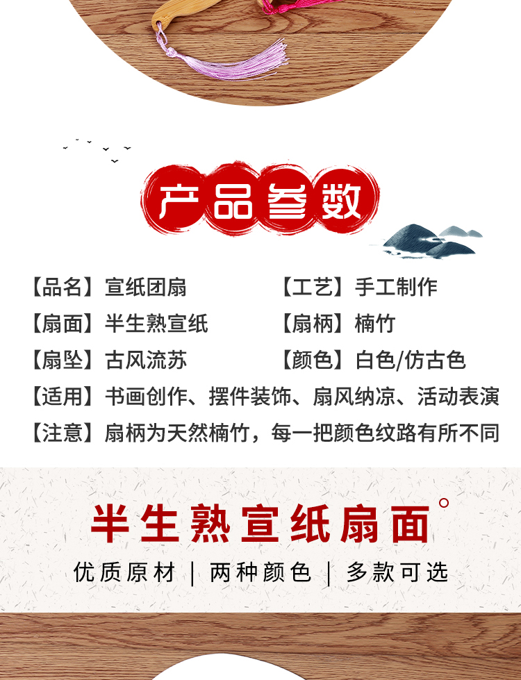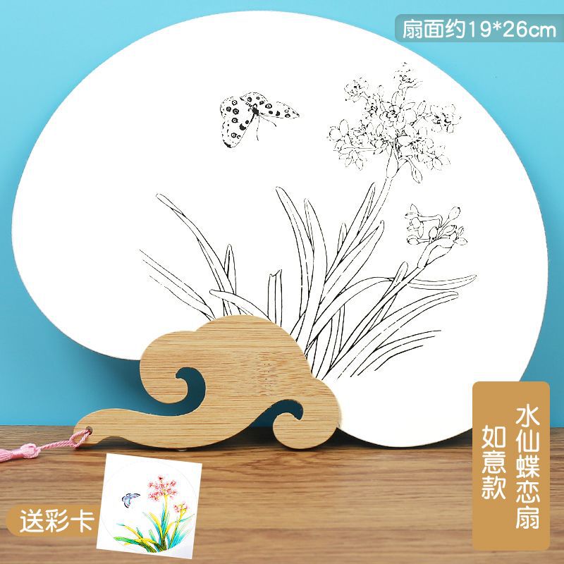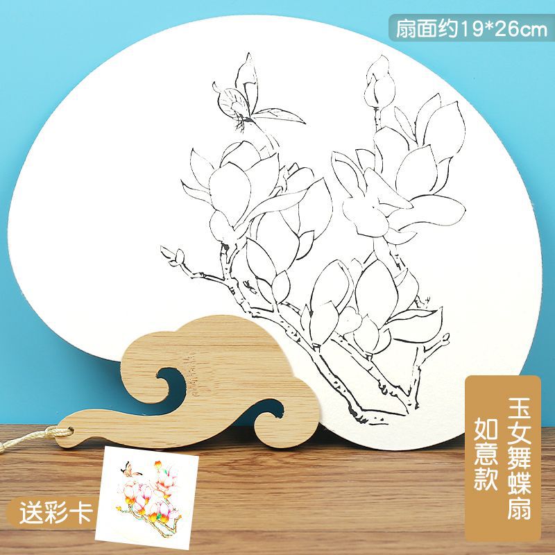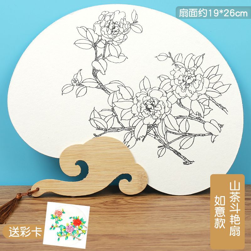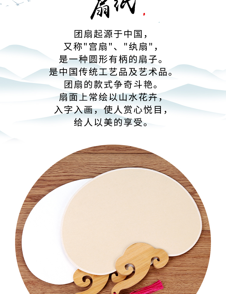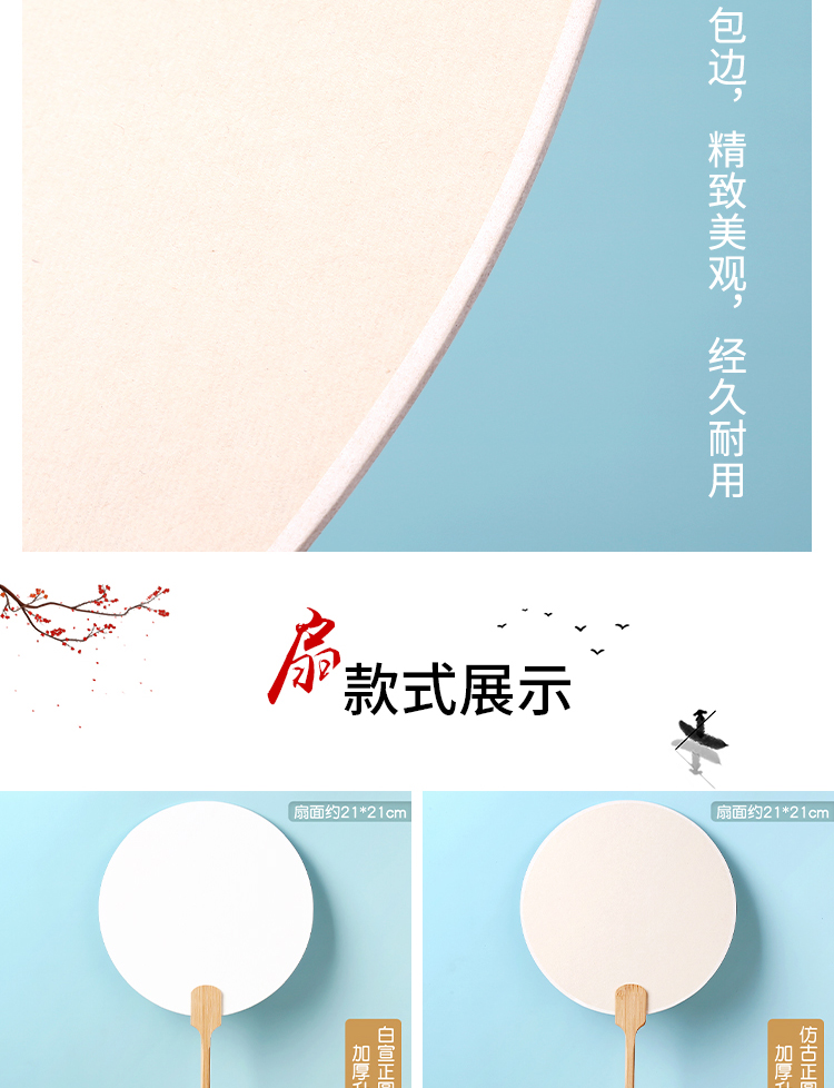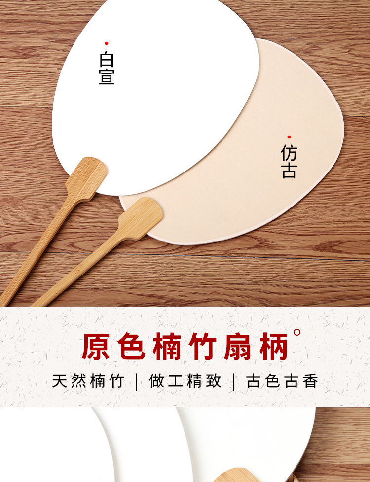 空白宣纸团扇diy材料包纸扇宫扇古风加厚双面儿童手绘diy手工扇子
