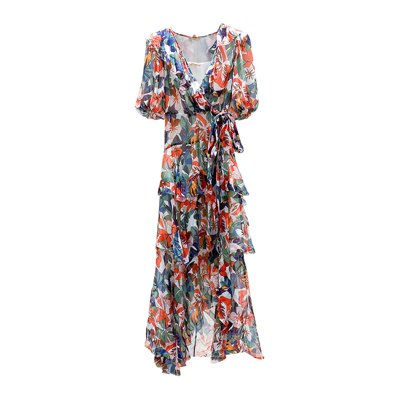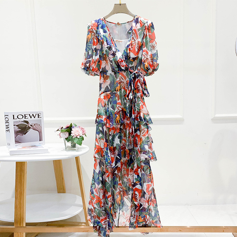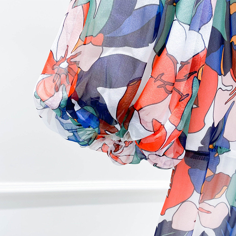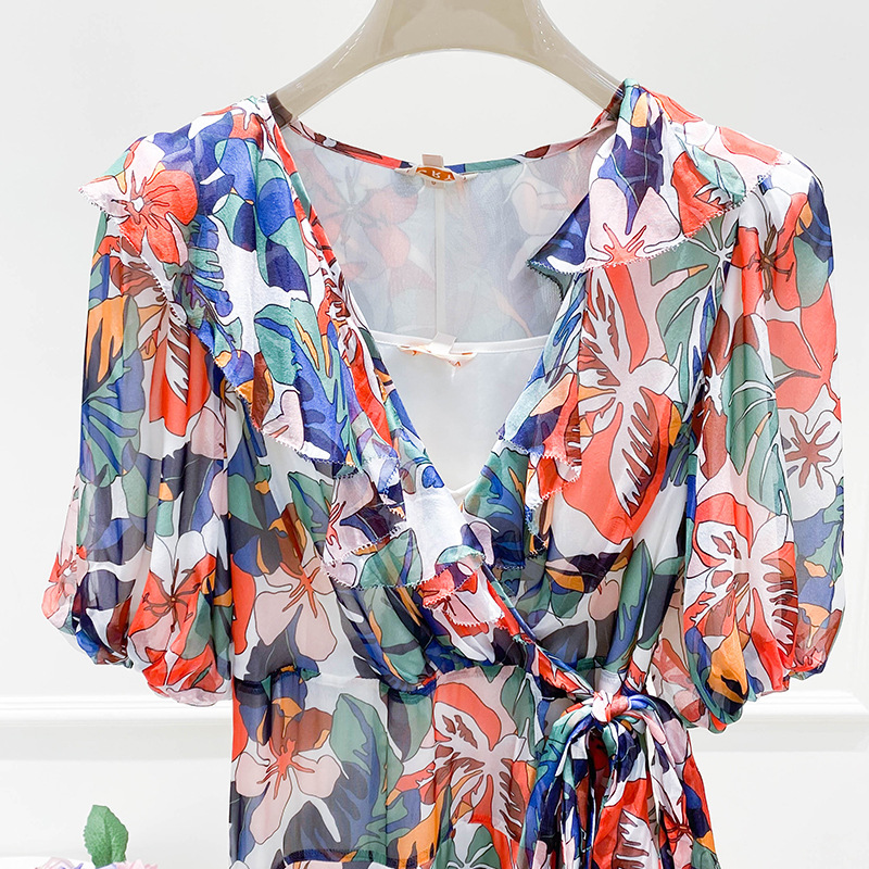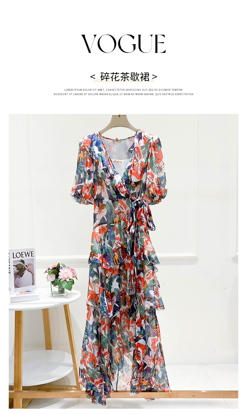 2023年夏季新款法式优雅高级感别致碎花收腰长裙连衣裙子女夏季