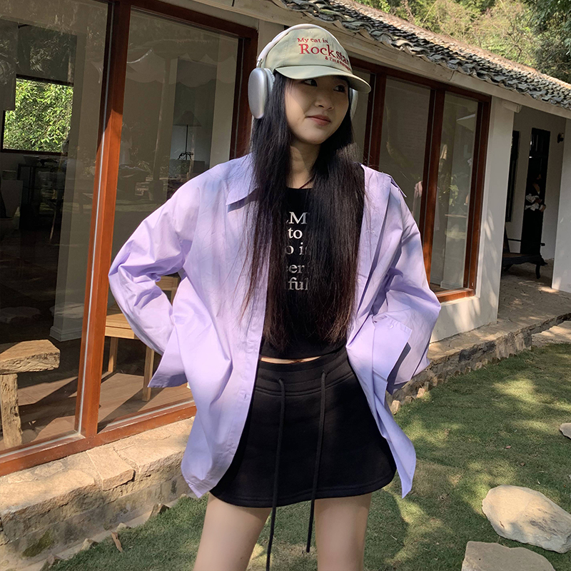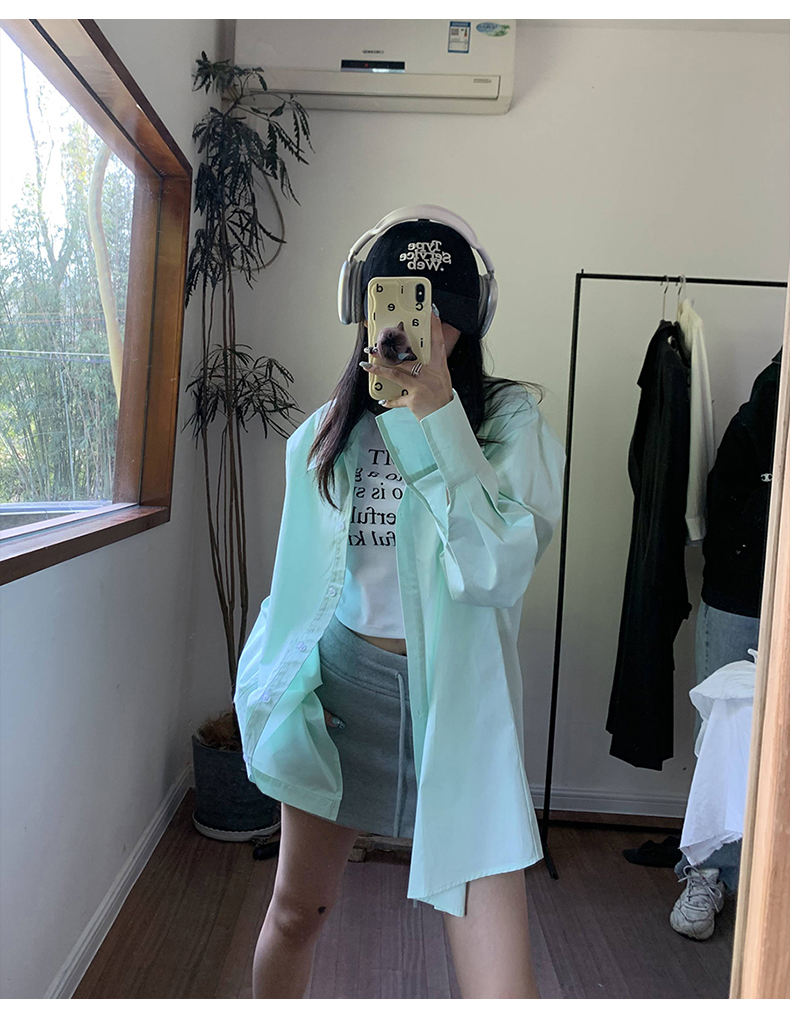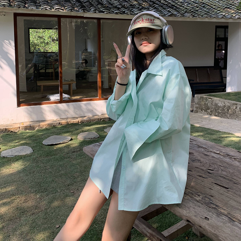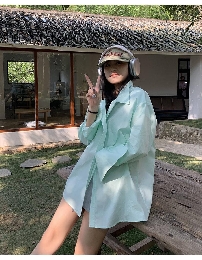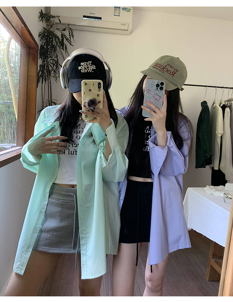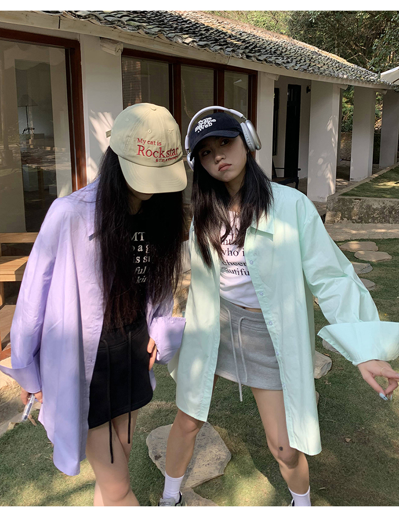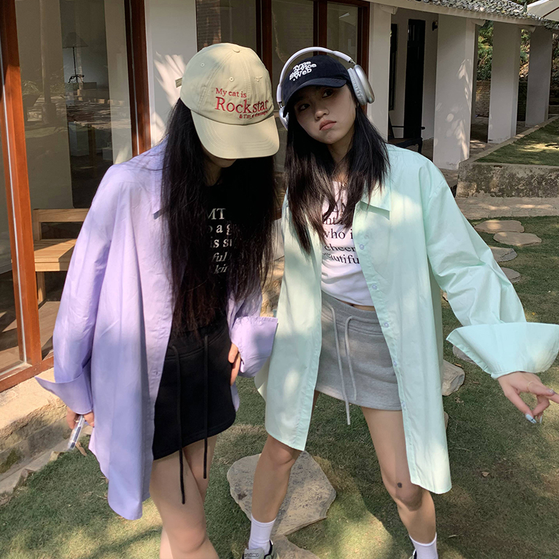 橘子樹在哪兒糖果色系甜美百搭襯衫女春秋多巴胺寬鬆休閒純色襯衫