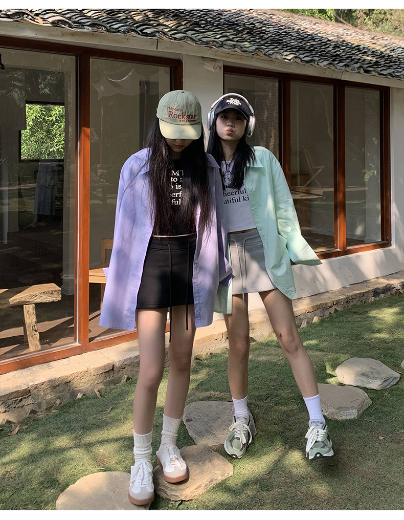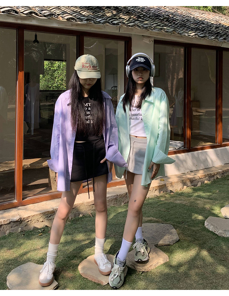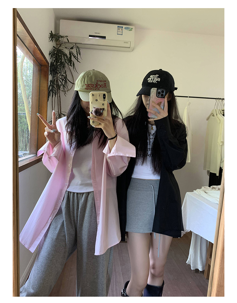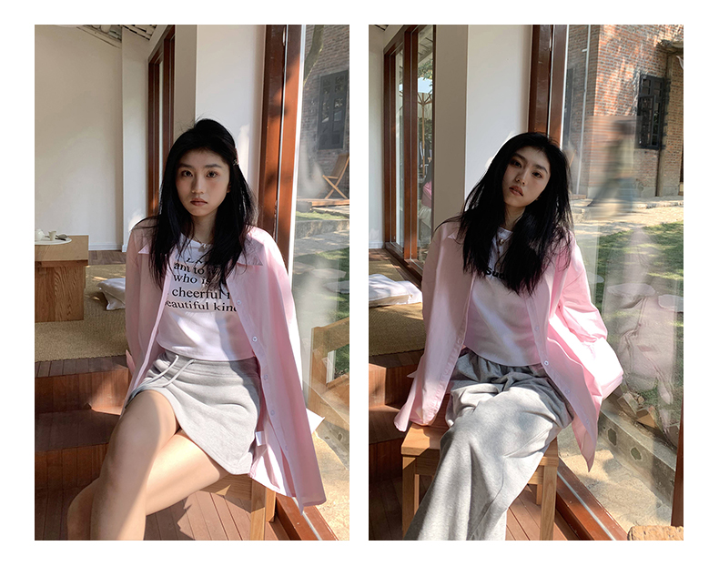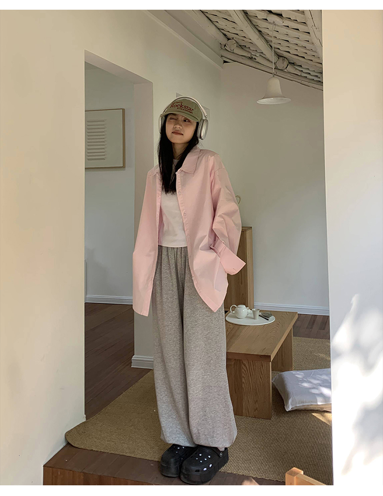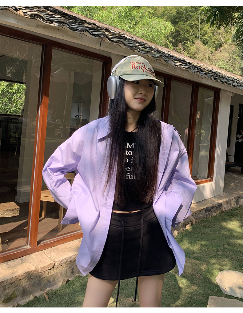 橘子樹在哪兒糖果色系甜美百搭襯衫女春秋多巴胺寬鬆休閒純色襯衫