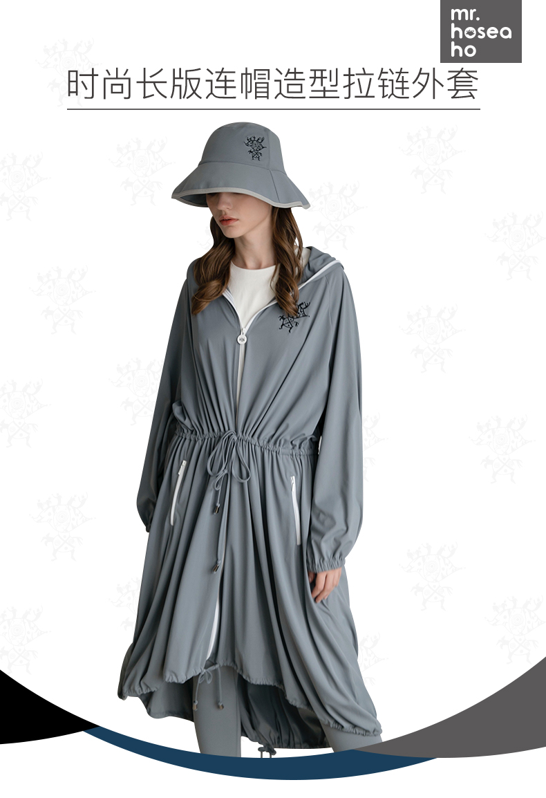 新品HOII Hosea長版連帽造型拉鍊防曬外套 沙灘休閒遮陽風衣透氣