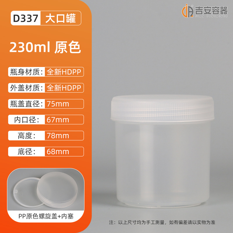 包邮批发230/300ml大口塑料罐 螺旋盖油墨罐带内盖圆形密封广口罐