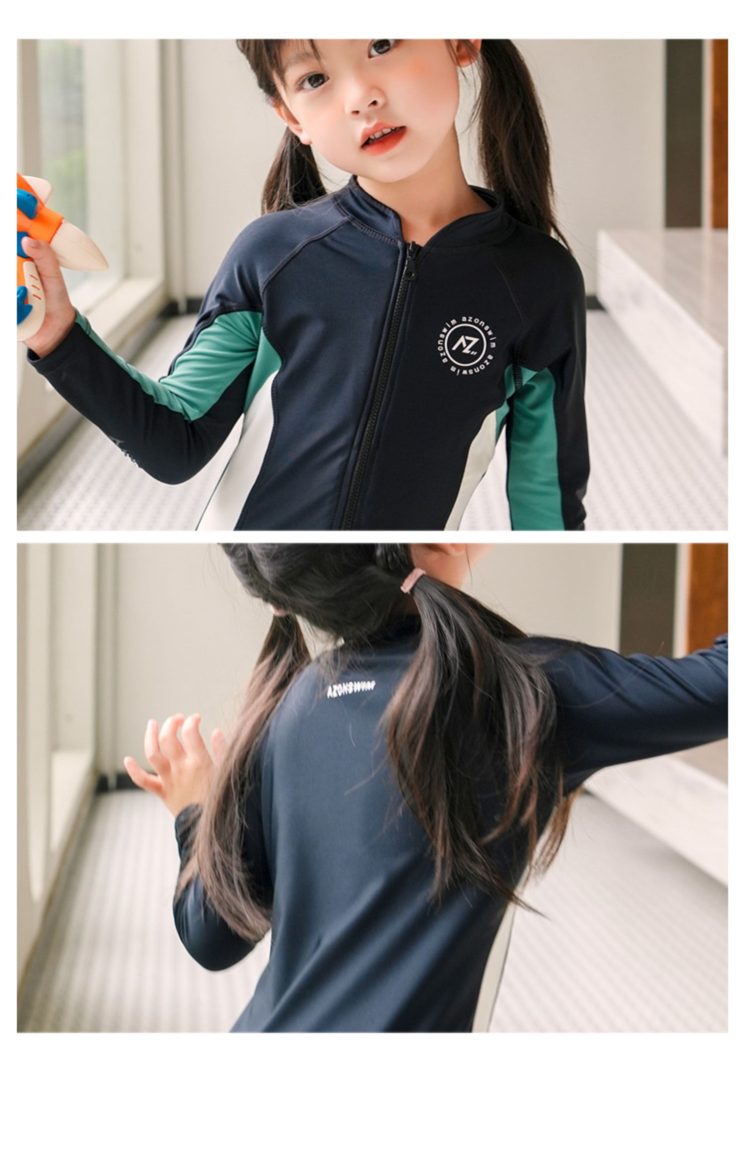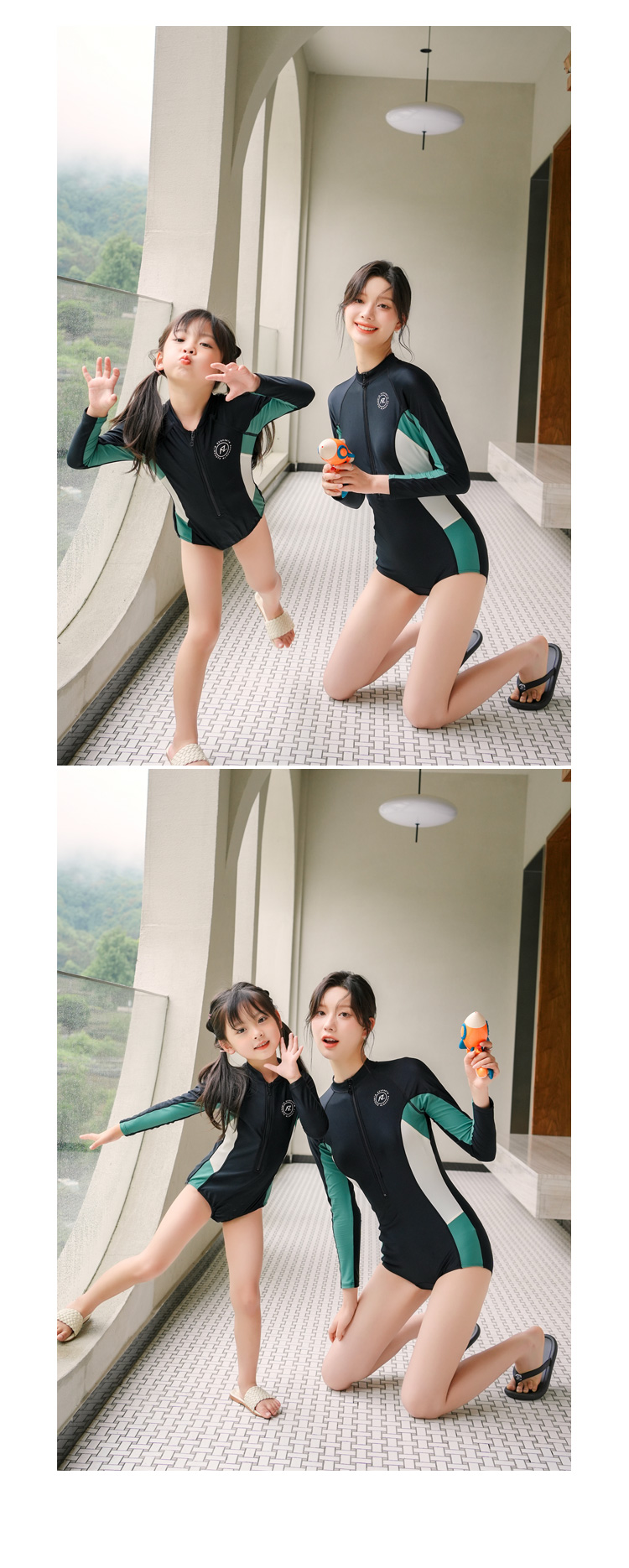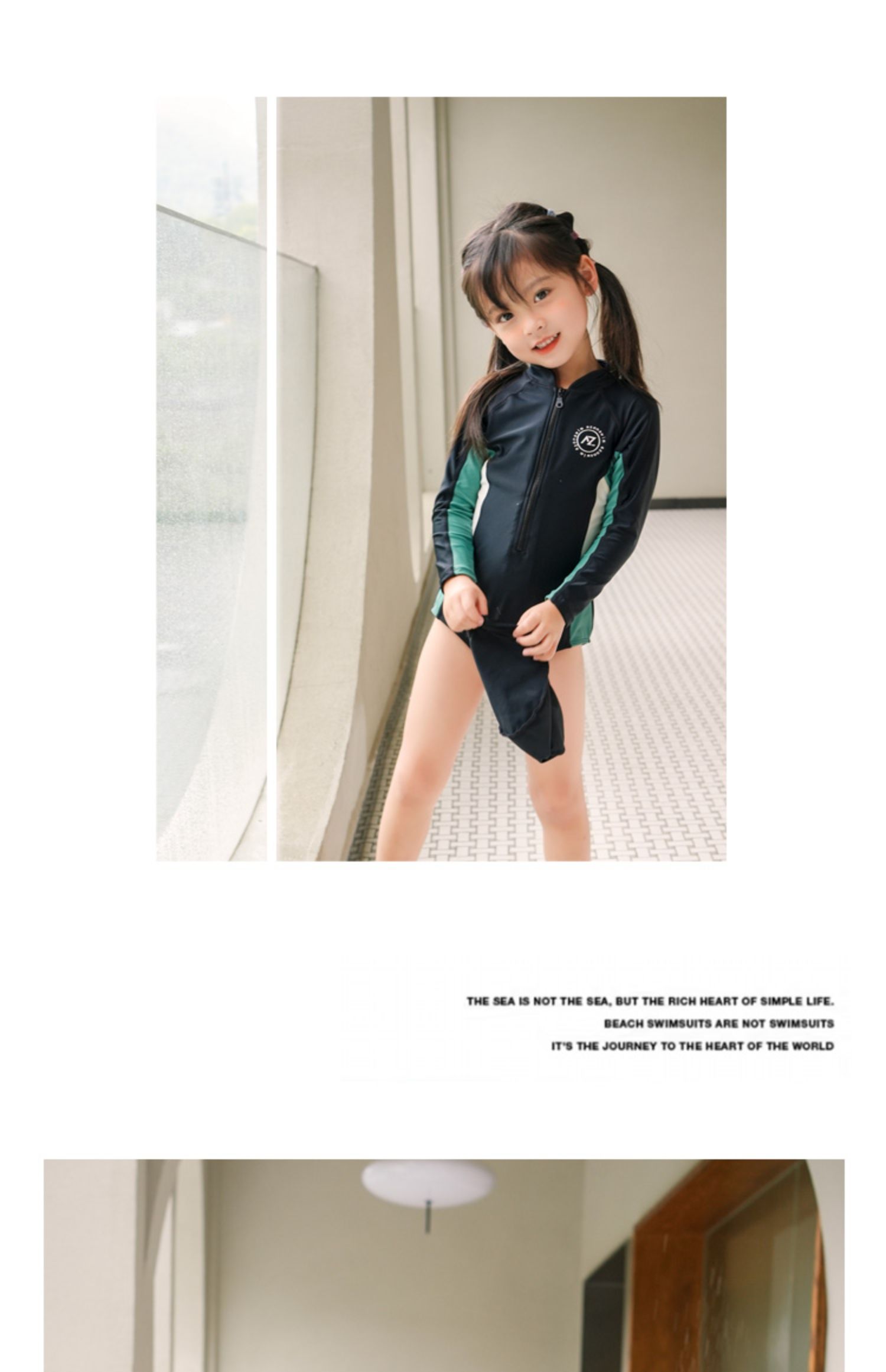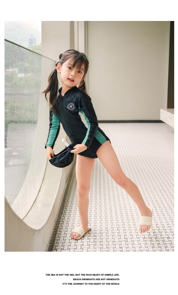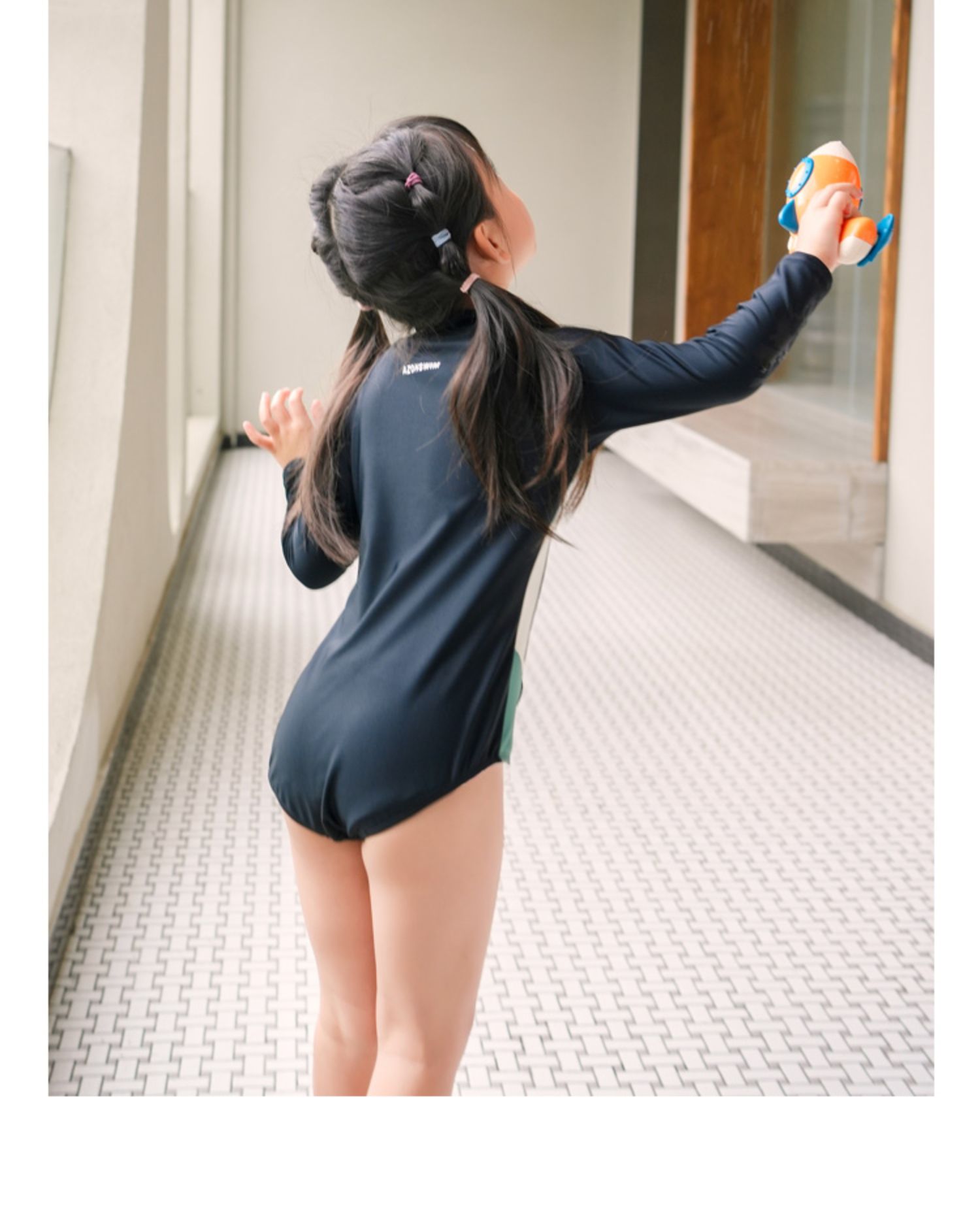 新款兒童泳衣女孩夏連身長袖防曬寶寶速乾遊泳衣女童母女親子小童