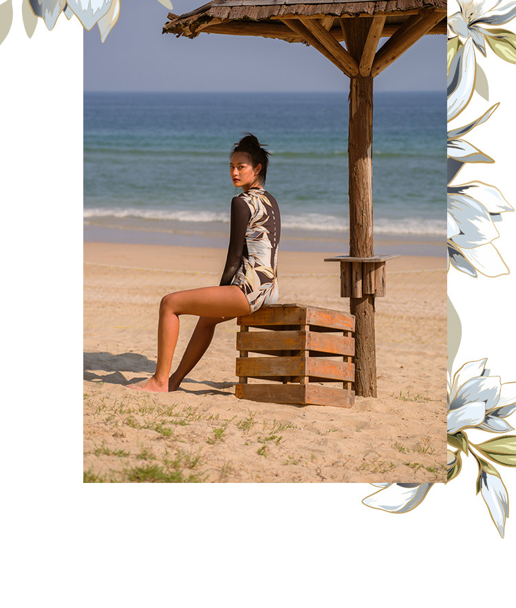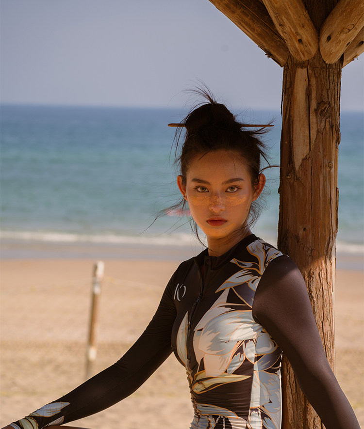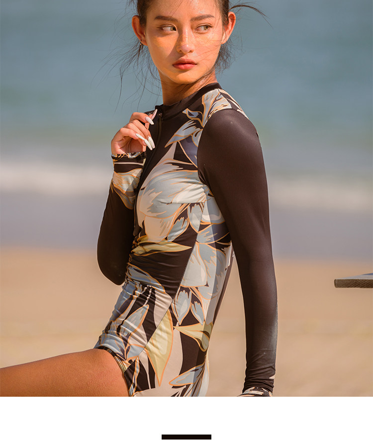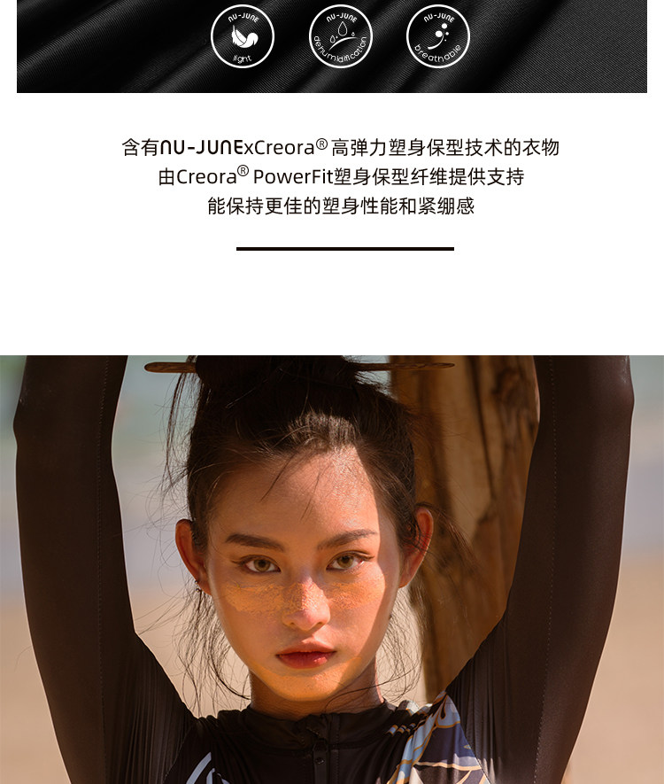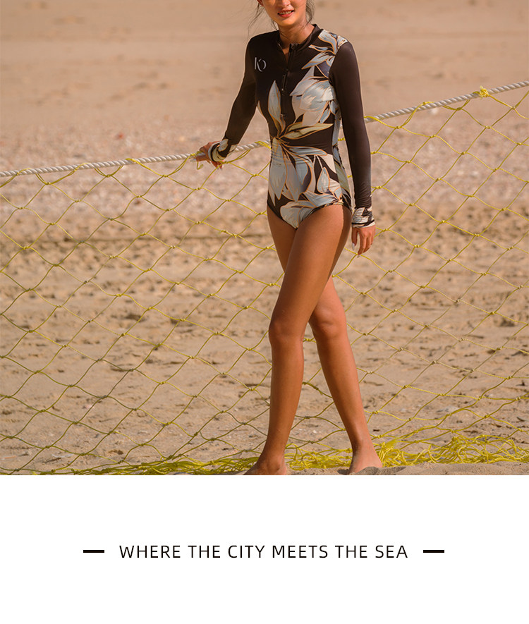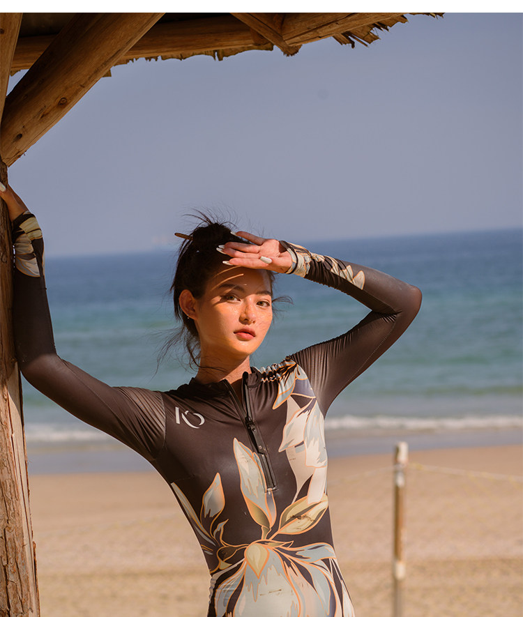 NU-JUNE 連身泳衣女夏長袖保守顯瘦三角衝浪水母服防曬速乾潛水服