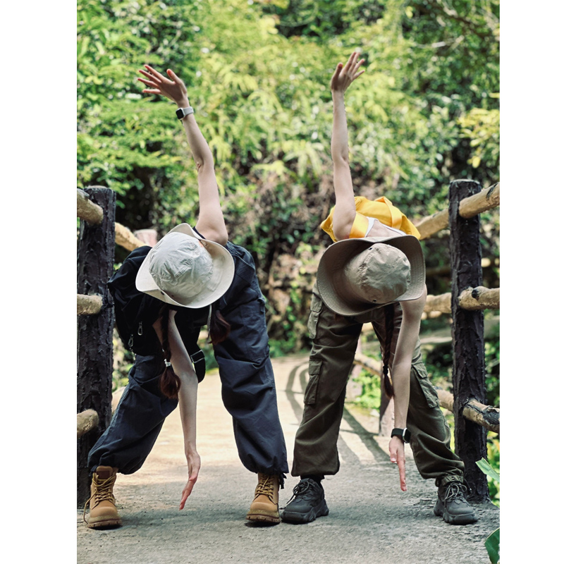 爬山穿搭速乾工裝褲女款春秋褲子美式降落傘徒步登山褲衝鋒運動褲