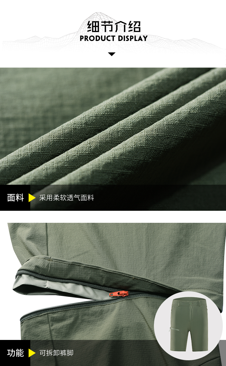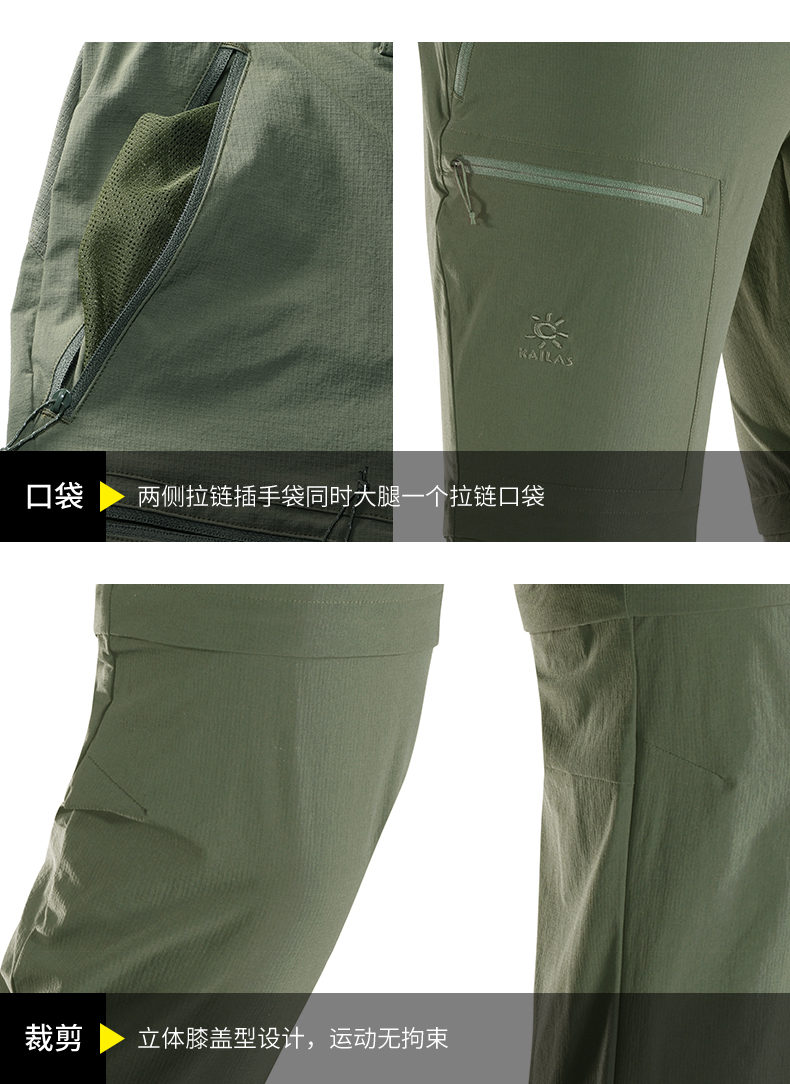 凱樂石速乾褲男夏季薄款戶外行山可拆卸兩節短褲彈力透氣戰術長褲