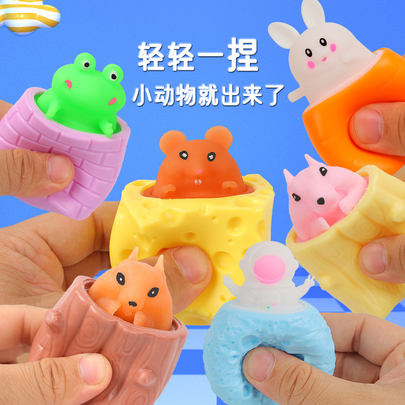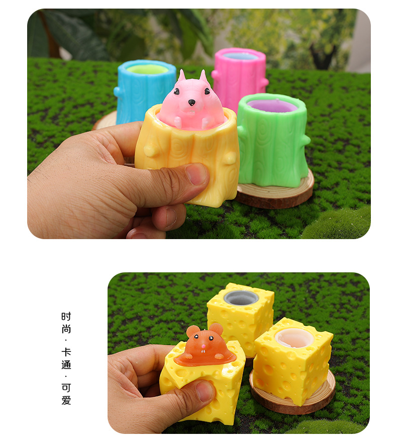 创意解压可爱奶酪老鼠杯捏捏乐挤压发泄松鼠杯减压玩具现货批发