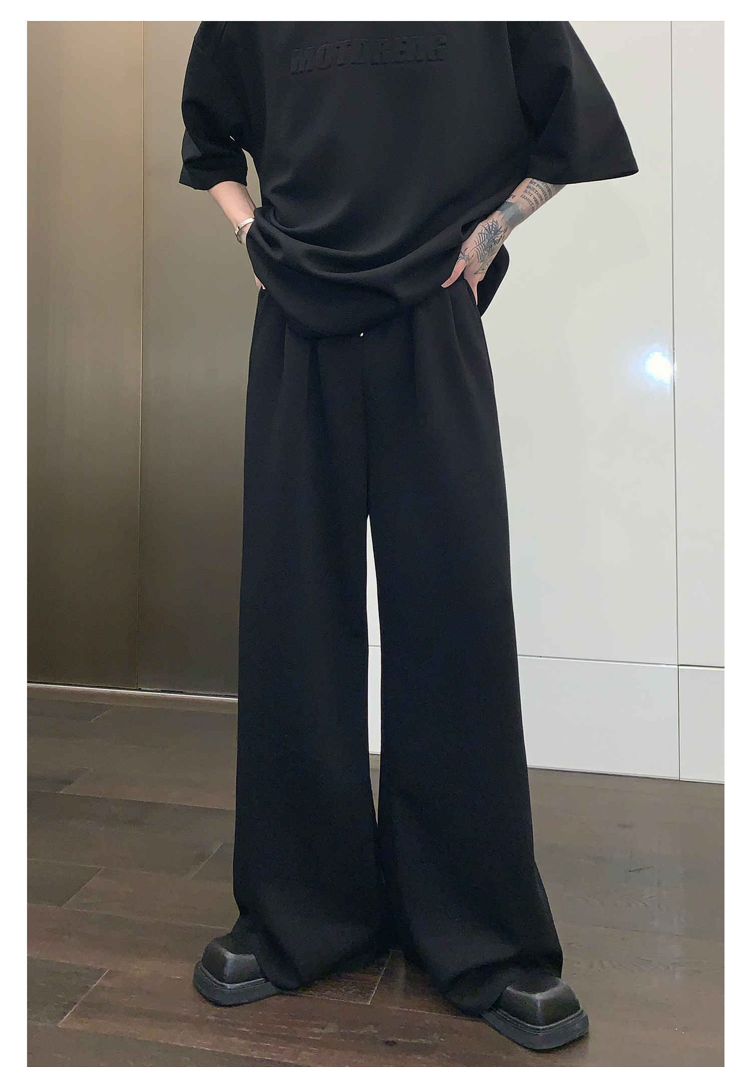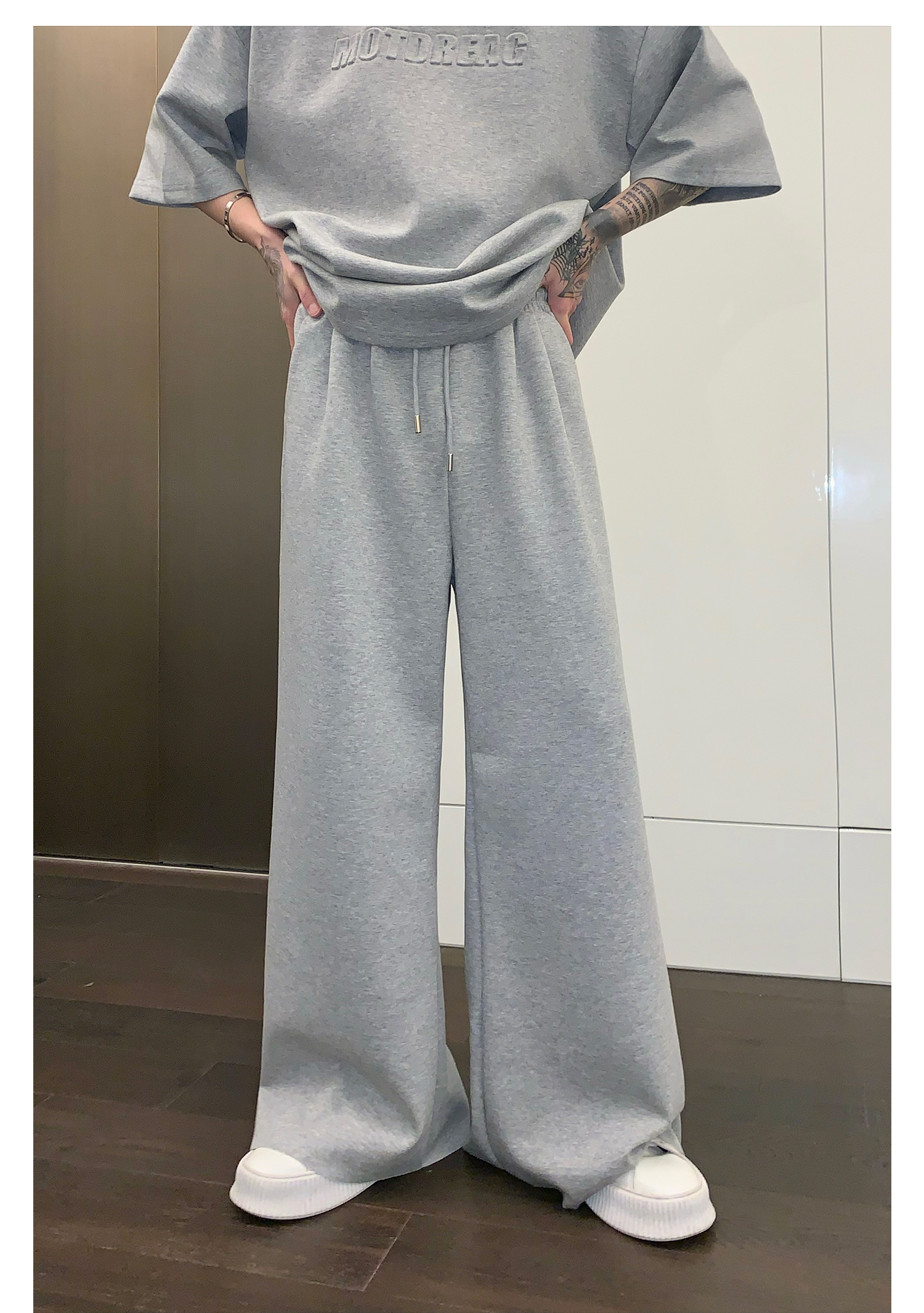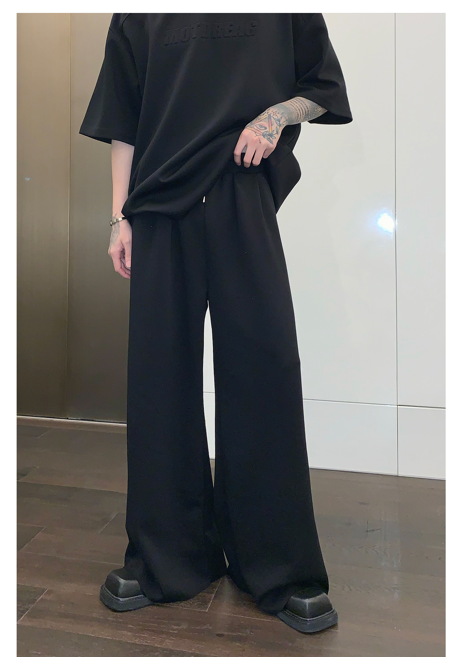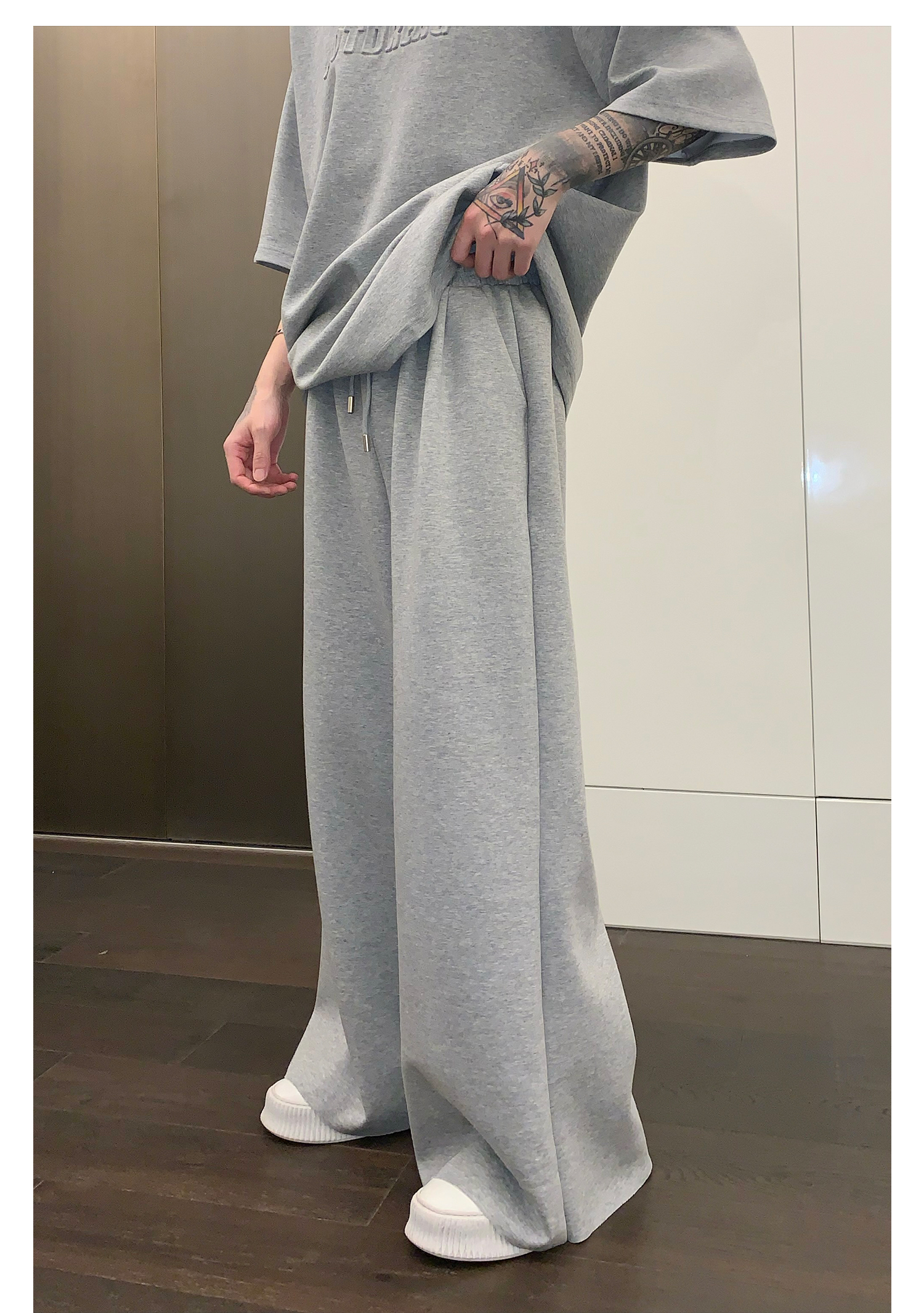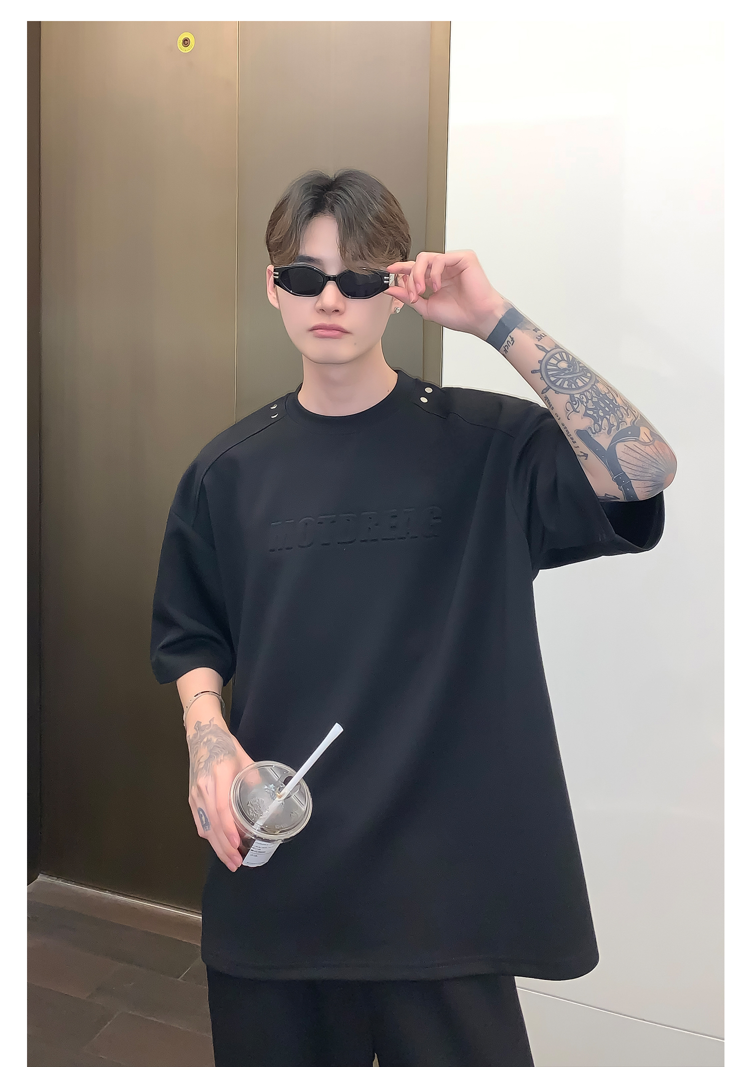 cuibuju 簡約小領口短袖男夏季立體字母休閒套裝百搭直筒長褲一套