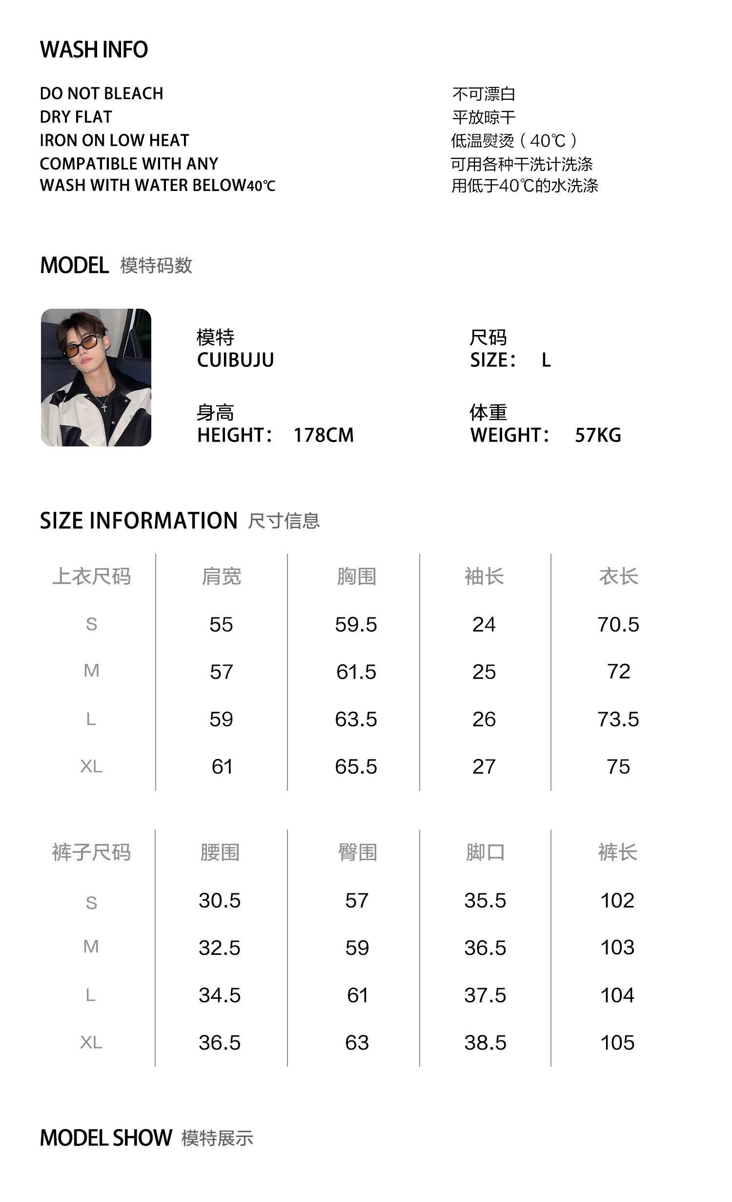 顏色 黑色(上衣),黑色(褲子),灰色(上衣),灰色(褲子)