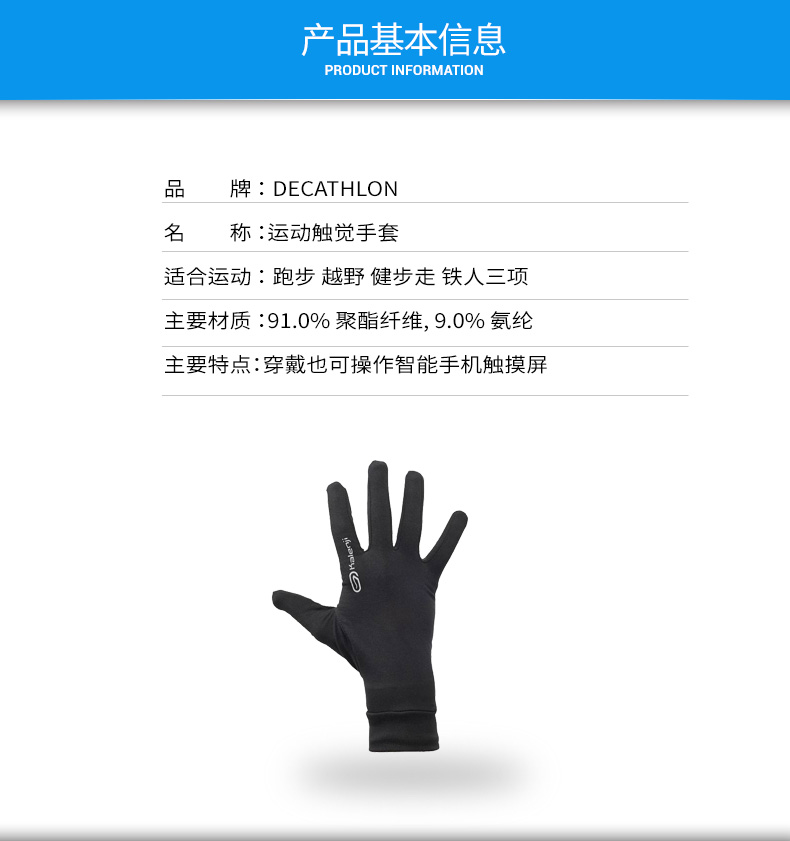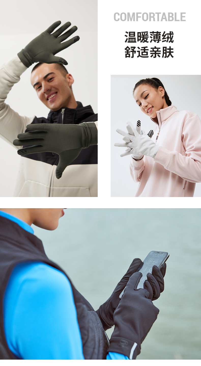迪卡儂手套男冬季戶外徒步跑步滑雪騎行防風加絨保暖足球運動TSC4