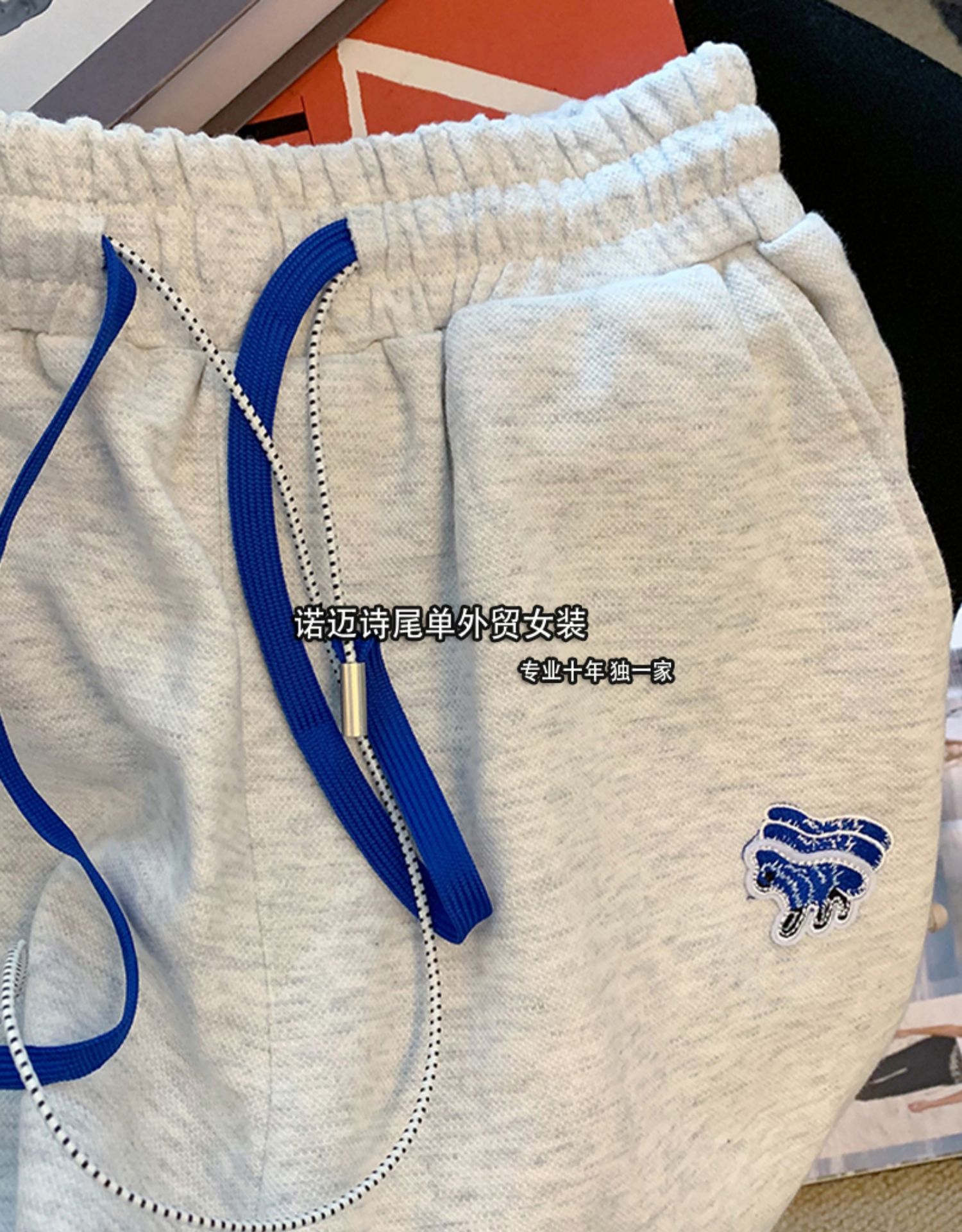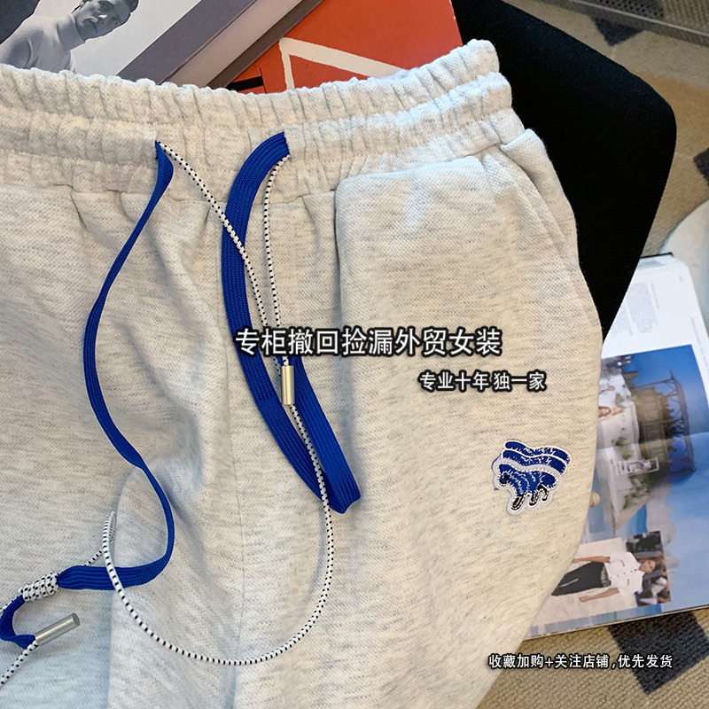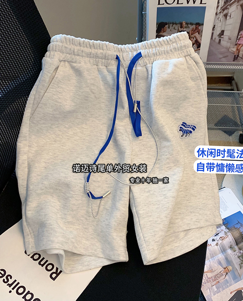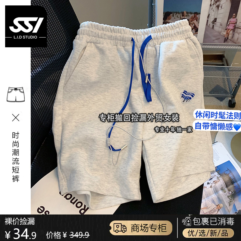 商場同款2023新款純棉灰色寬鬆緊腰休閒闊腿運動褲子短褲女夏季潮