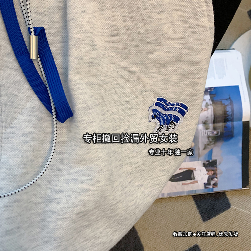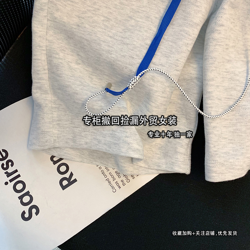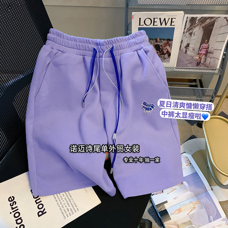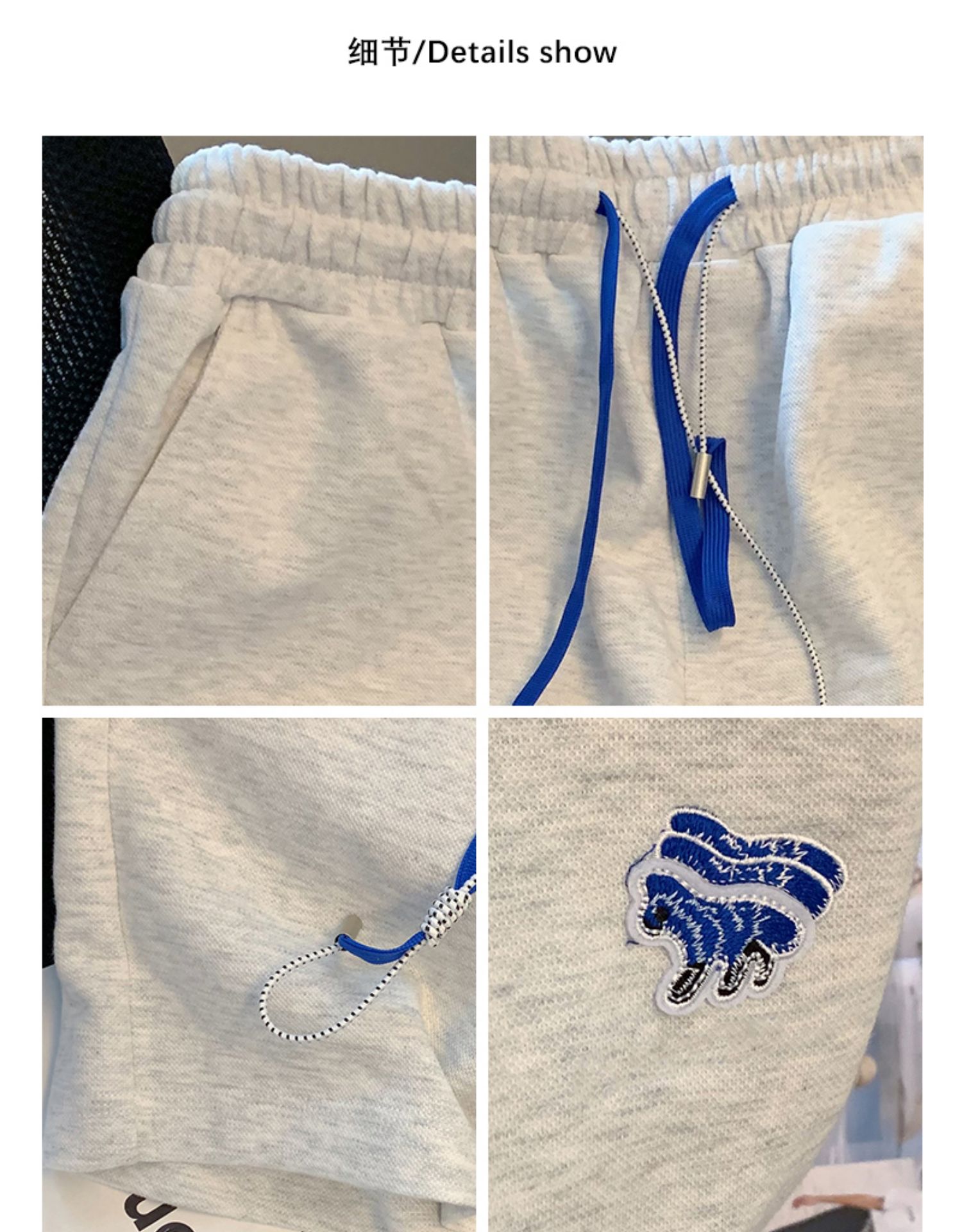 商場同款2023新款純棉灰色寬鬆緊腰休閒闊腿運動褲子短褲女夏季潮