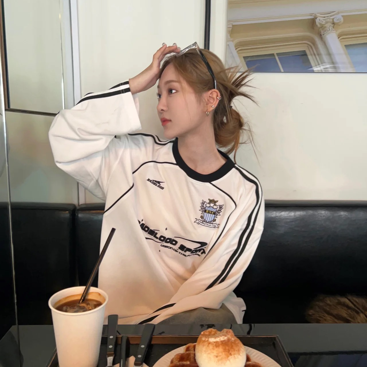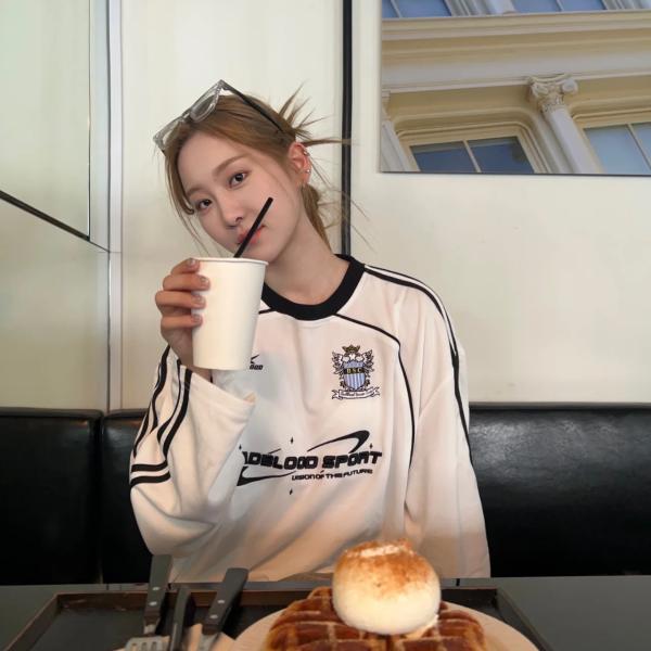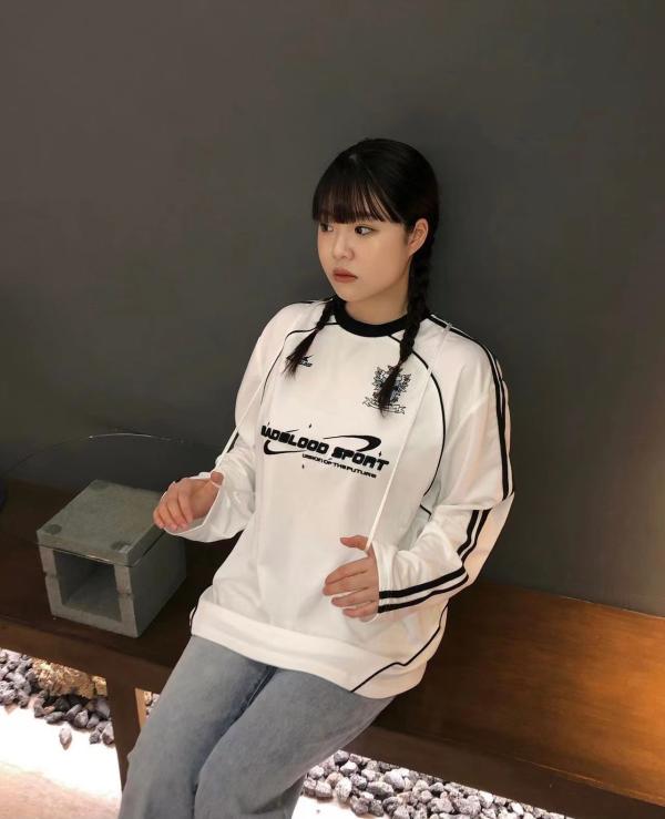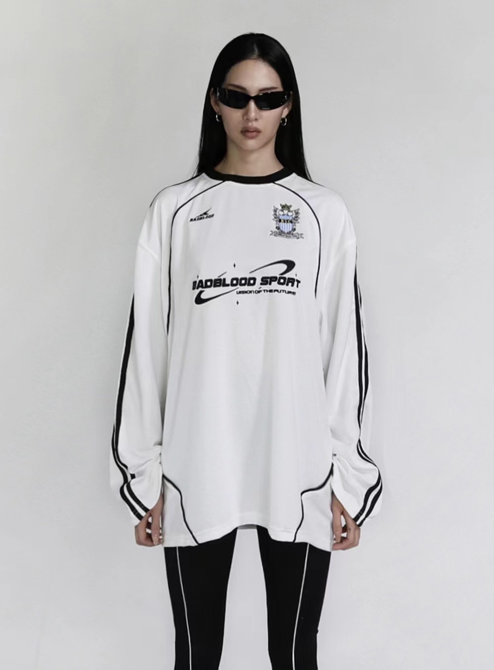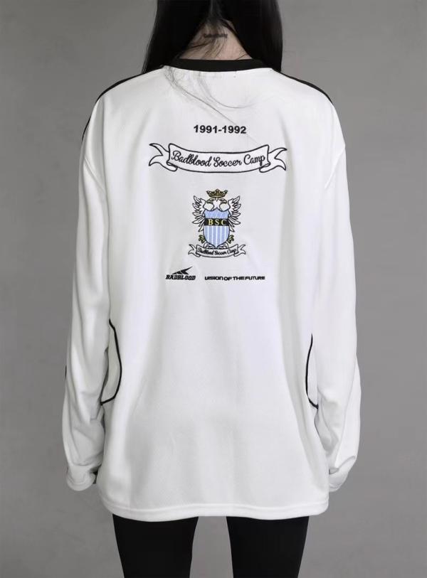 badblood美式復古球衣重工刺繡上衣衛褲厚棉T女街頭寬鬆長袖T恤潮