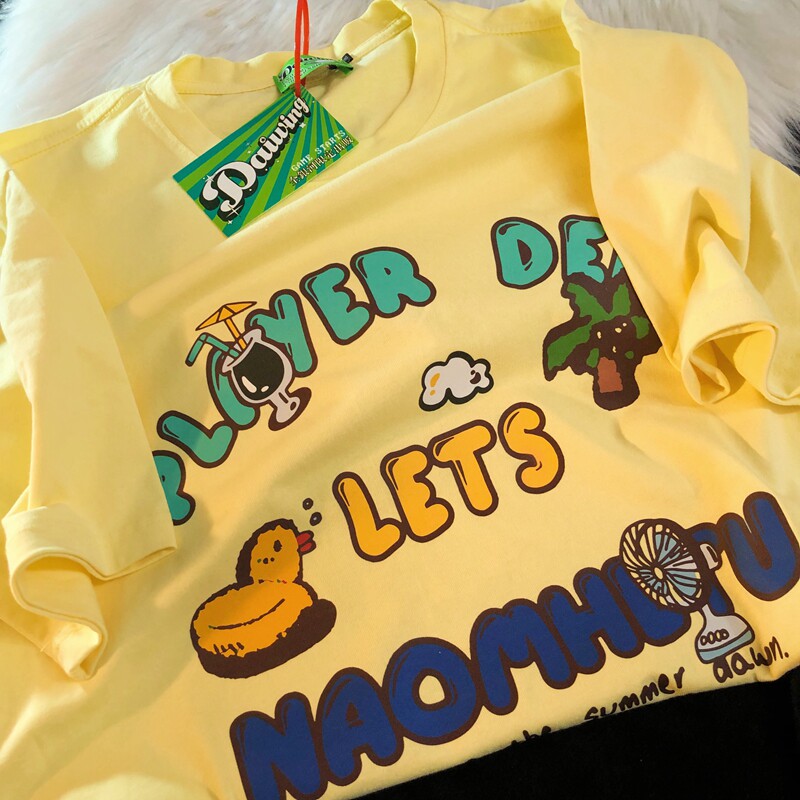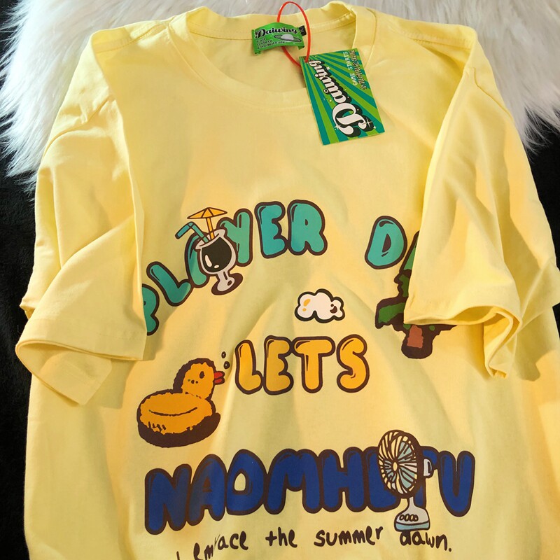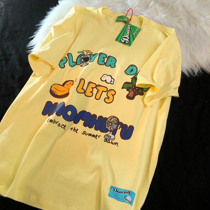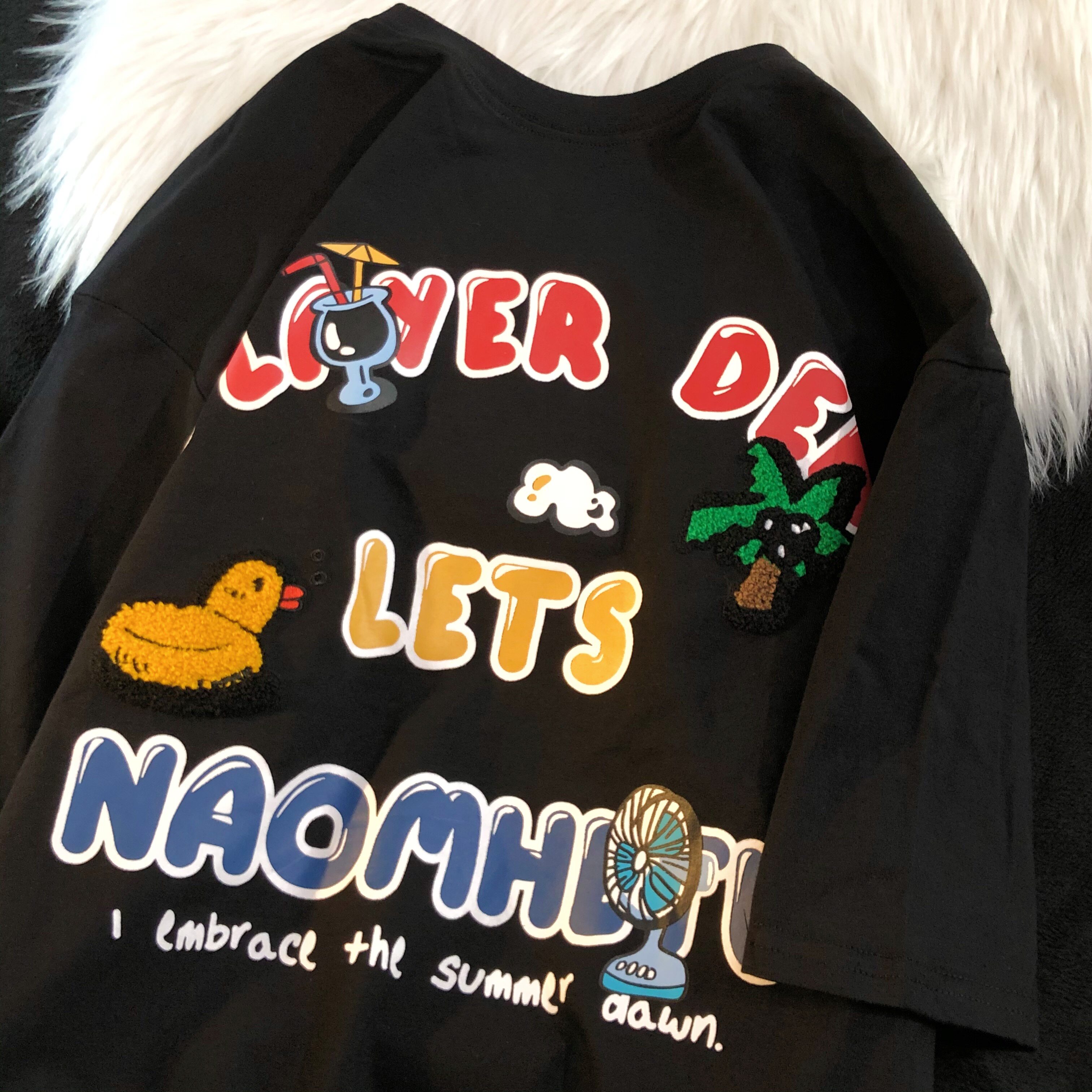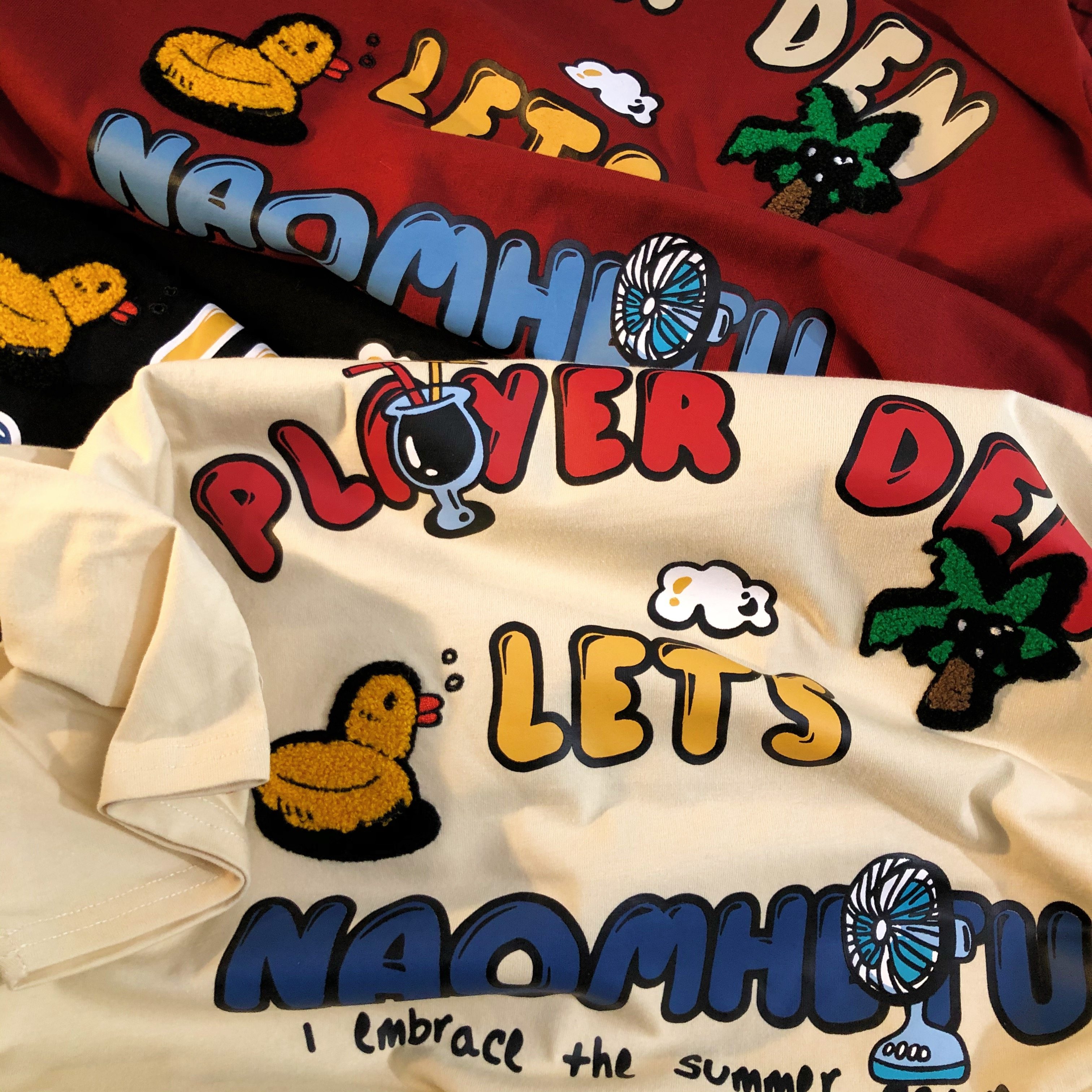 Daiwing 奶寶の遛彎日記 美式毛巾繡卡通半袖夏裝沙灘情侶短袖T恤