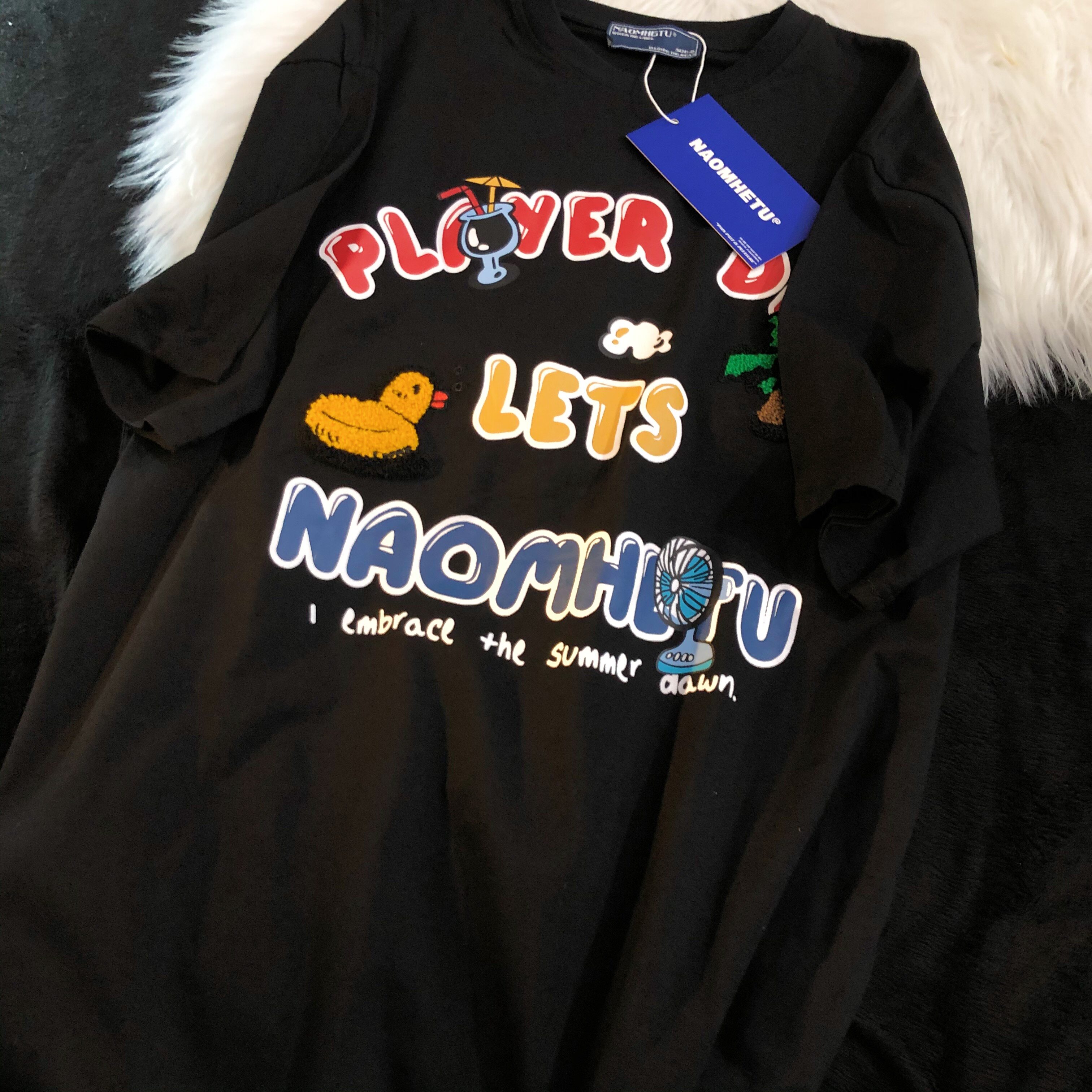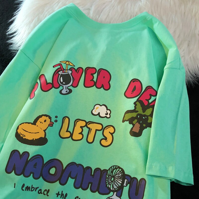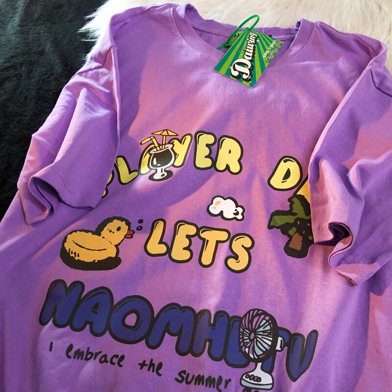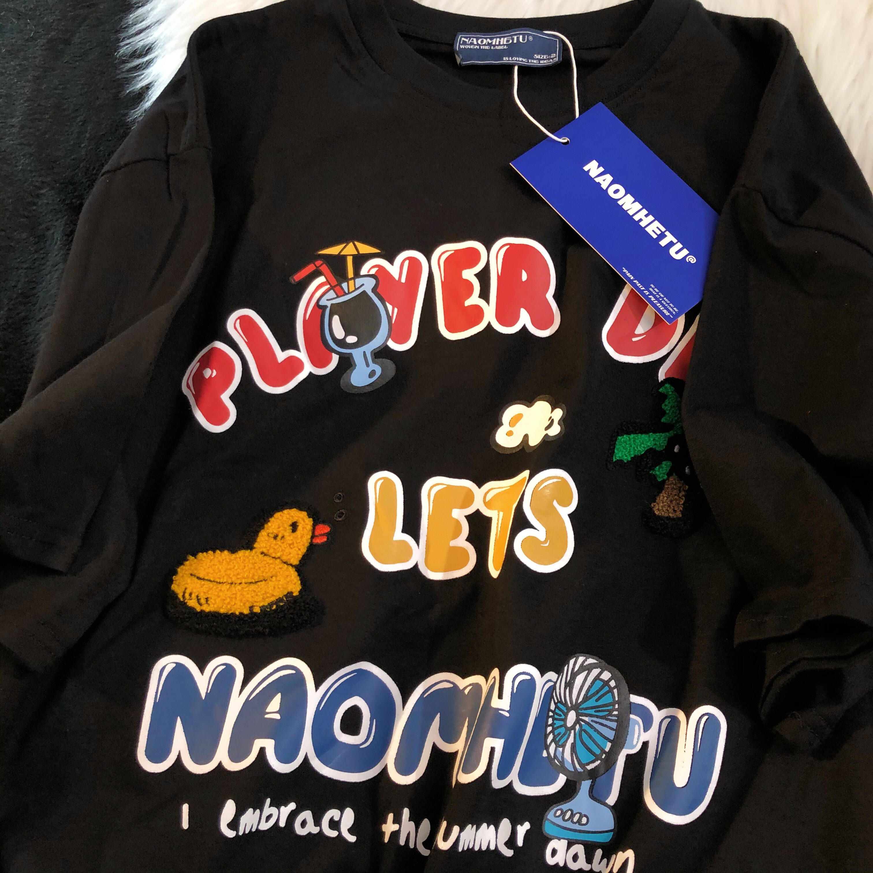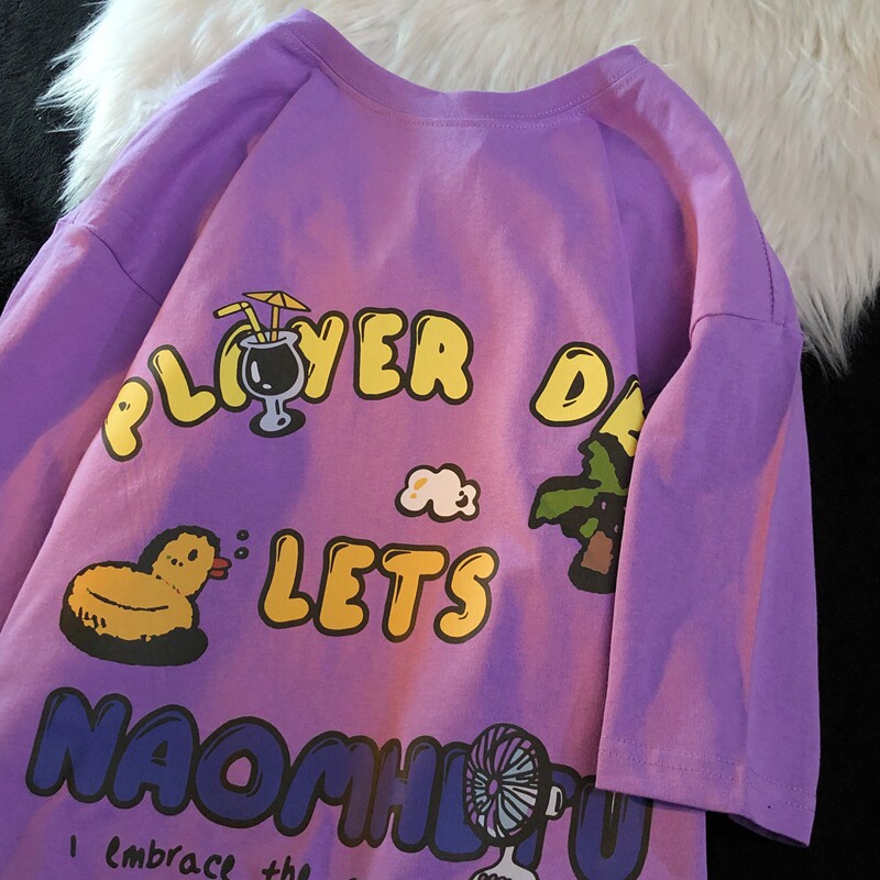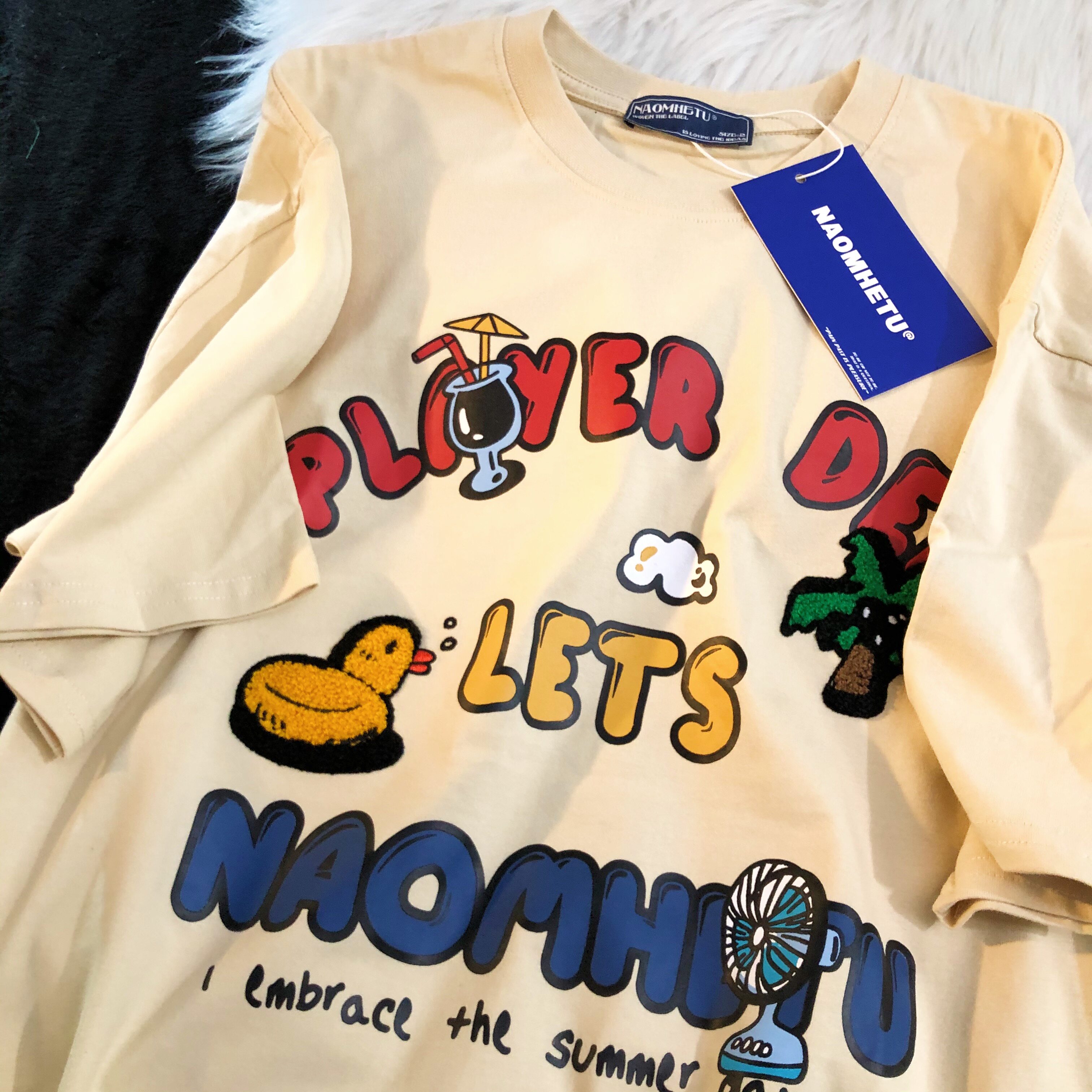 Daiwing 奶寶の遛彎日記 美式毛巾繡卡通半袖夏裝沙灘情侶短袖T恤