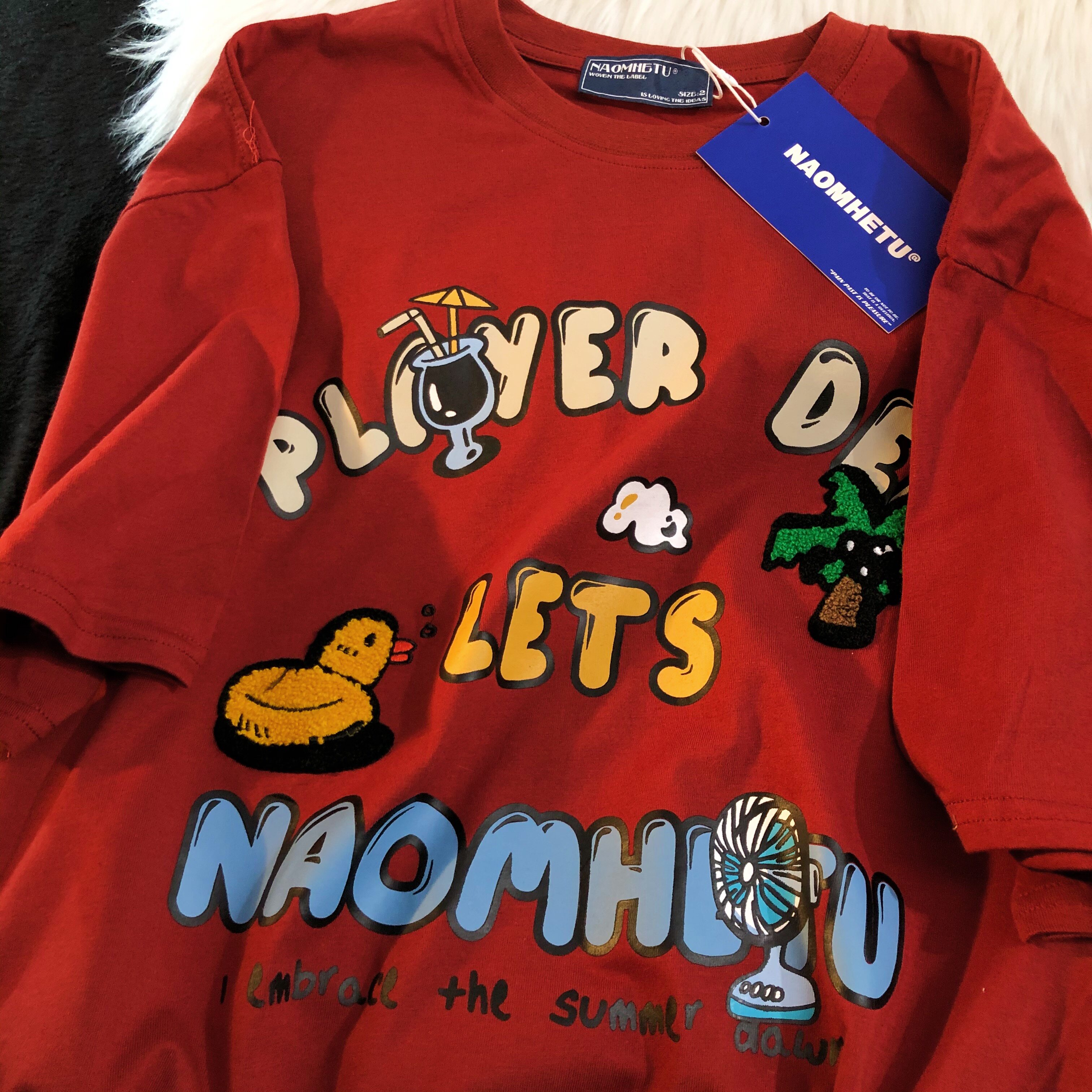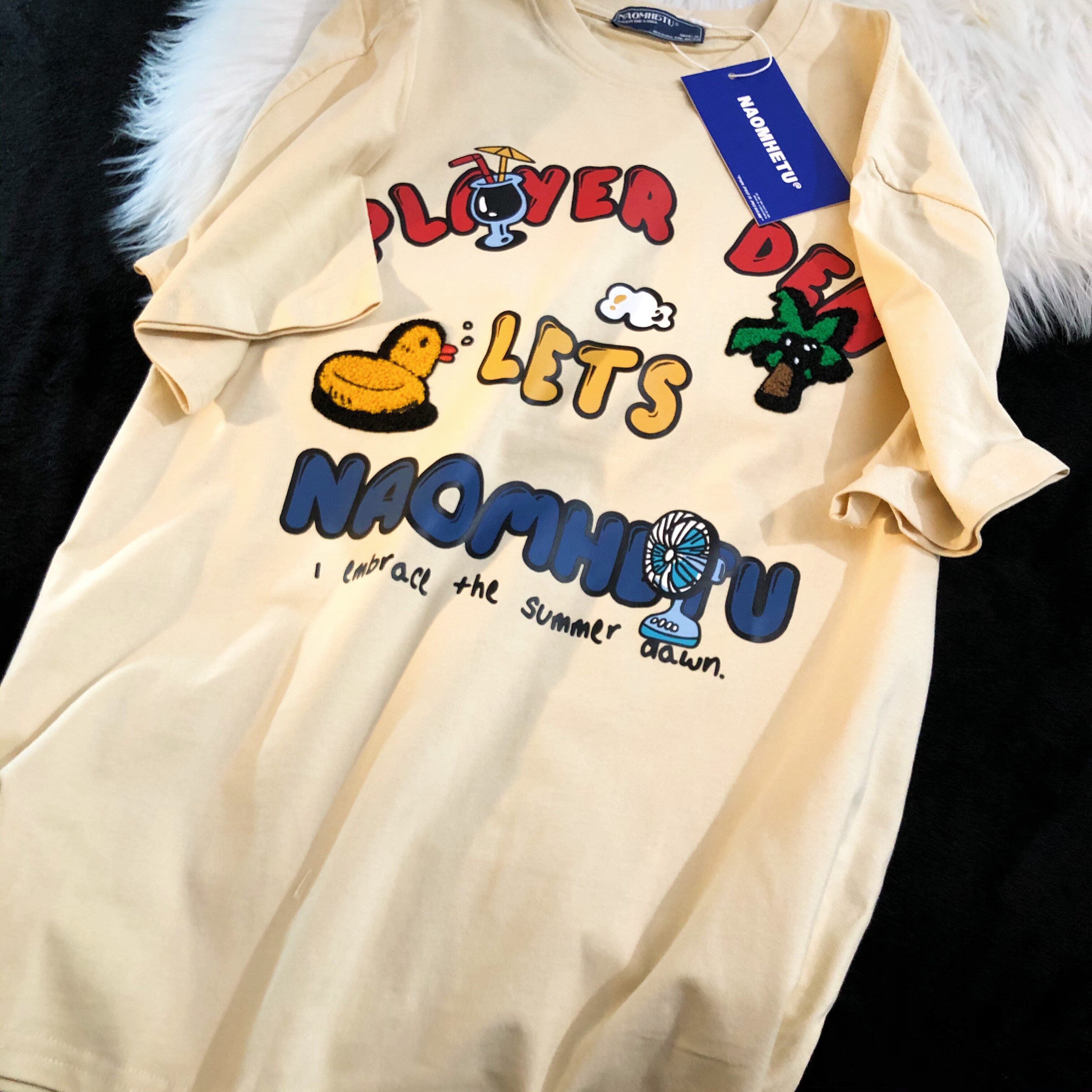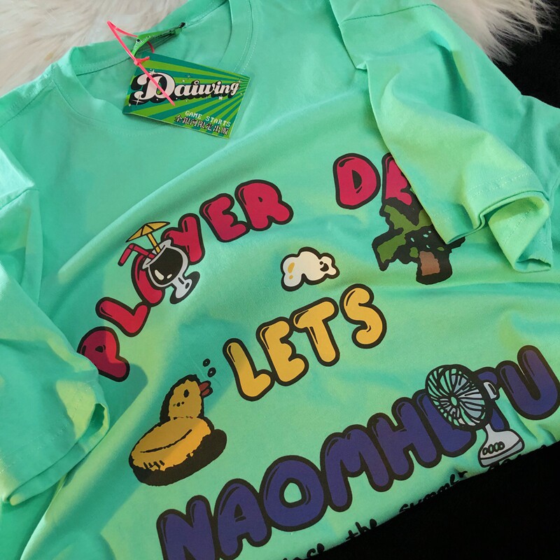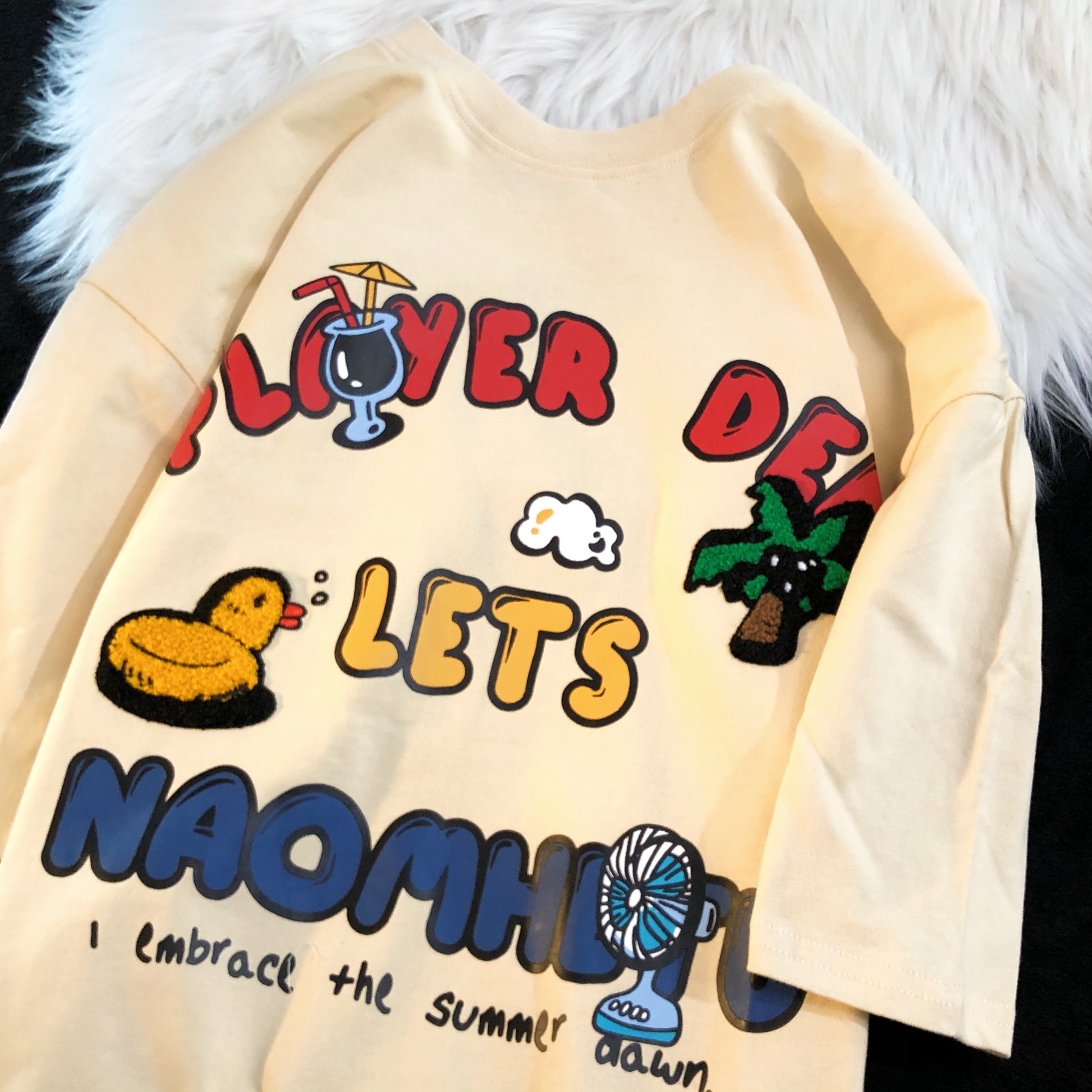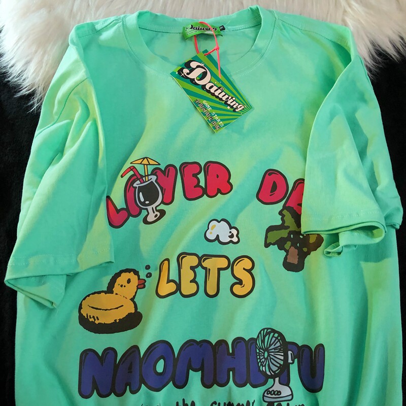 Daiwing 奶寶の遛彎日記 美式毛巾繡卡通半袖夏裝沙灘情侶短袖T恤
