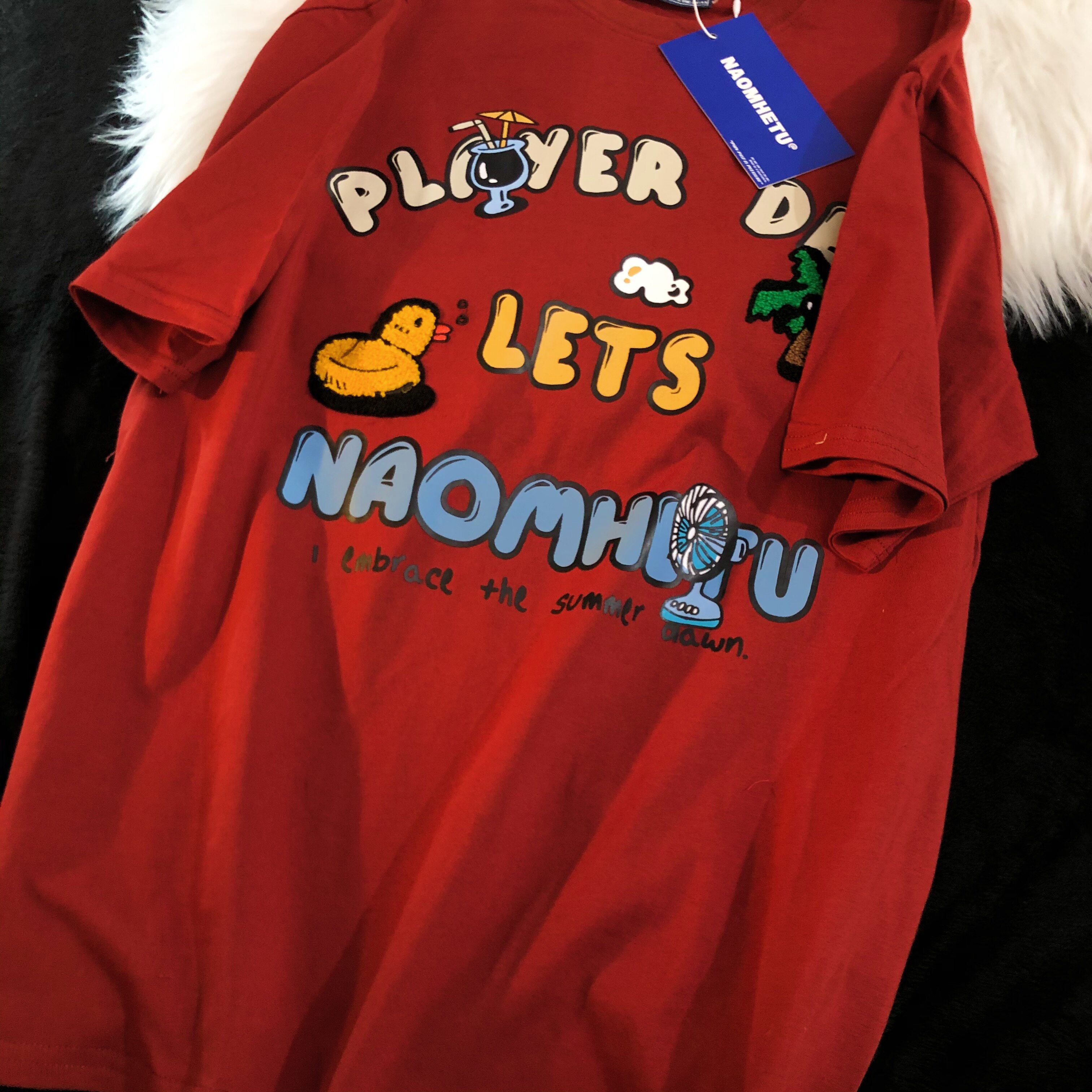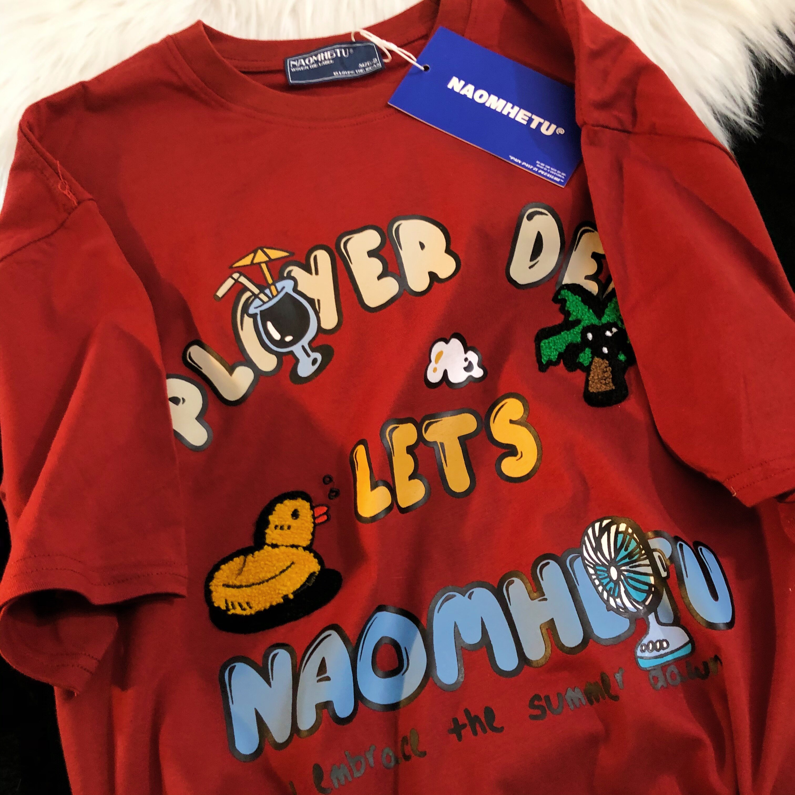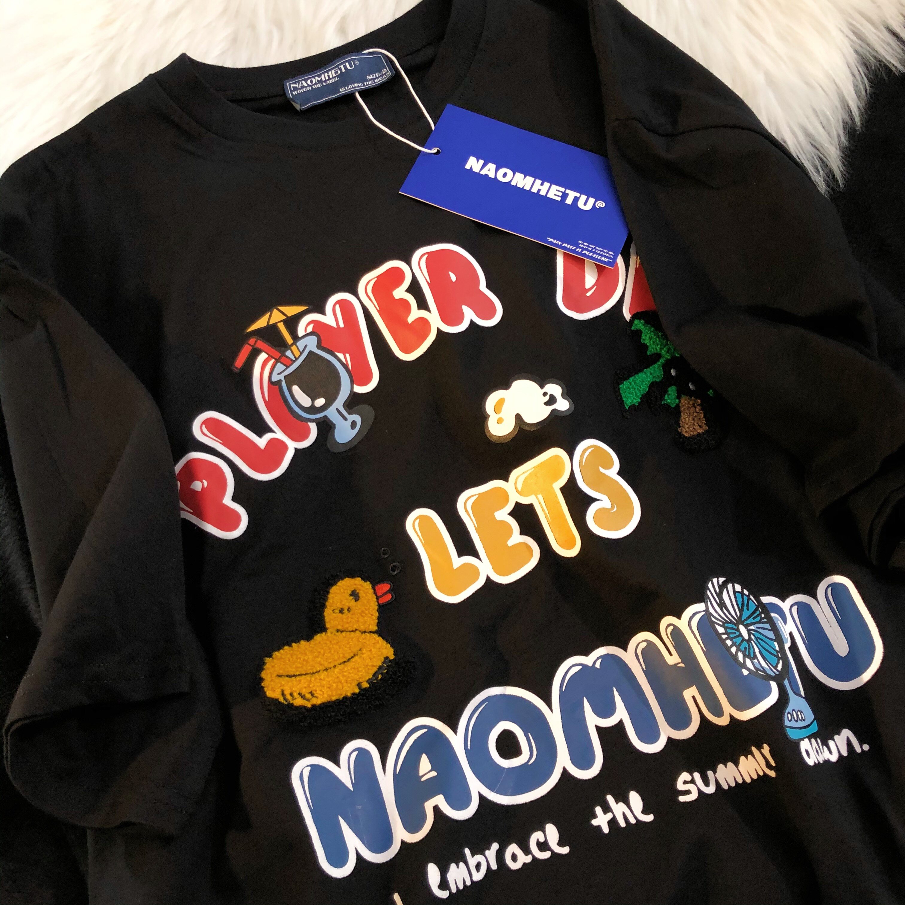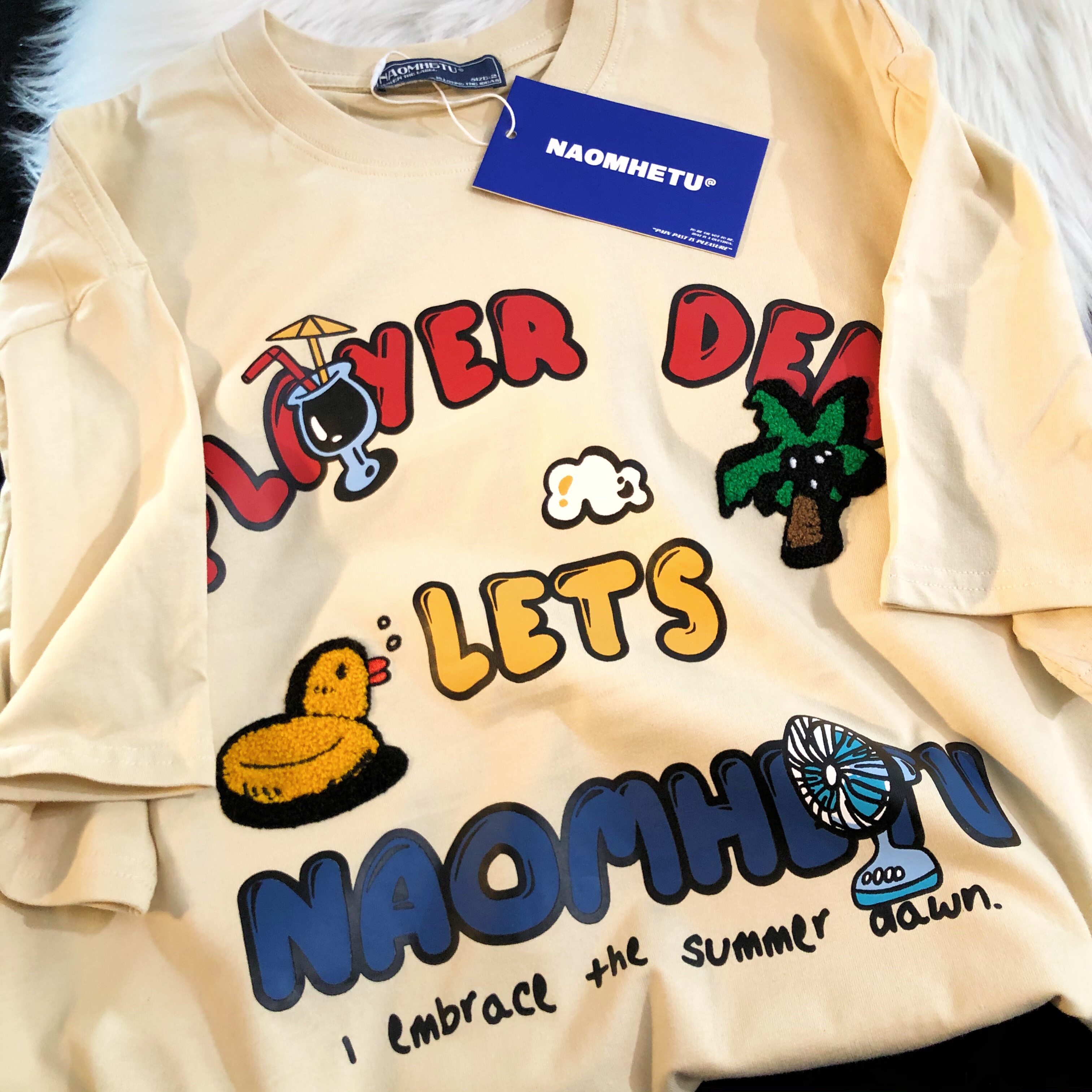 Daiwing 奶寶の遛彎日記 美式毛巾繡卡通半袖夏裝沙灘情侶短袖T恤