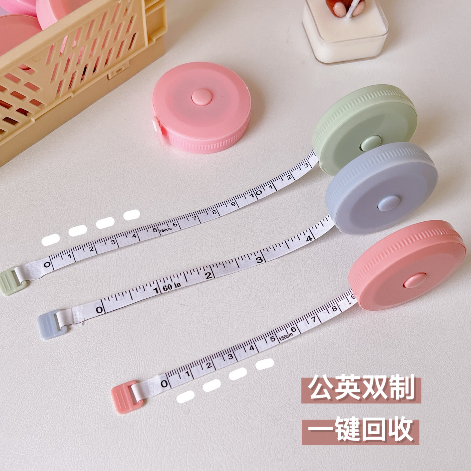 规格 1#湖蓝卷尺,2#绿色卷尺,3#黄色卷尺,4#米白卷尺,5#韩粉卷尺,6#浅粉卷尺