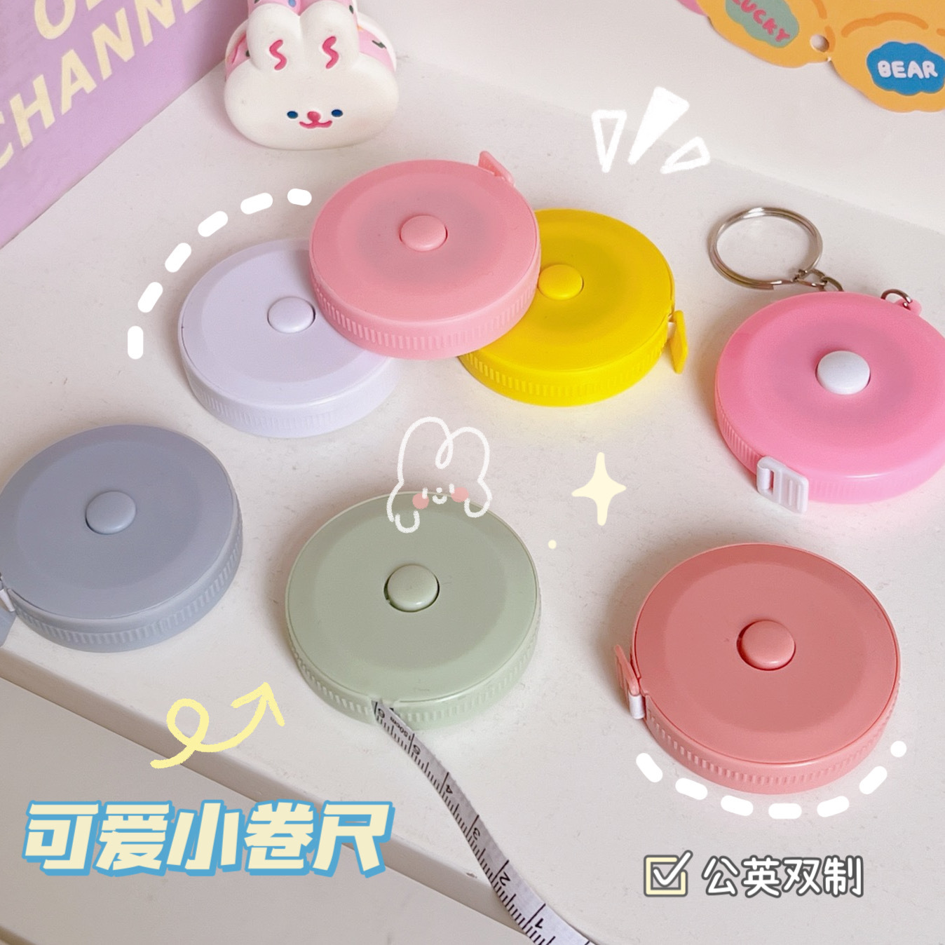 迷你携便卷尺量衣1.5m皮尺量腰围臀围可爱卡通测三围尺子软尺学生