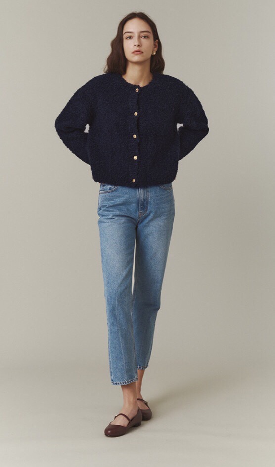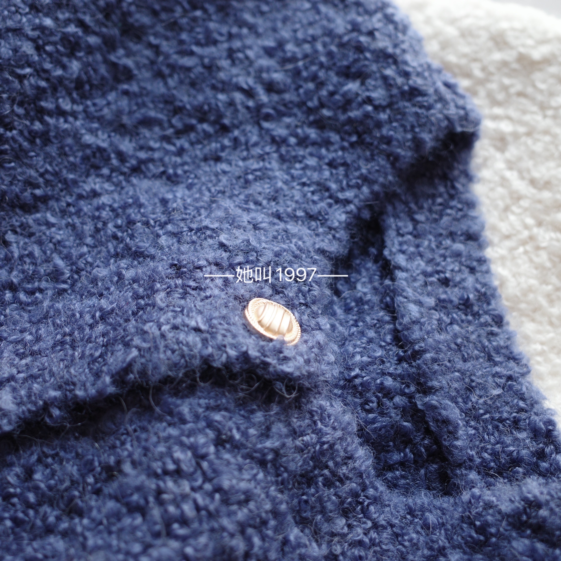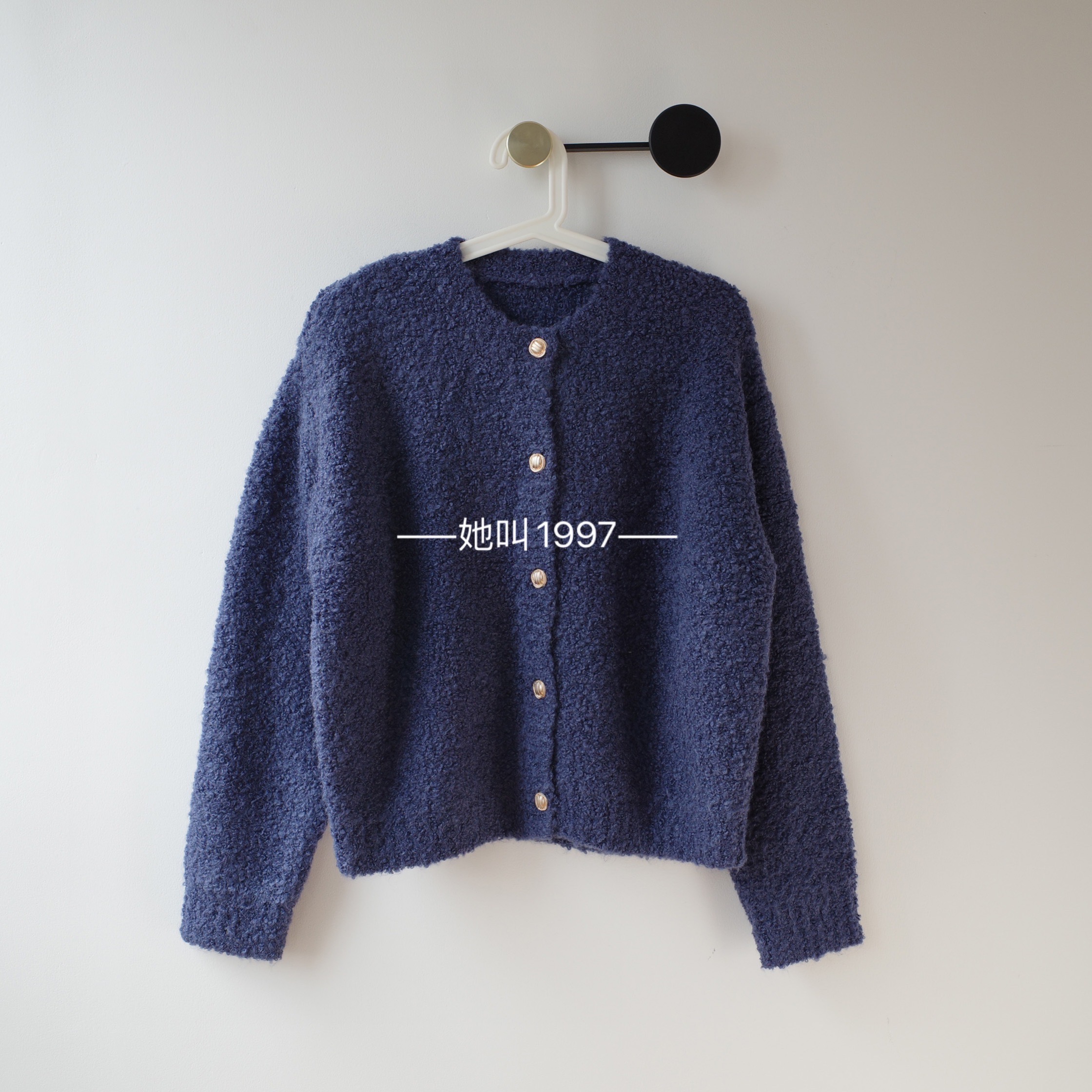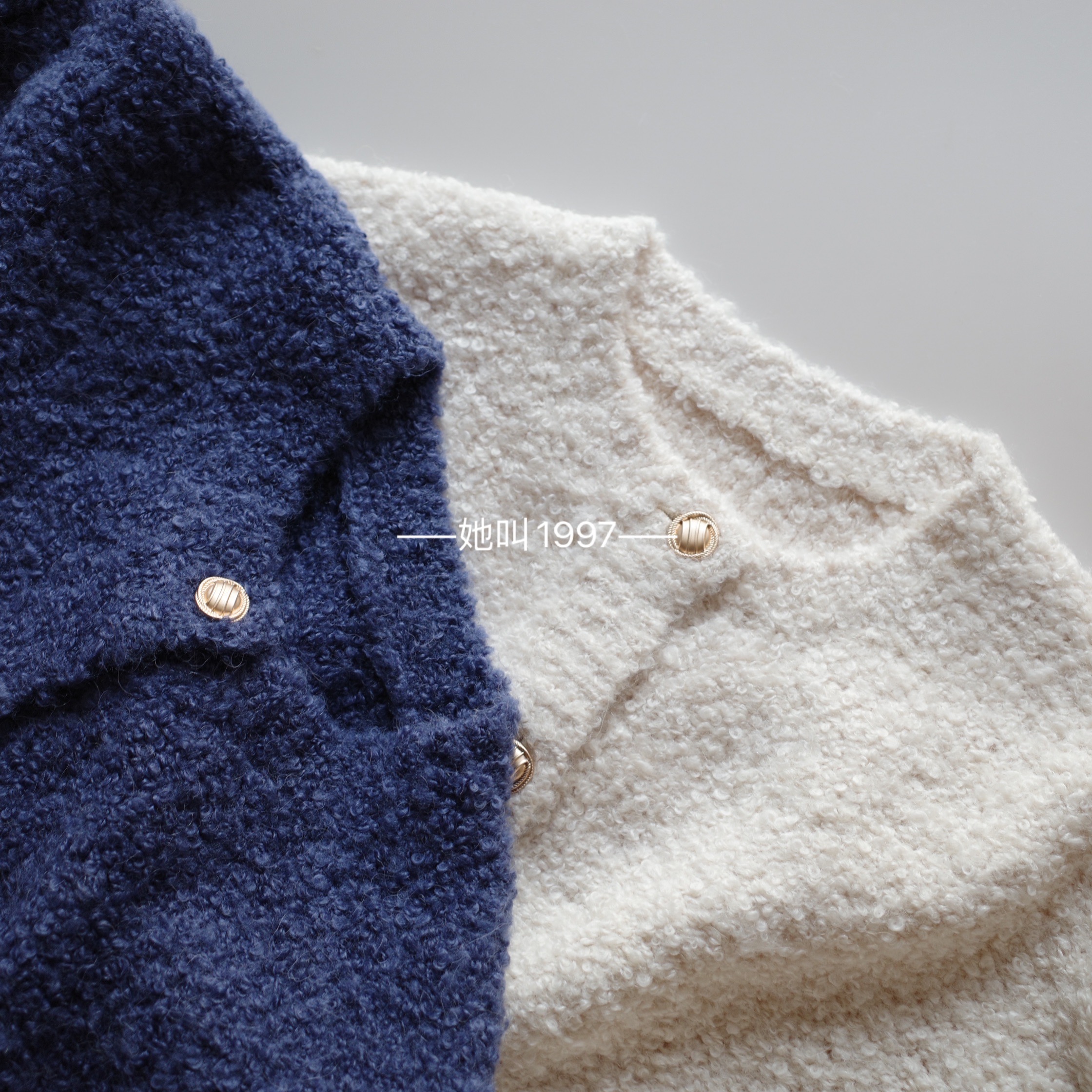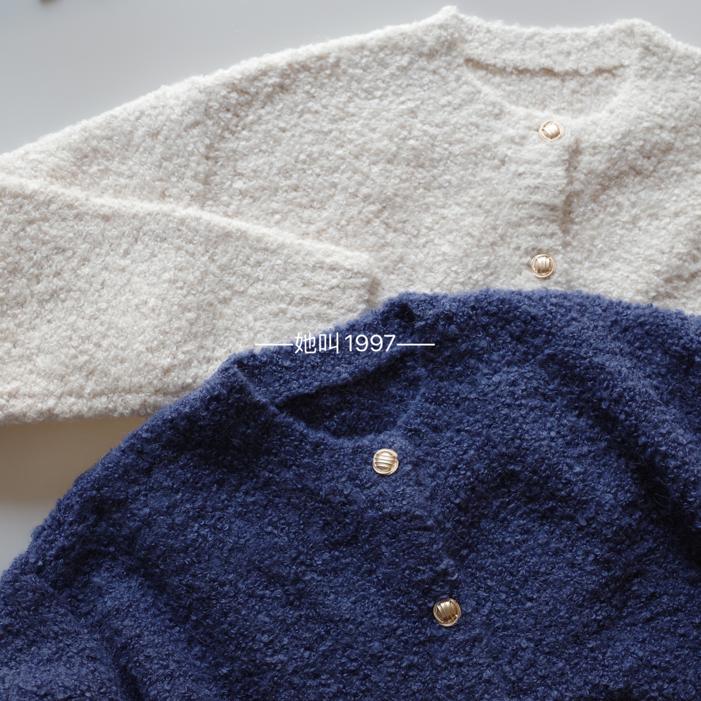 小眾~羊駝毛羊毛圈圈紗 浮雕玫瑰金扣 寬鬆開衫外套 綿密顆粒感