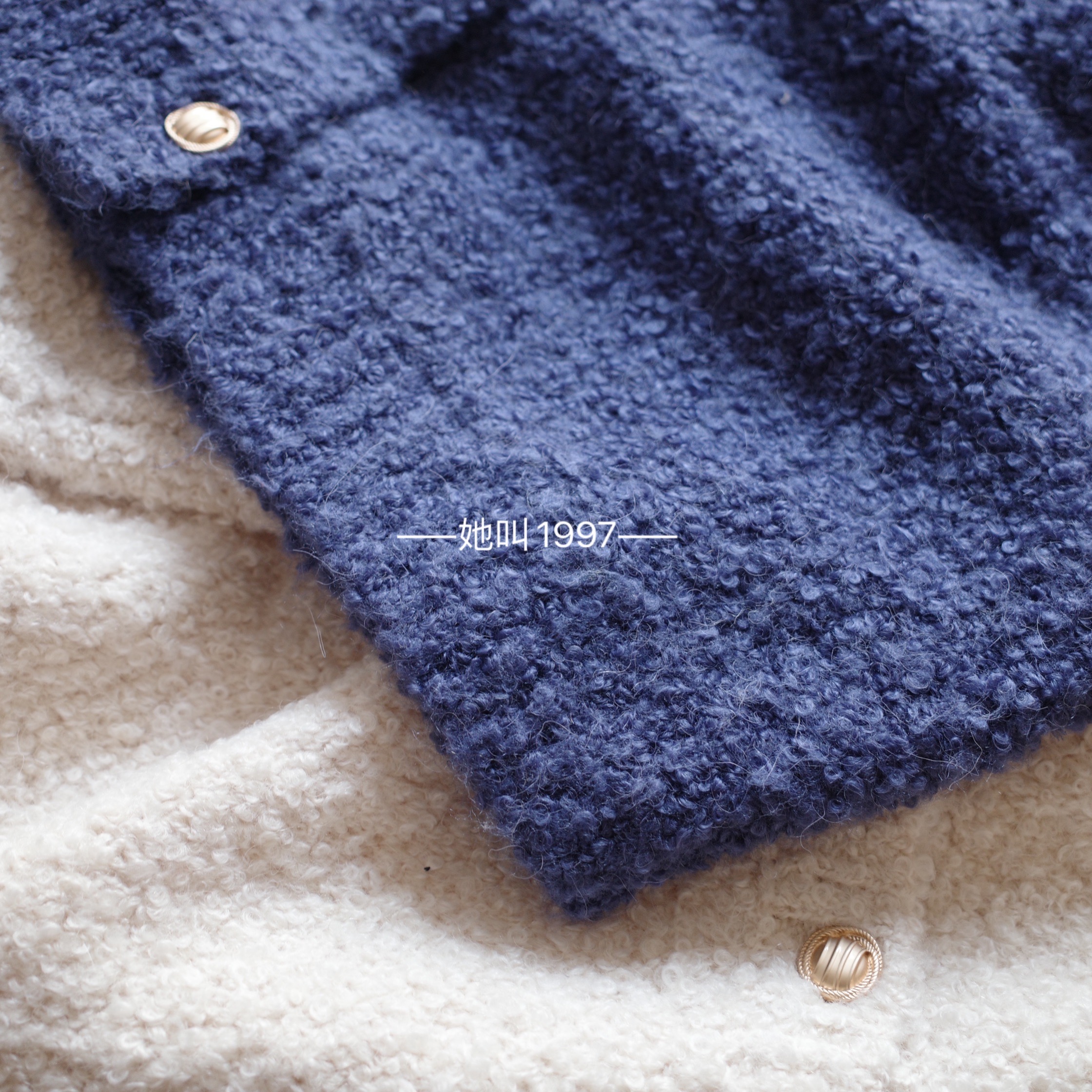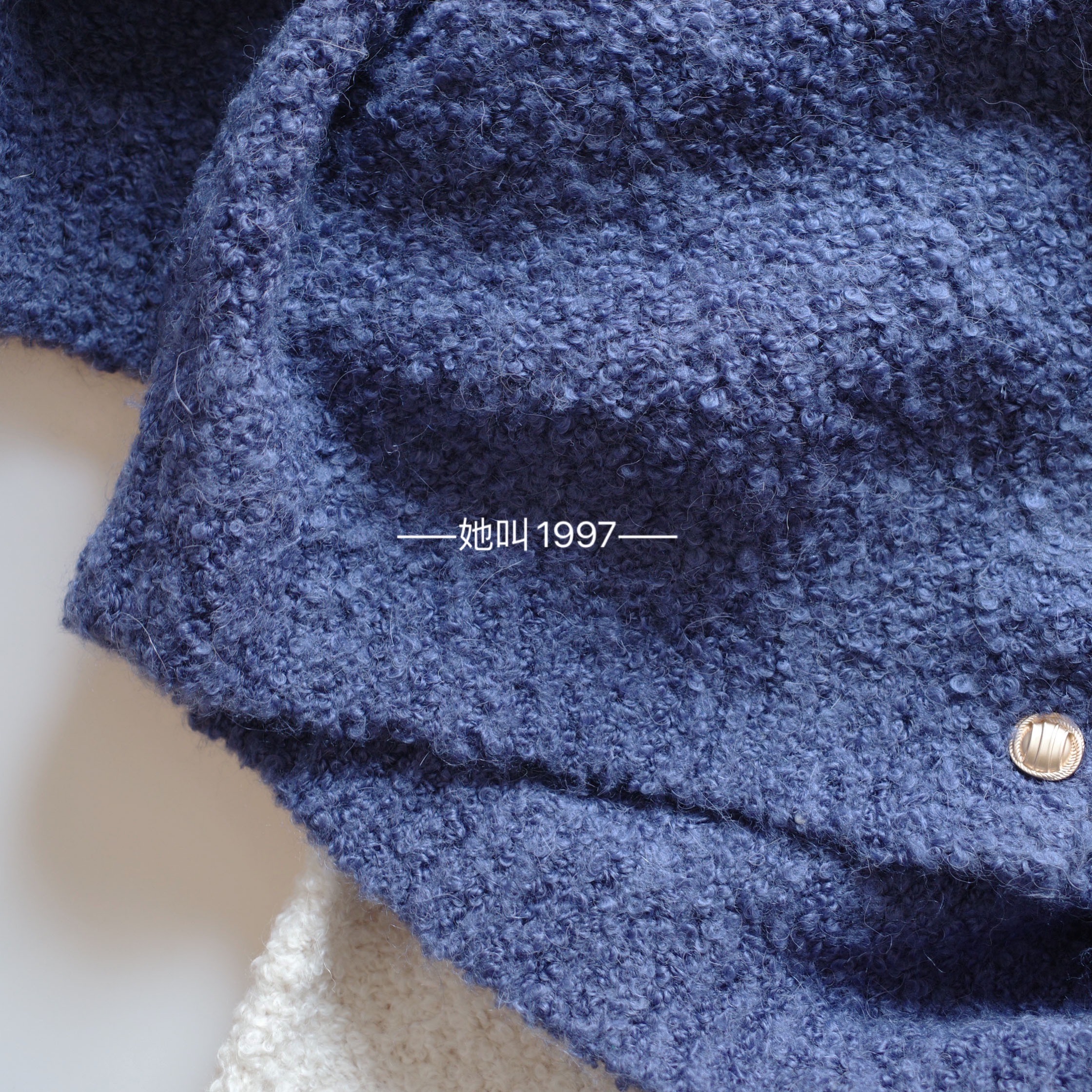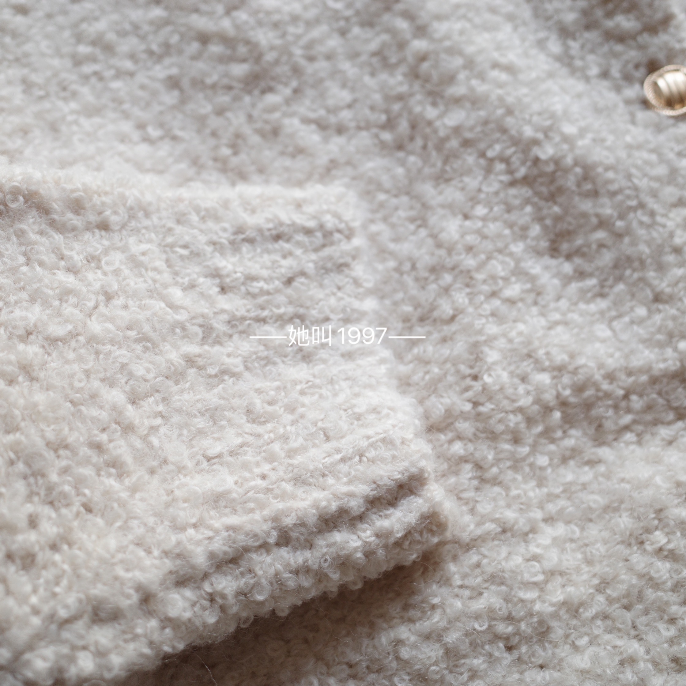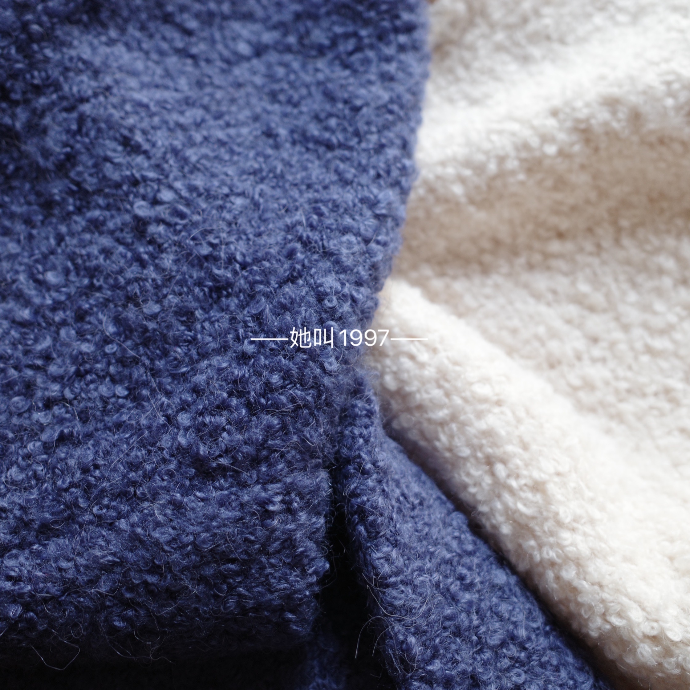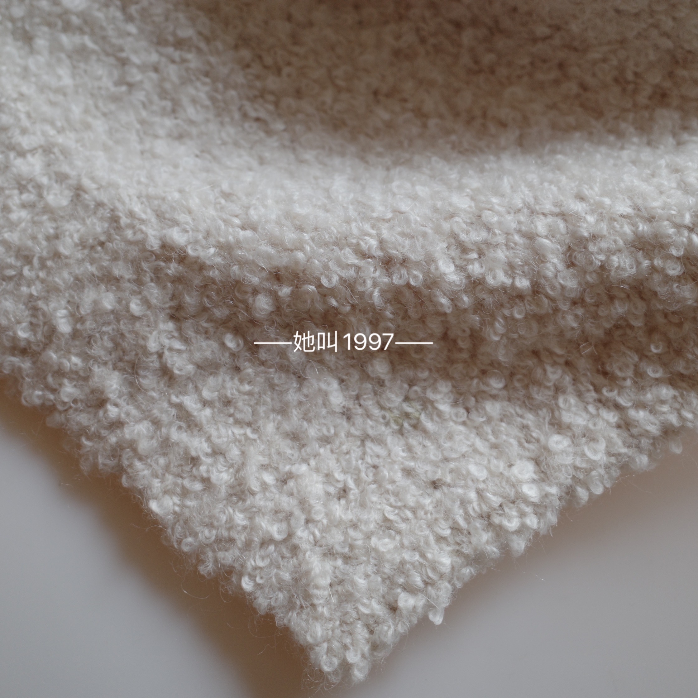 660G(单位克重)羊驼毛与羊毛混纺圈圈纱,呈羊剪绒粒卷曲状态,温暖舒适,表面带有细腻立体的颗粒绒感,柔和的视觉感受,恰到好处的绵密蓬松感,慵懒而不臃肿。