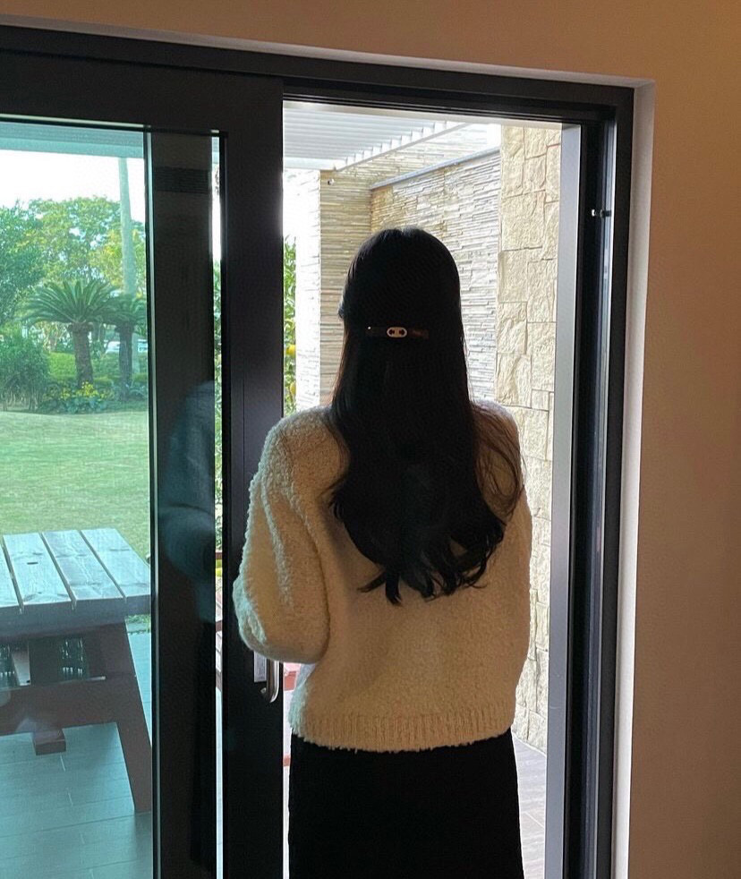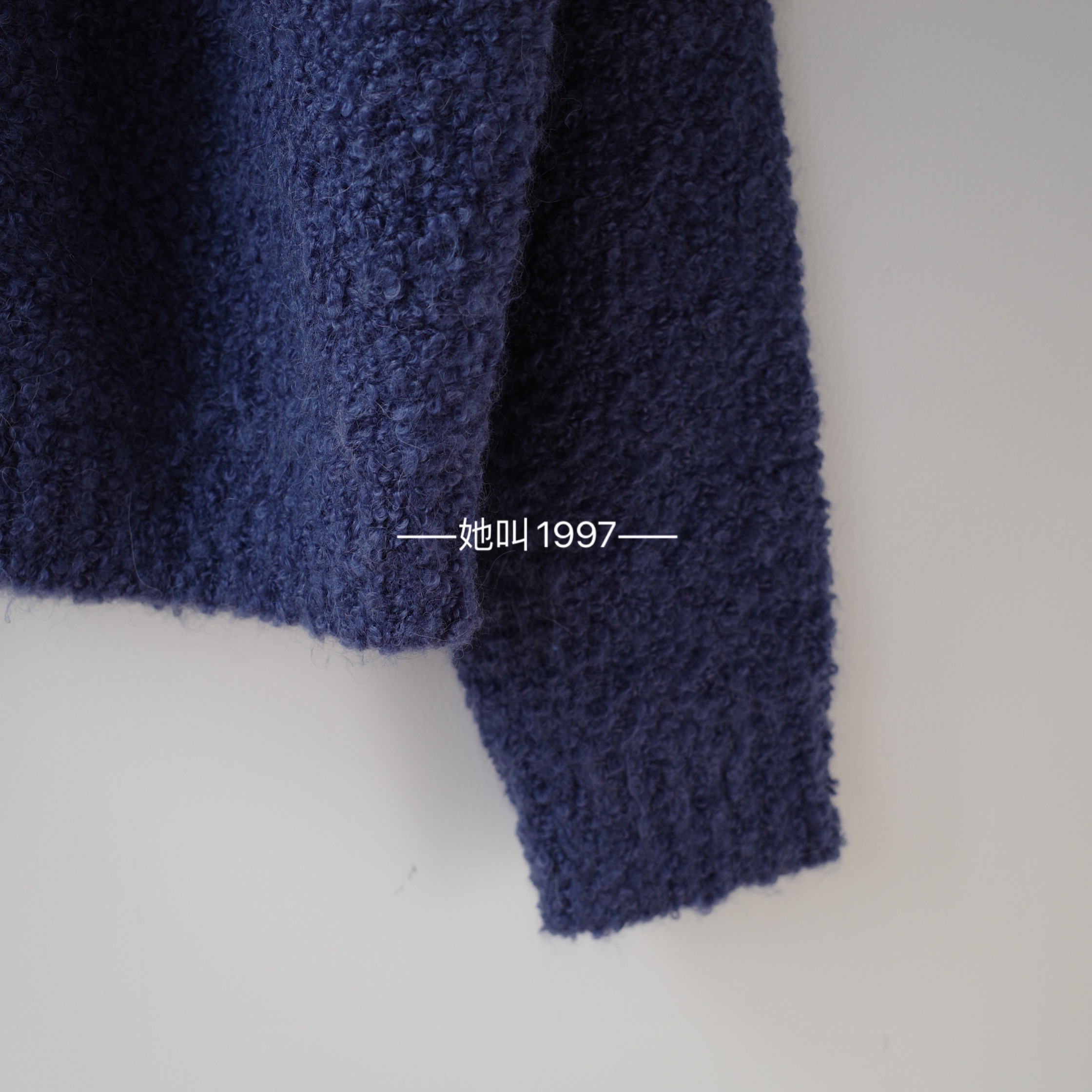 椭圆领型+落肩袖肩部线条更流畅,衣身羊驼毛圈圈纱肌理营造了温暖手工感。