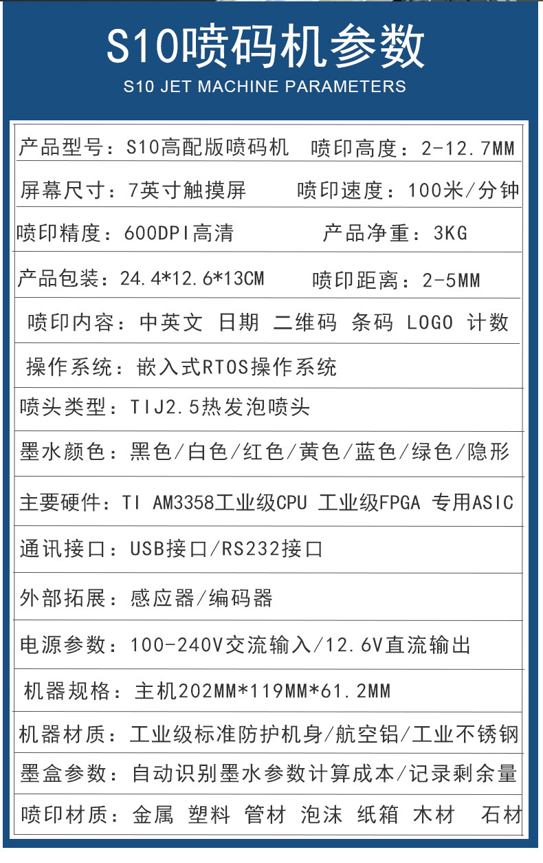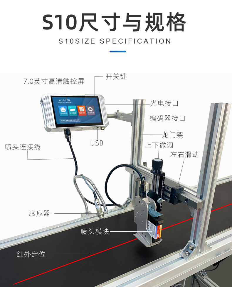 规格 S10高配喷码机,S10高配喷码机+普通输送机,S10高配喷码机+铝型输送机