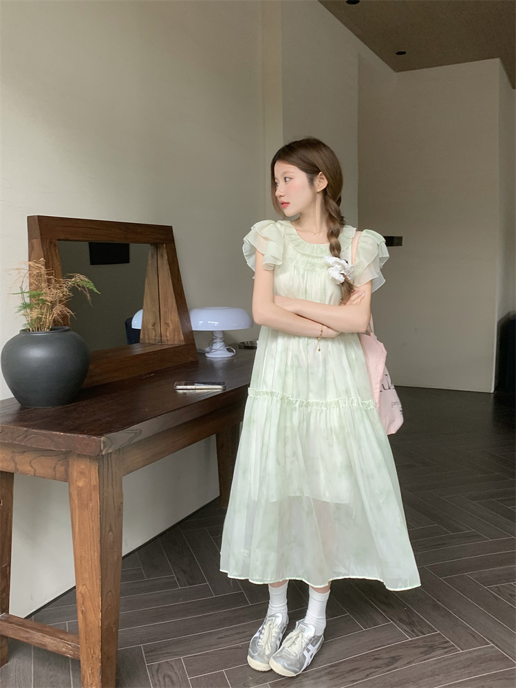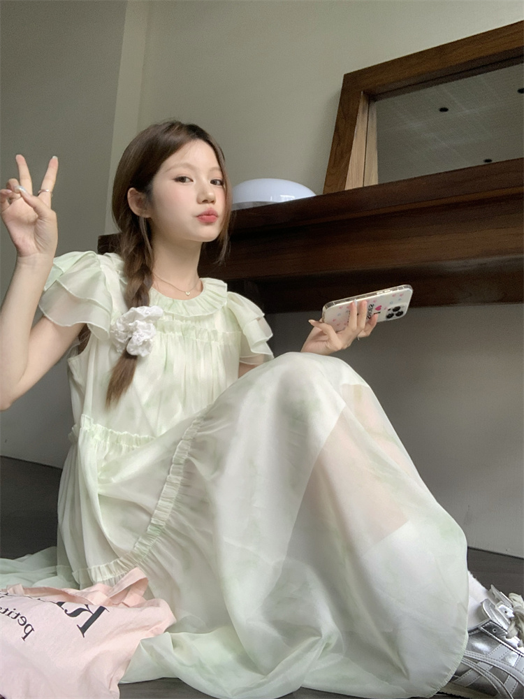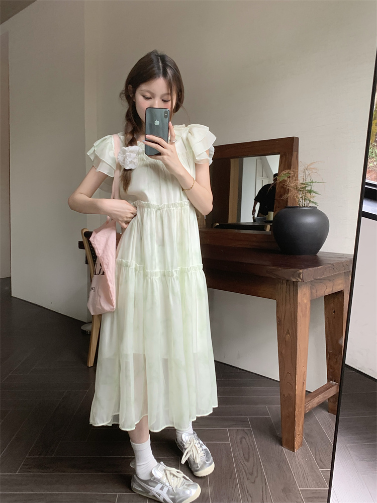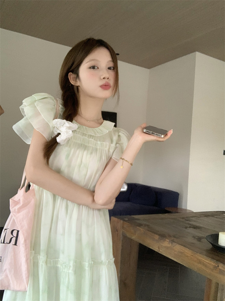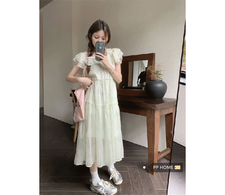 PPHOME浮香甜妹~1/4吋套筒扳手袖洋裝夏氣質仙女設計感漂亮寬鬆顯瘦長裙