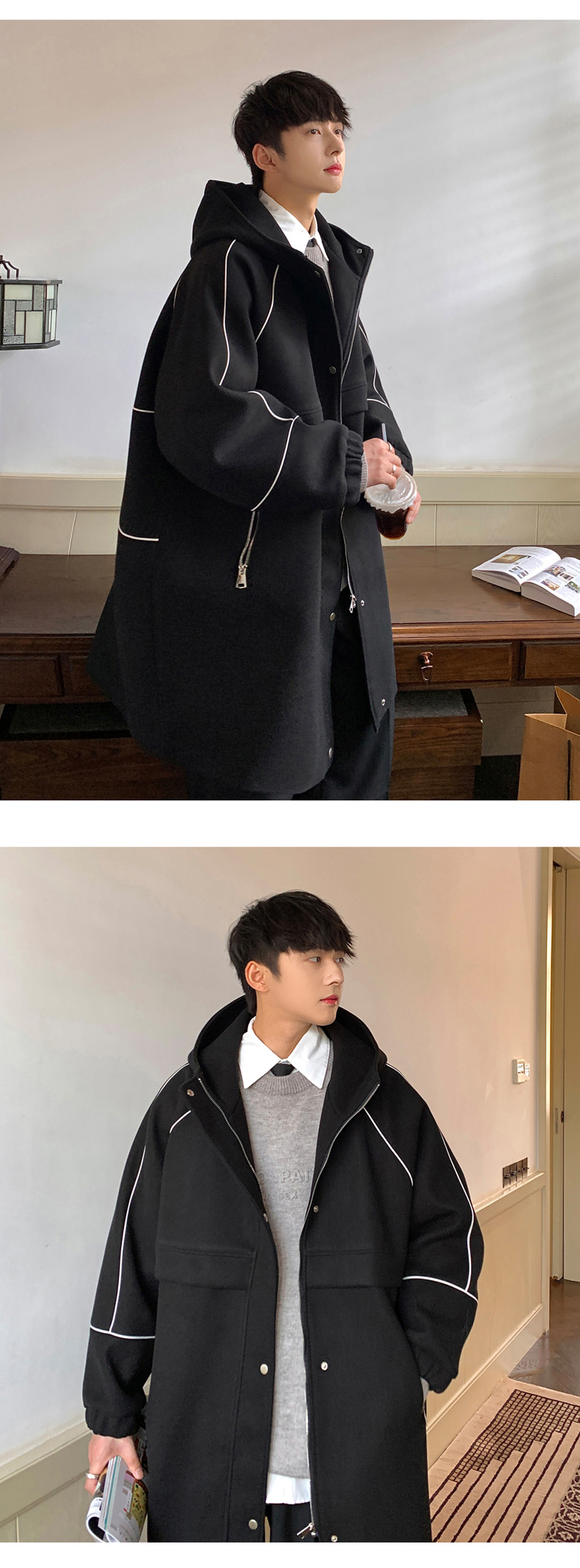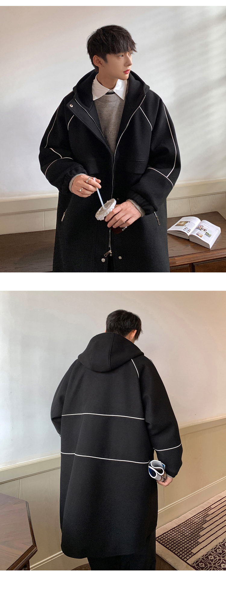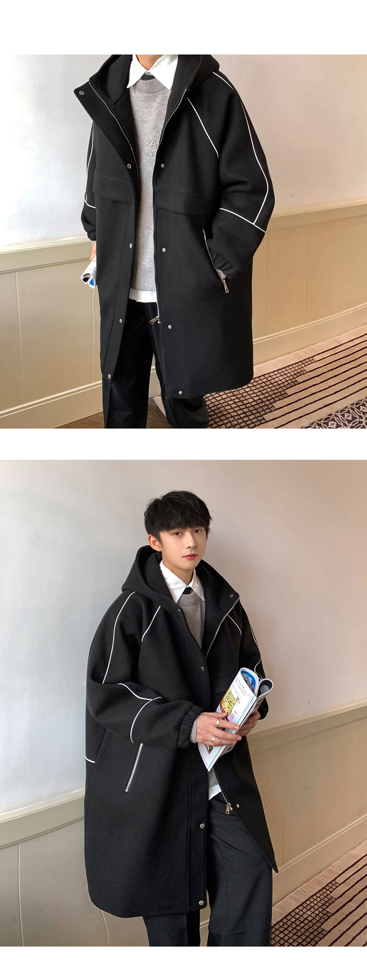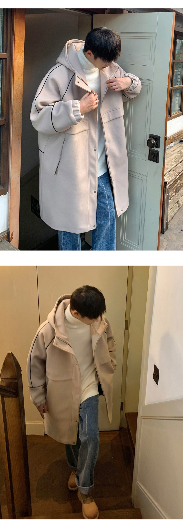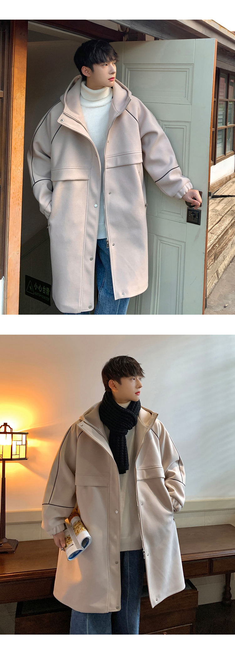 毛呢大衣高級感男生韓系情侶痞帥連帽呢子外套春秋加厚中長版風衣