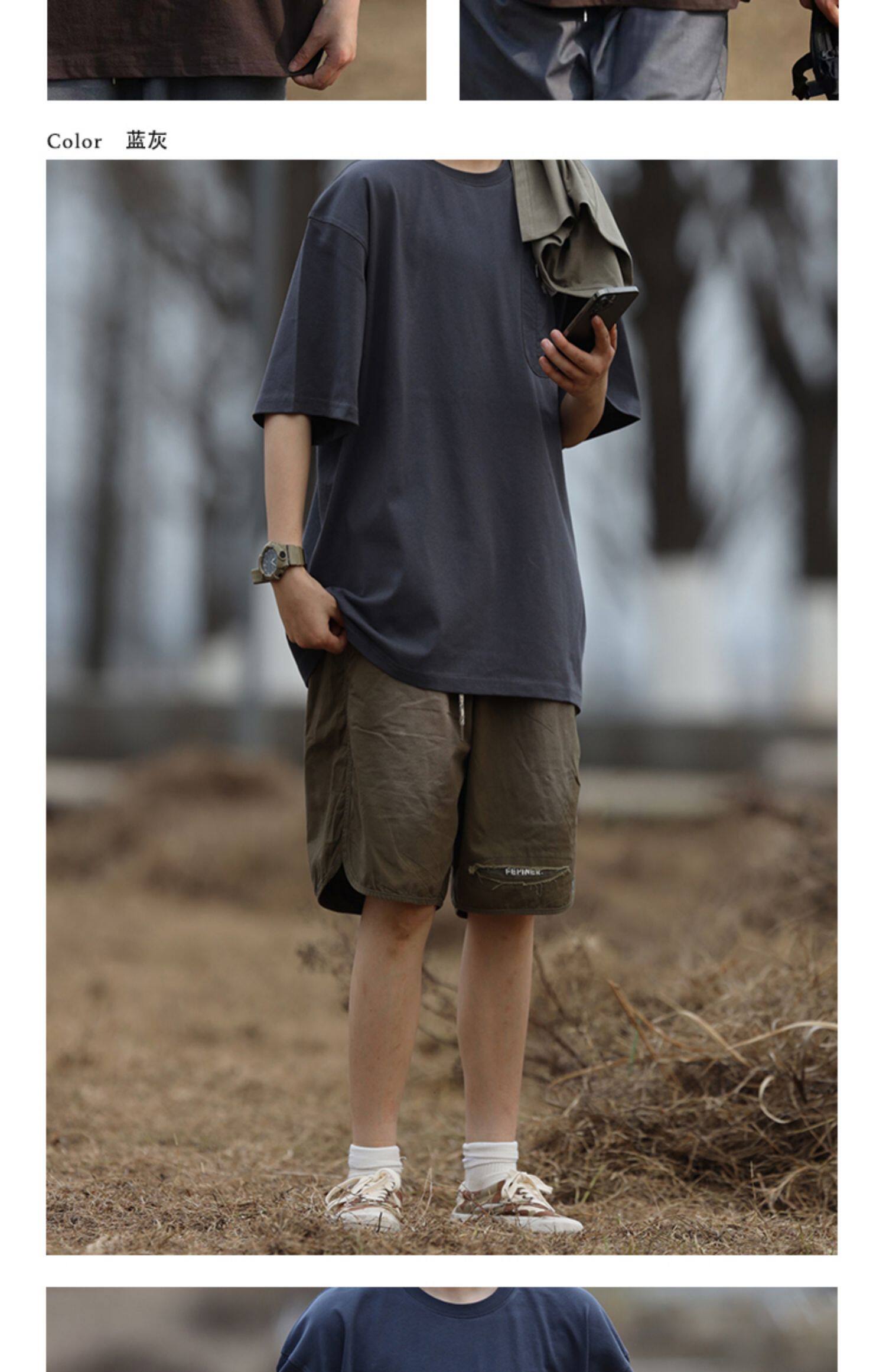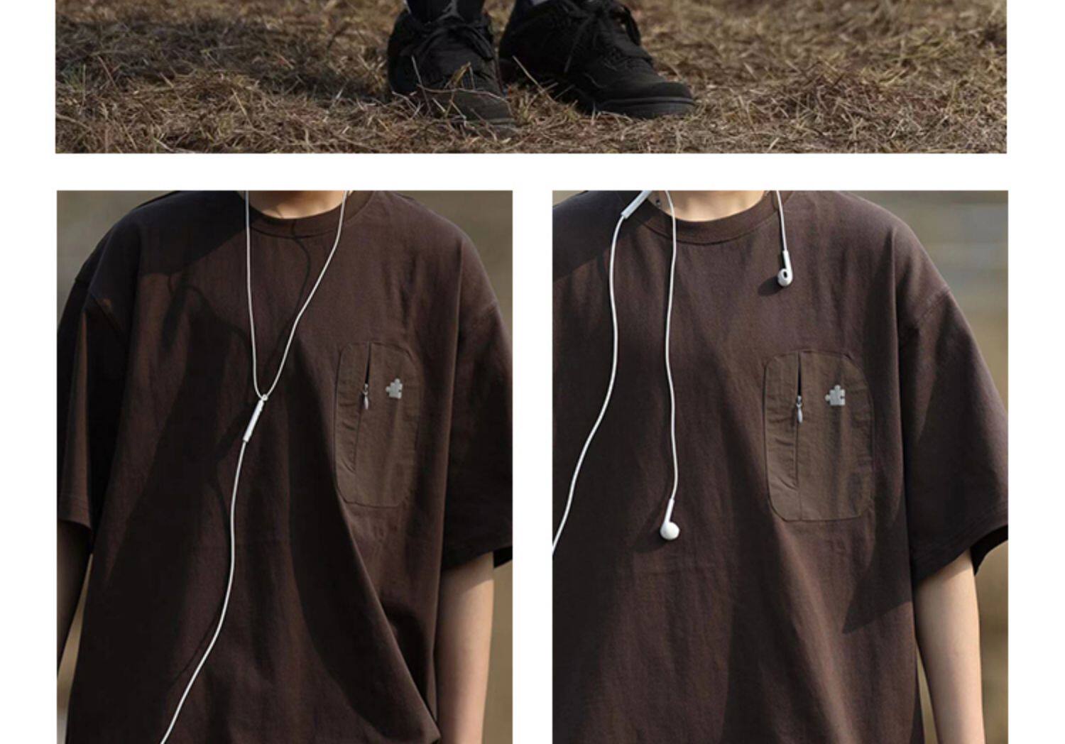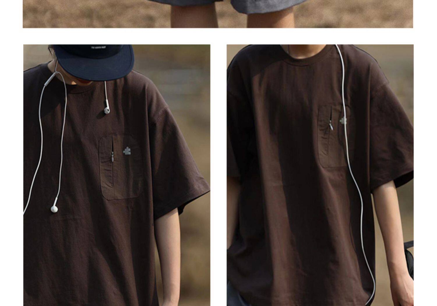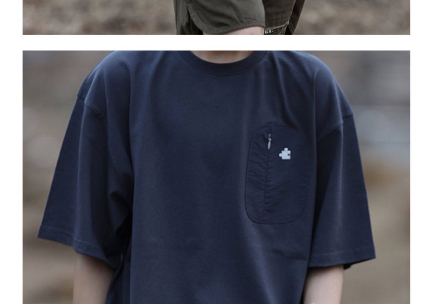 Nobodyknows 夏季日系純色戶外拼接口袋純棉山系短袖男女寬鬆半袖
