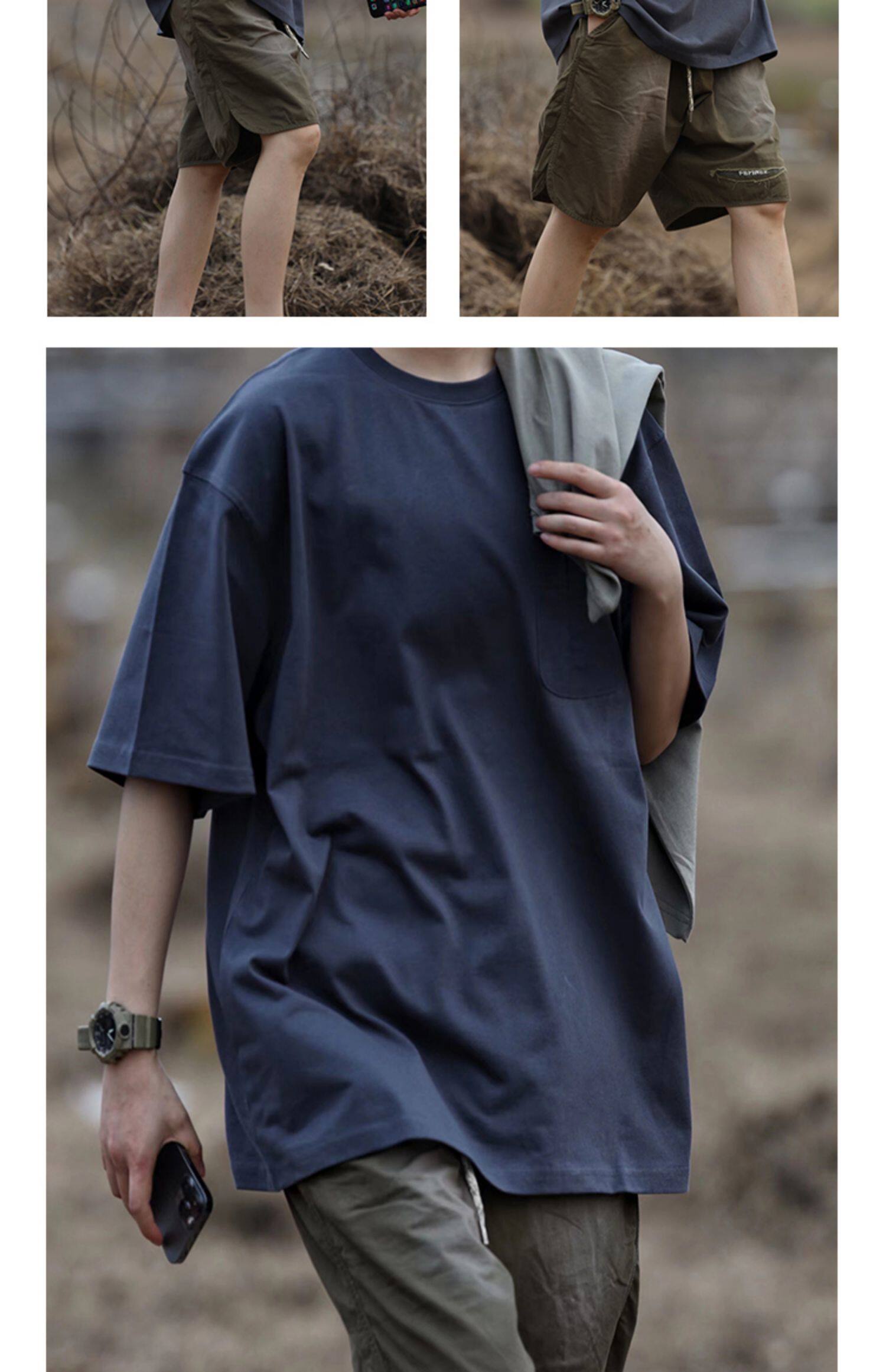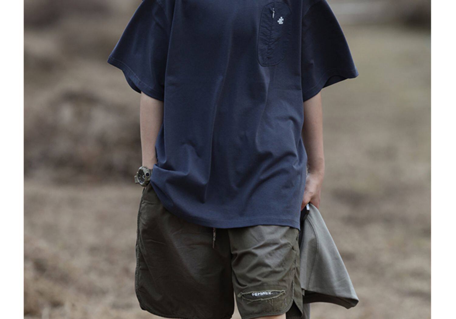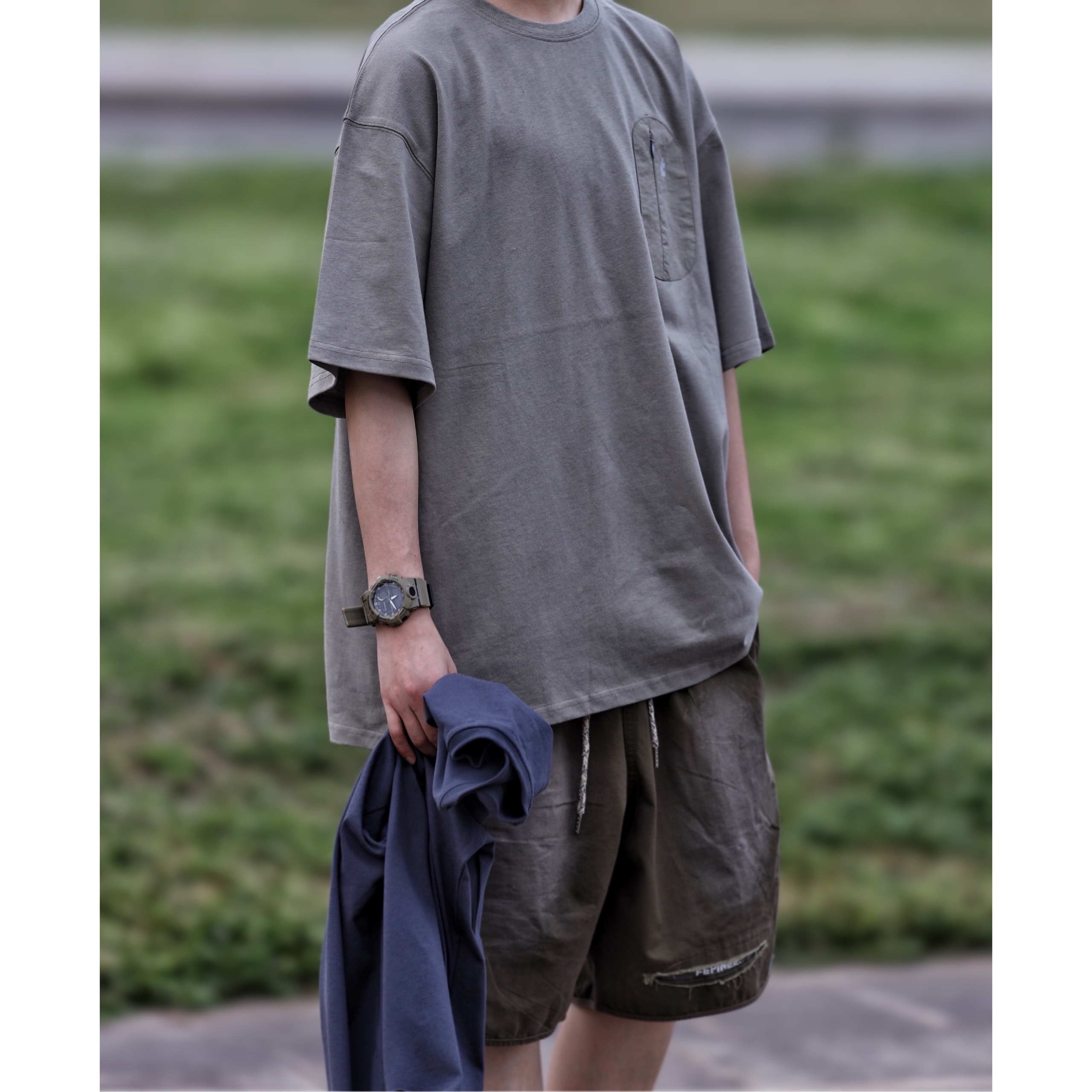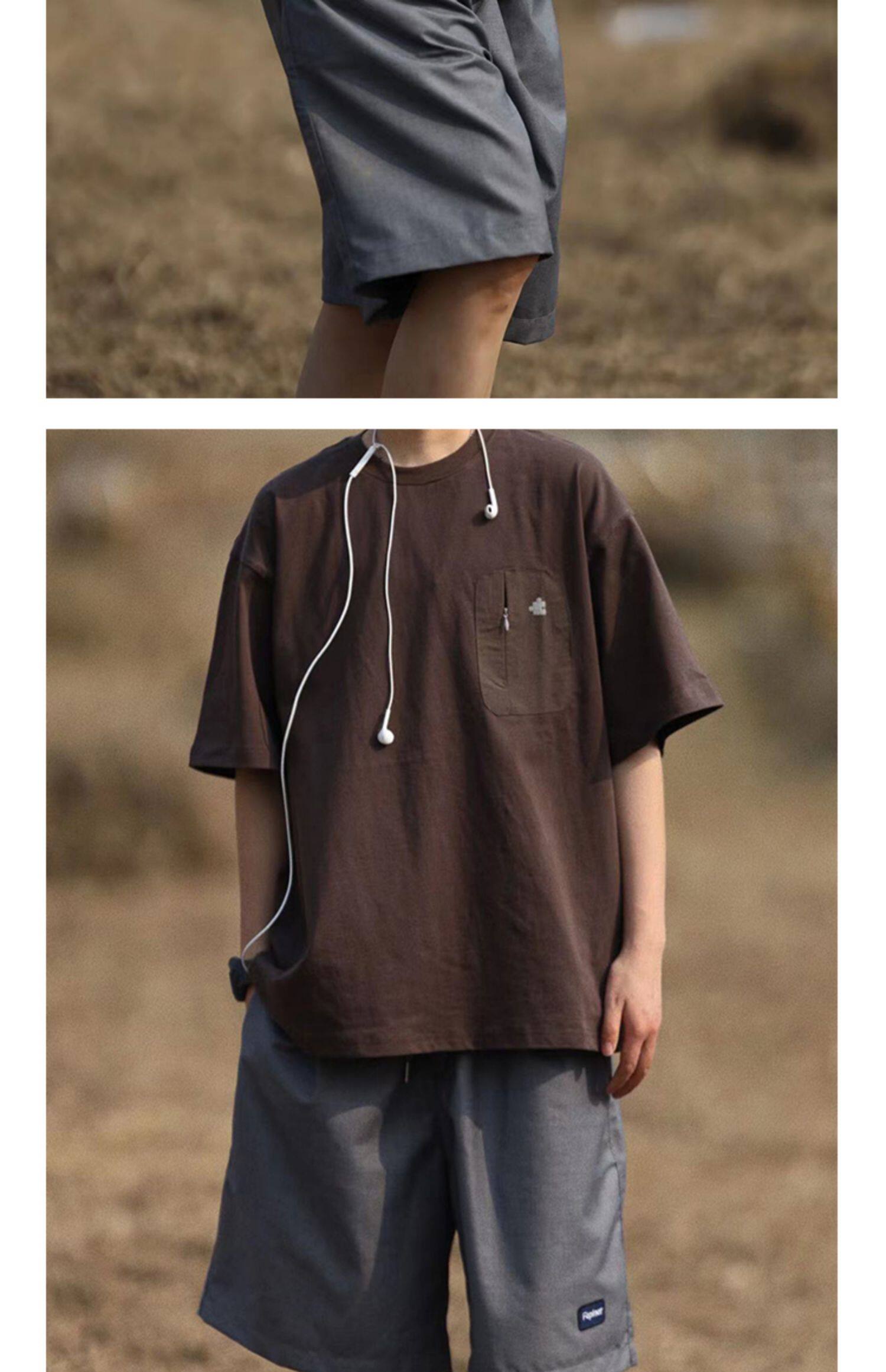 Nobodyknows 夏季日系純色戶外拼接口袋純棉山系短袖男女寬鬆半袖