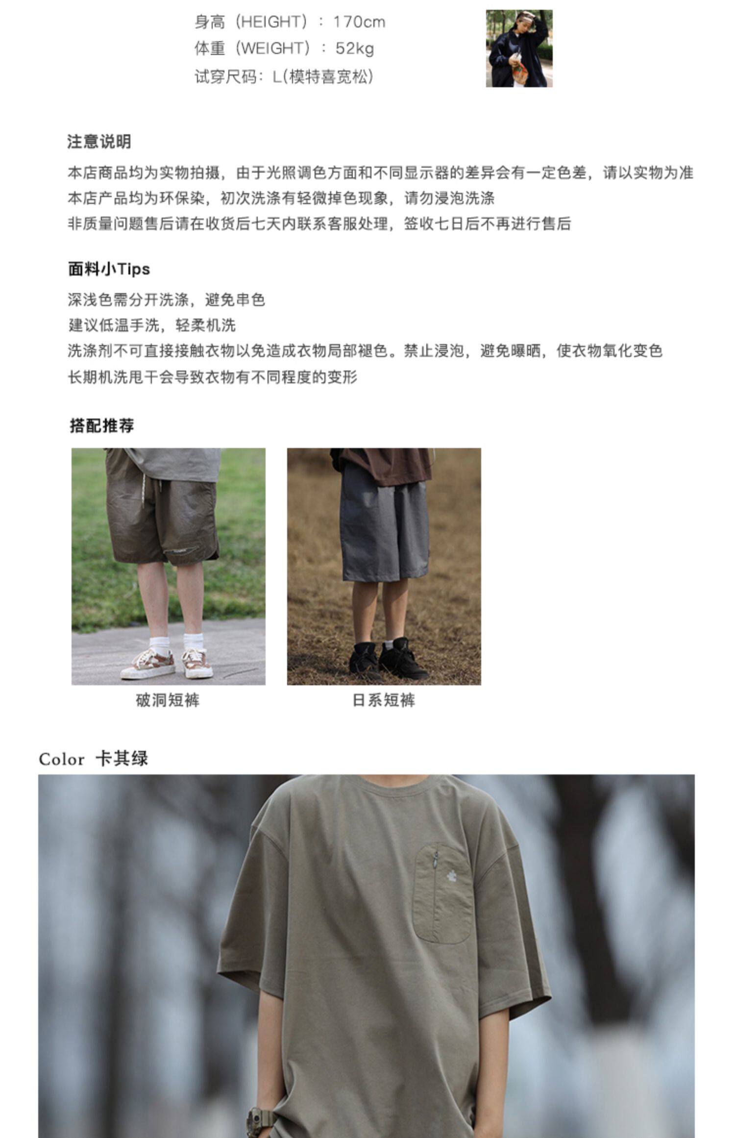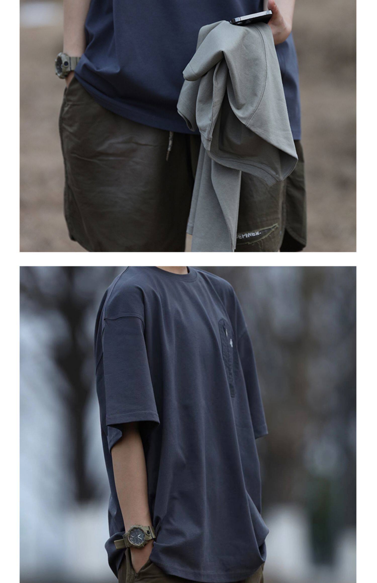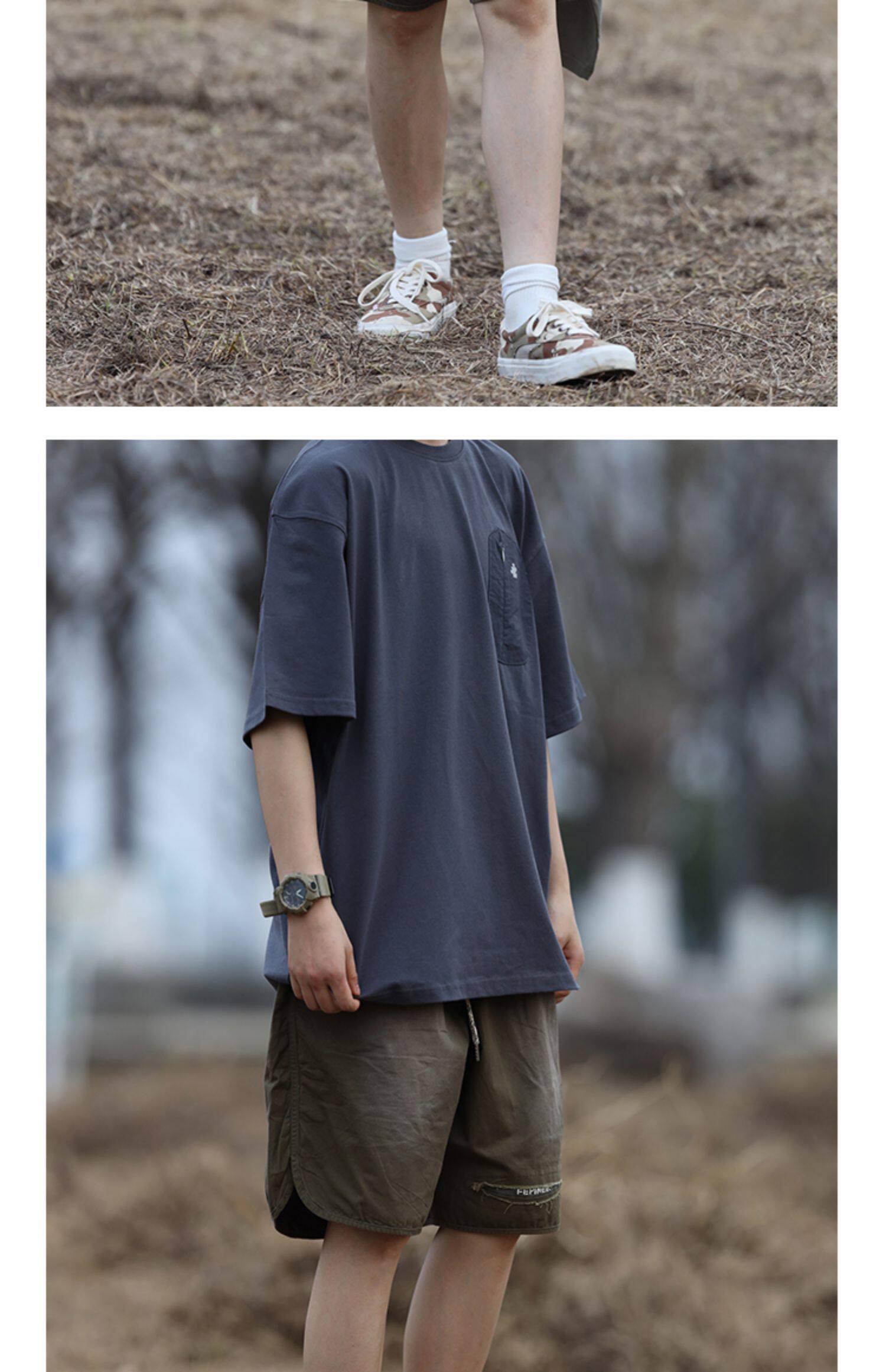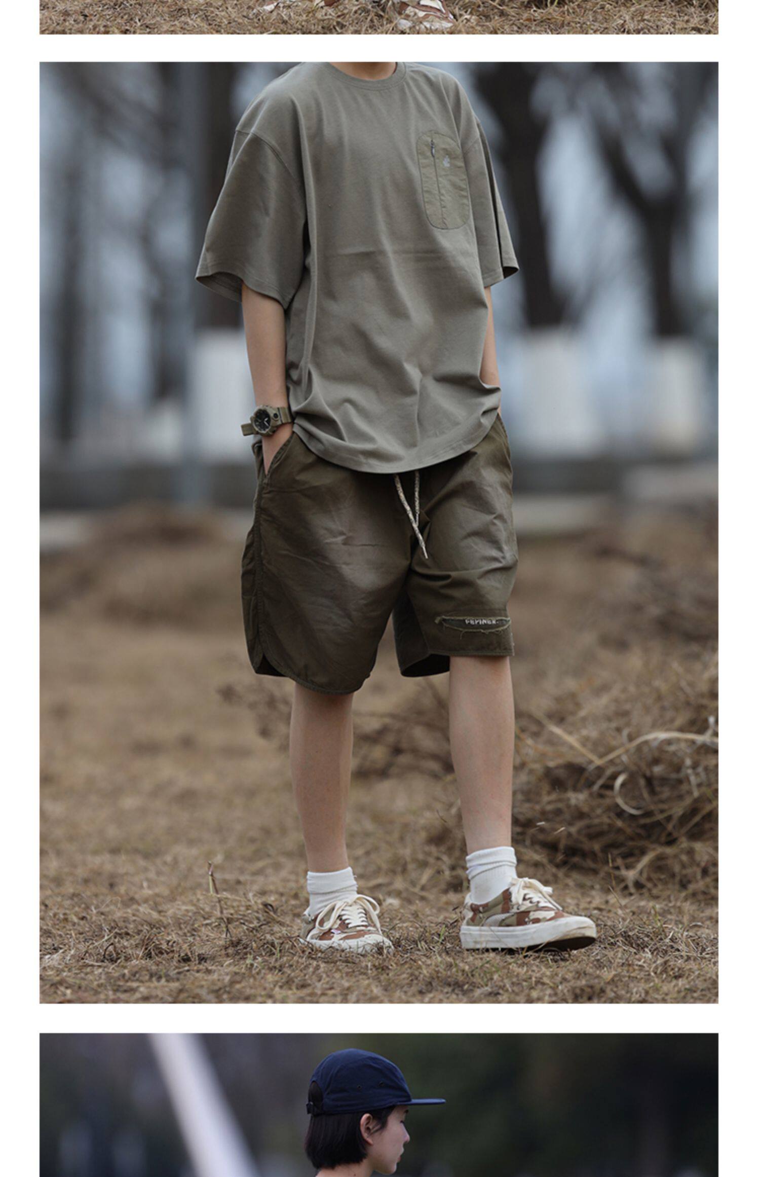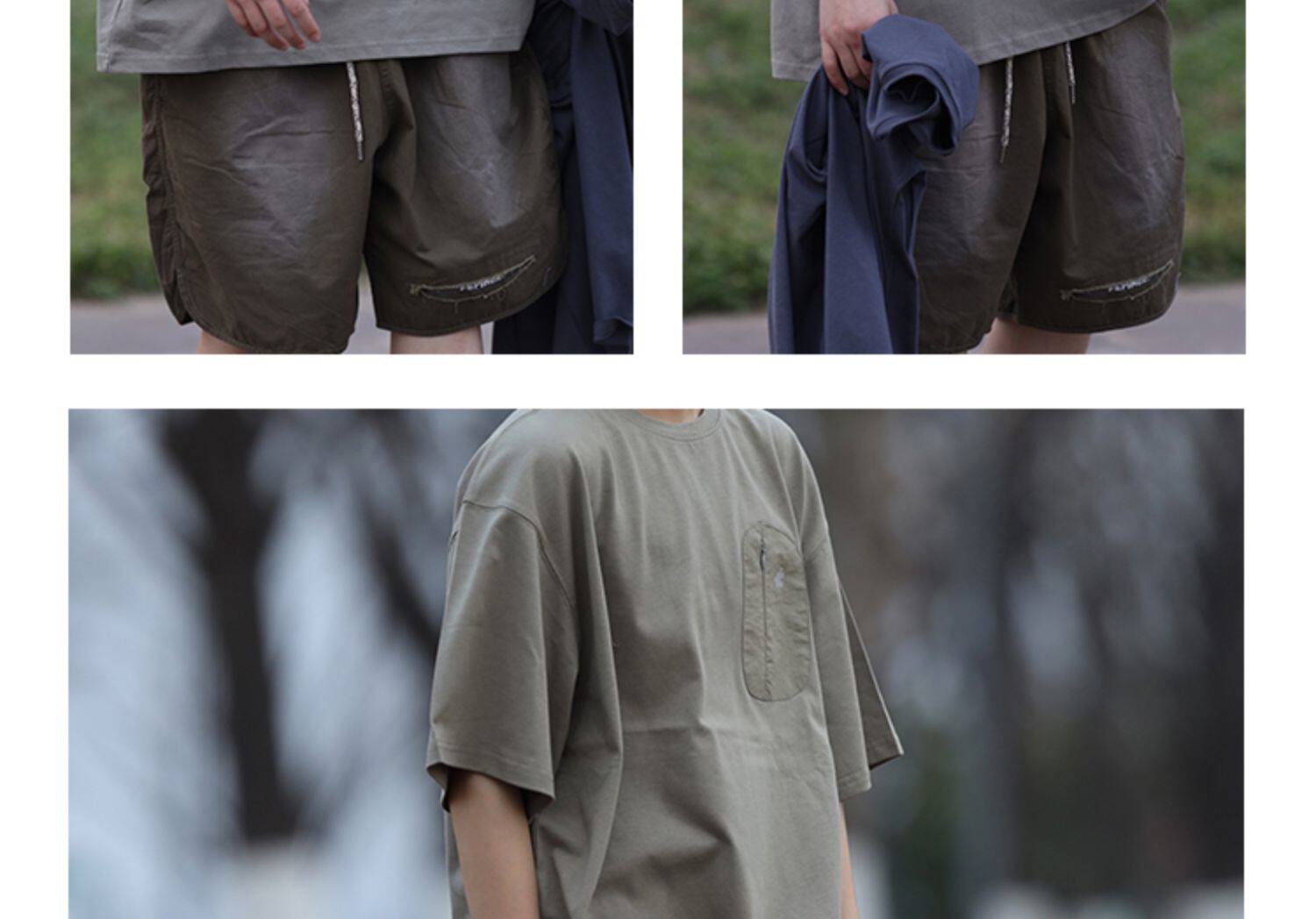 Nobodyknows 夏季日系純色戶外拼接口袋純棉山系短袖男女寬鬆半袖