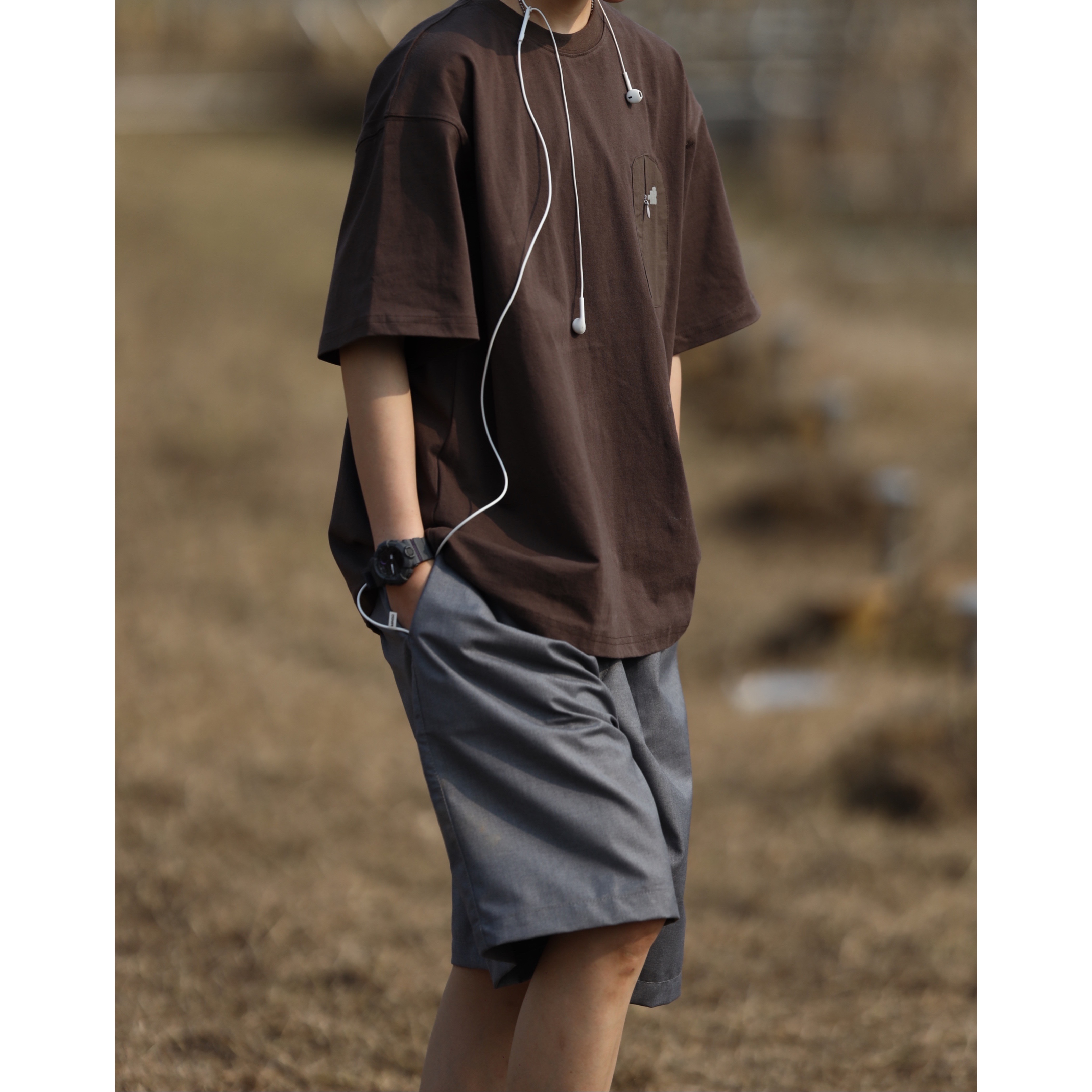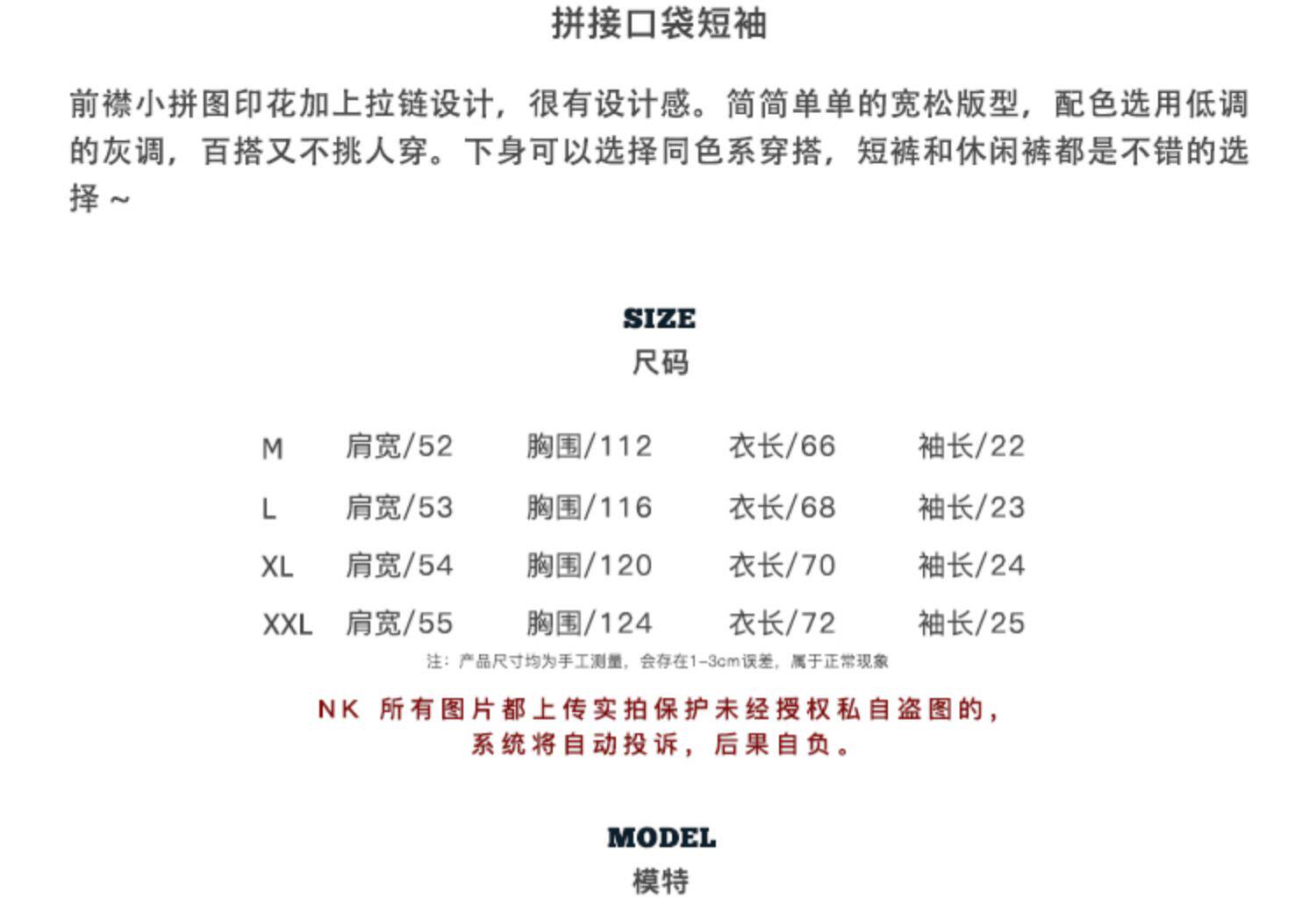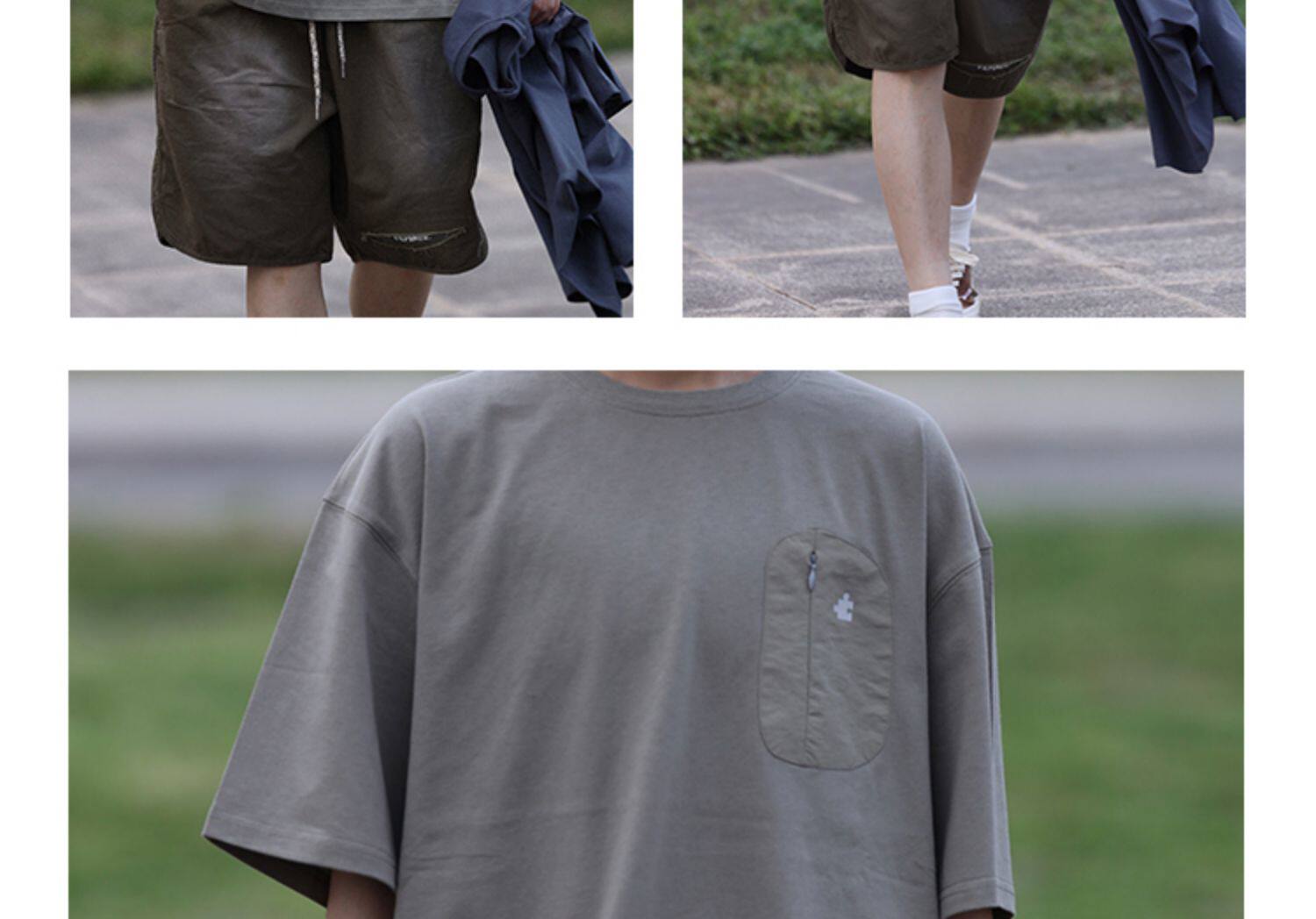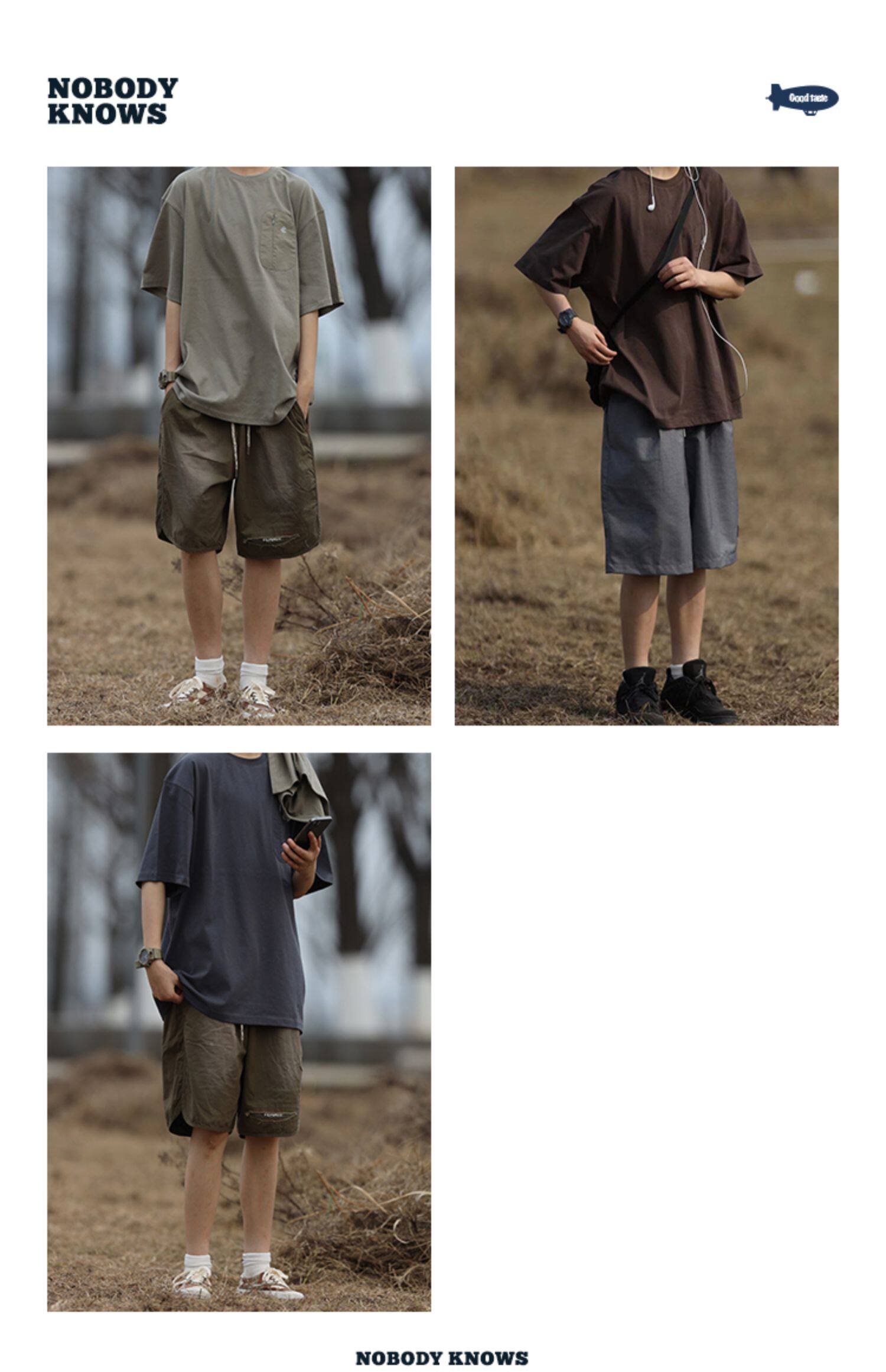 Nobodyknows 夏季日系純色戶外拼接口袋純棉山系短袖男女寬鬆半袖