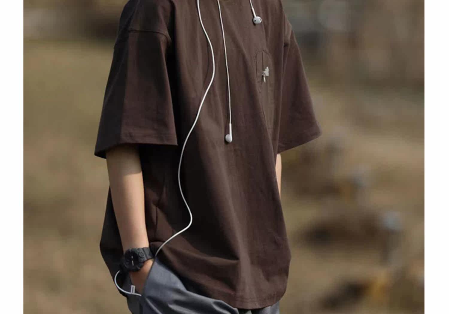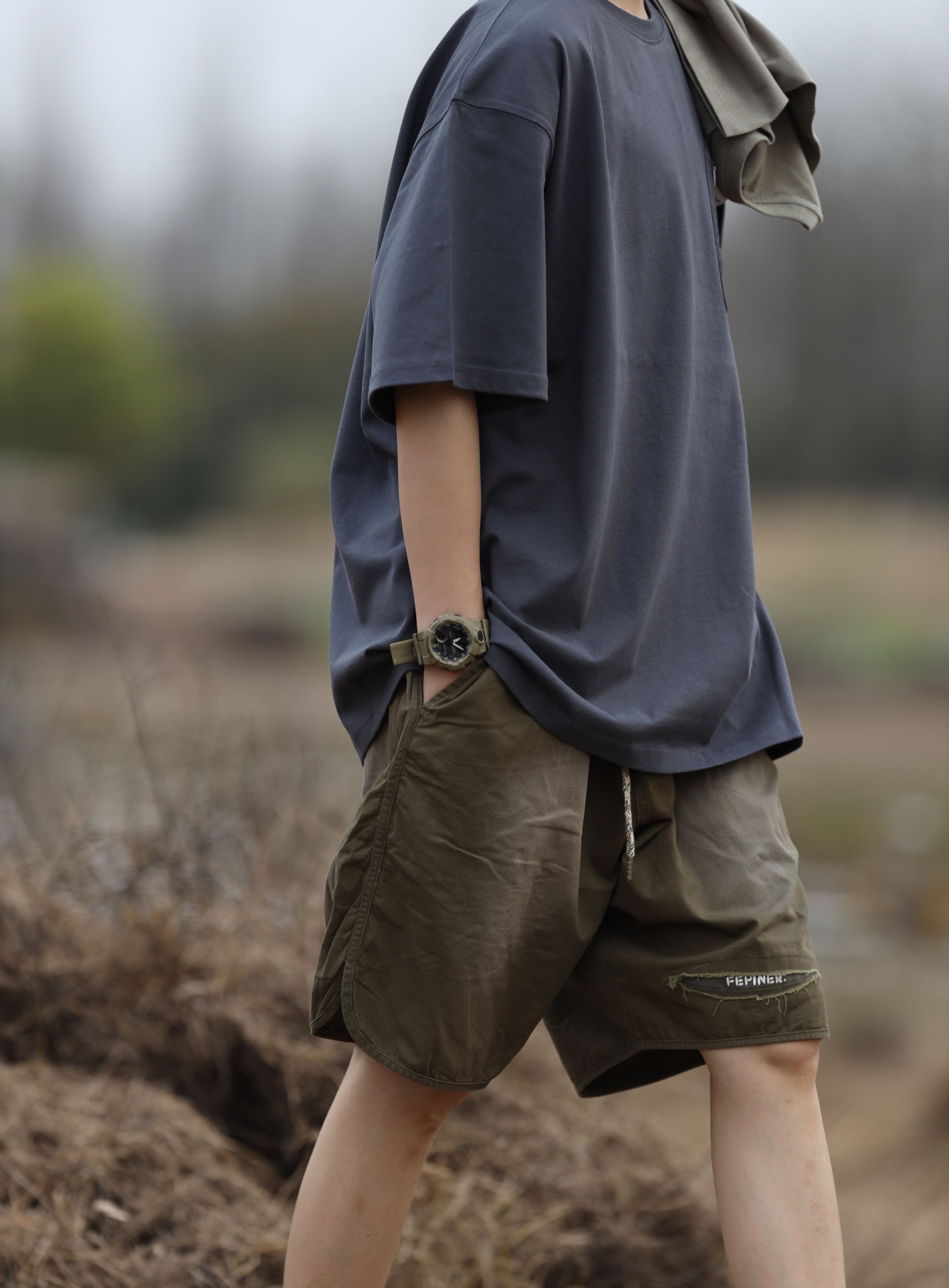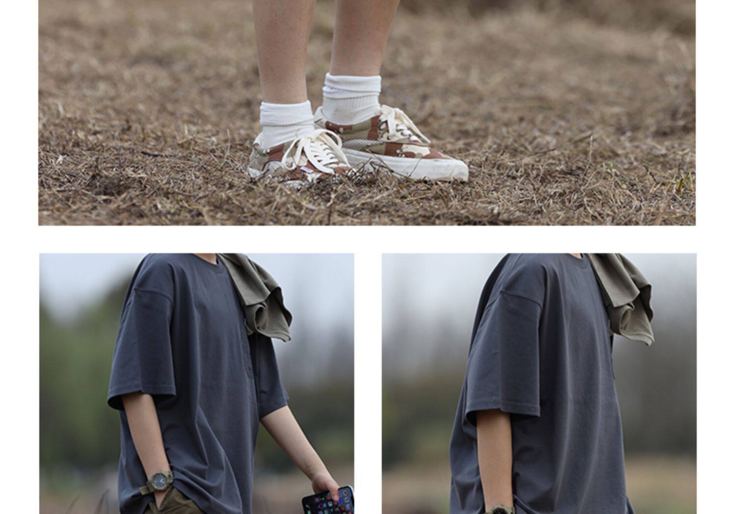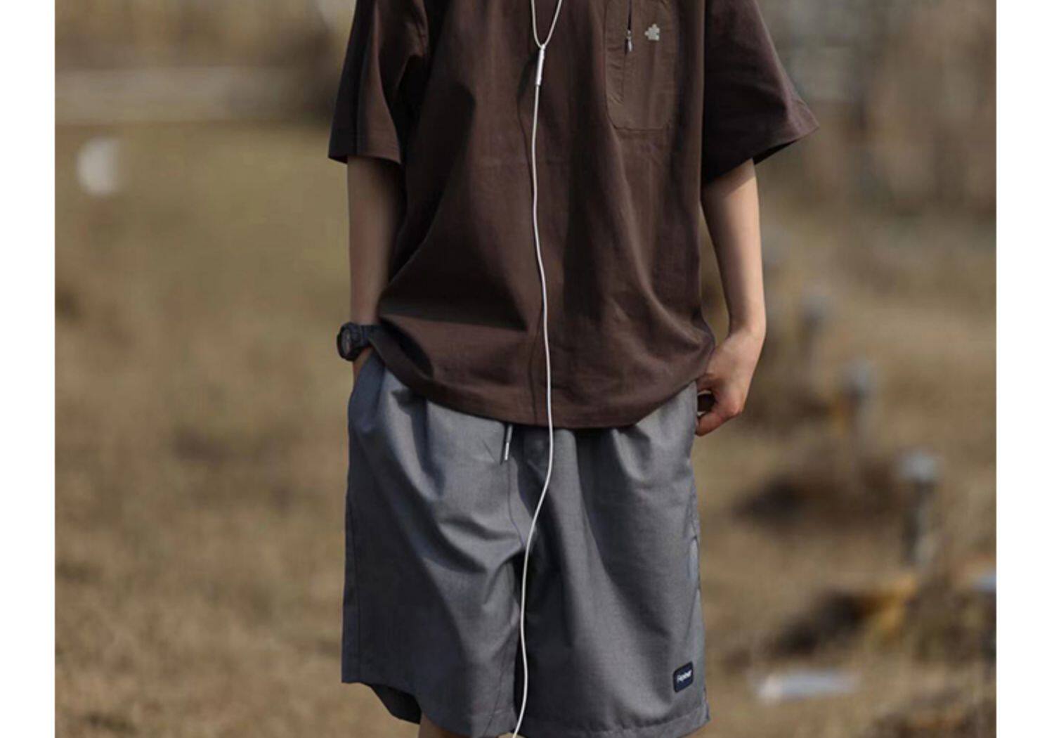 Nobodyknows 夏季日系純色戶外拼接口袋純棉山系短袖男女寬鬆半袖