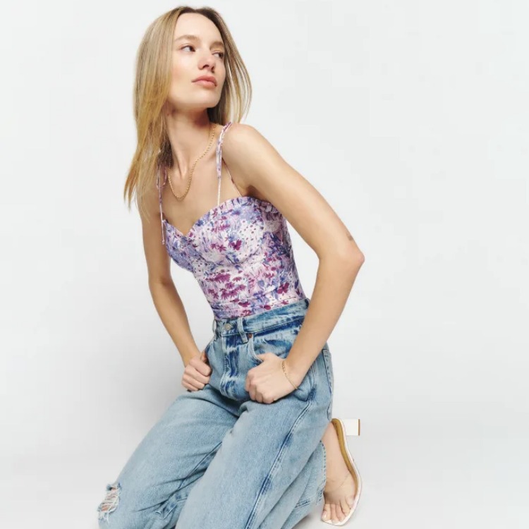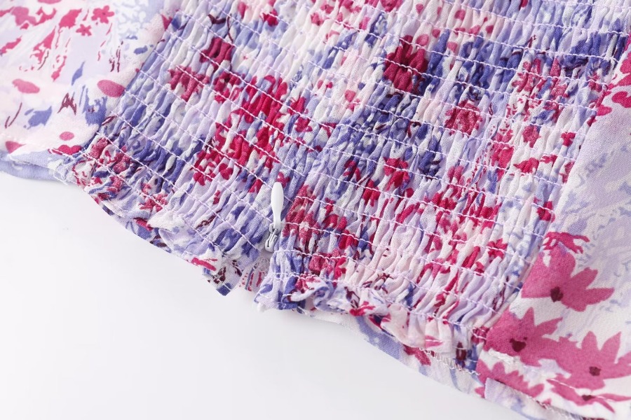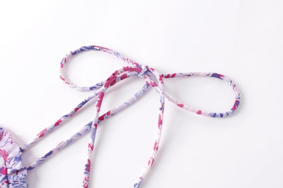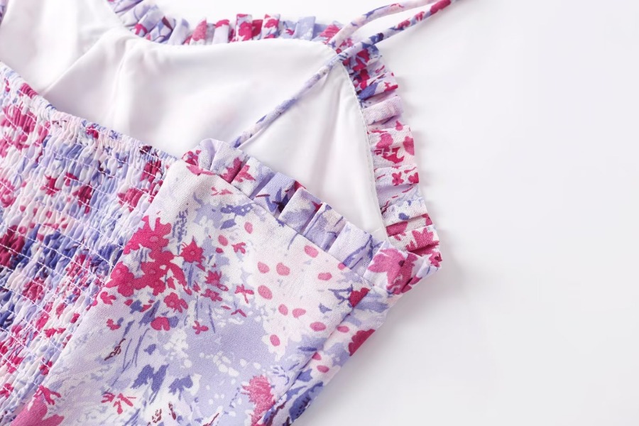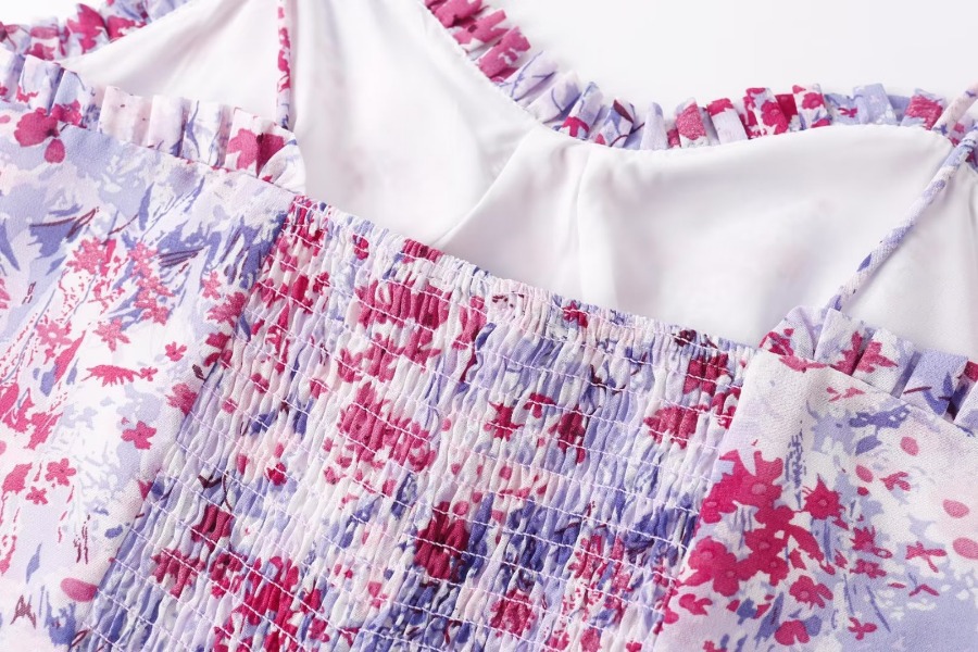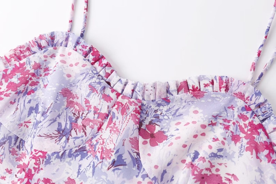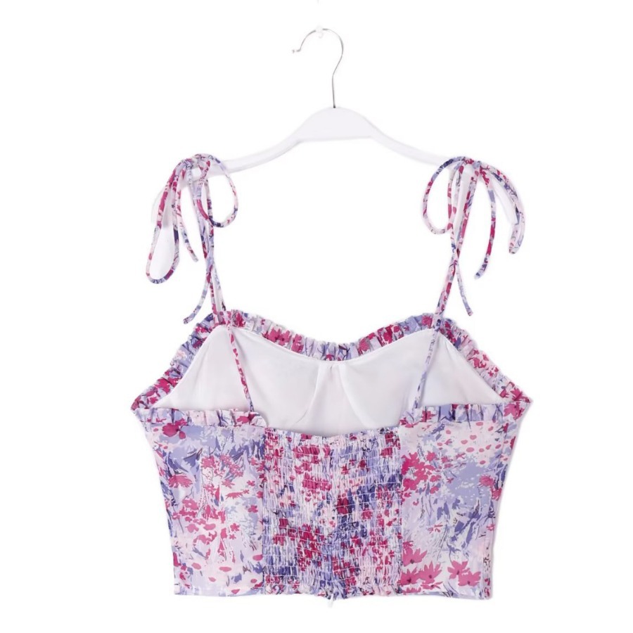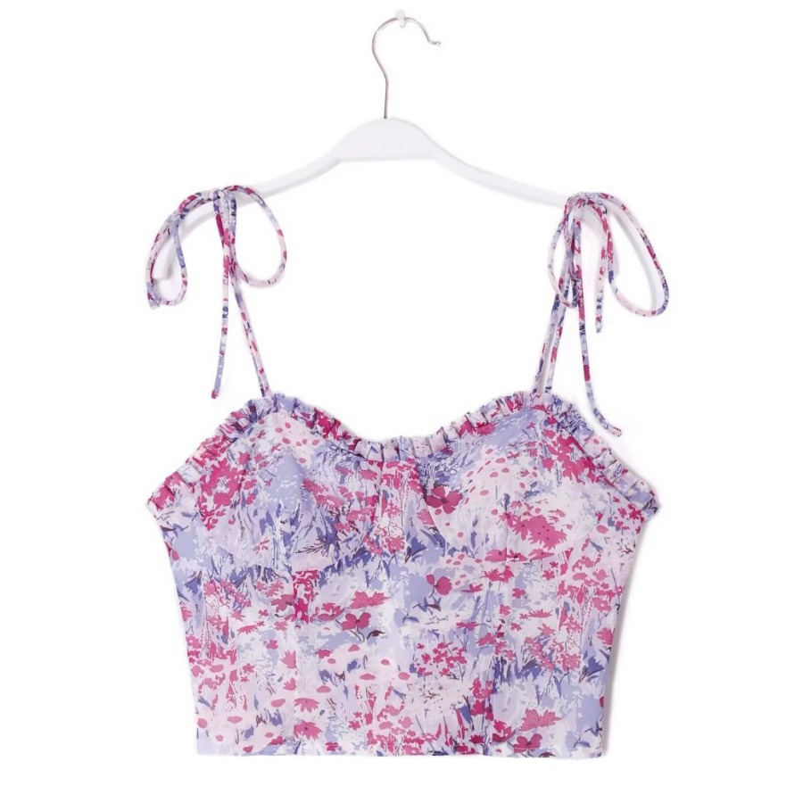 2023夏季新款碎花印花吊带修身短款木耳边系带小背心批发
