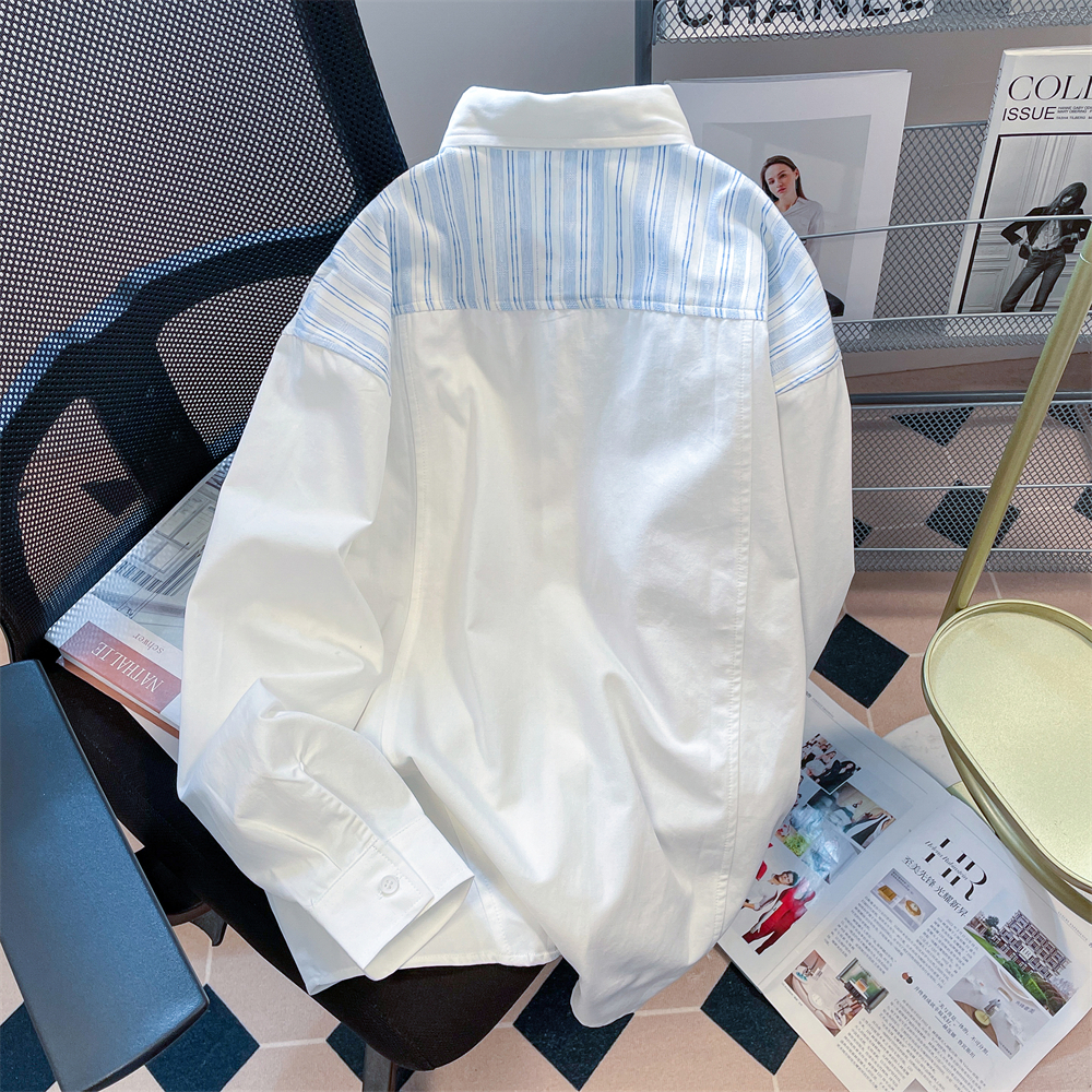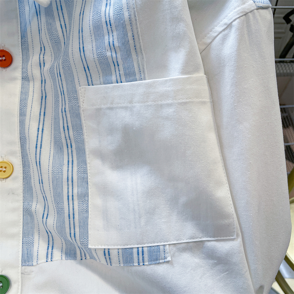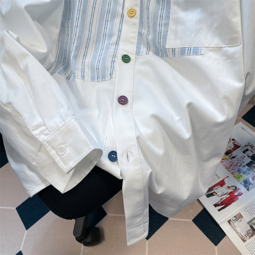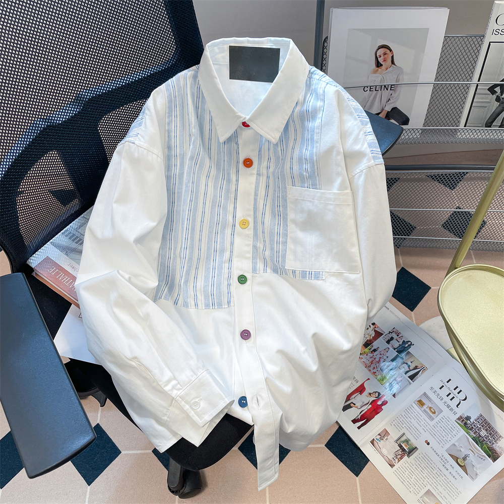 設計感高級小眾彩色鈕釦條紋襯衫女春秋情侶休閒港風外搭長袖上衣