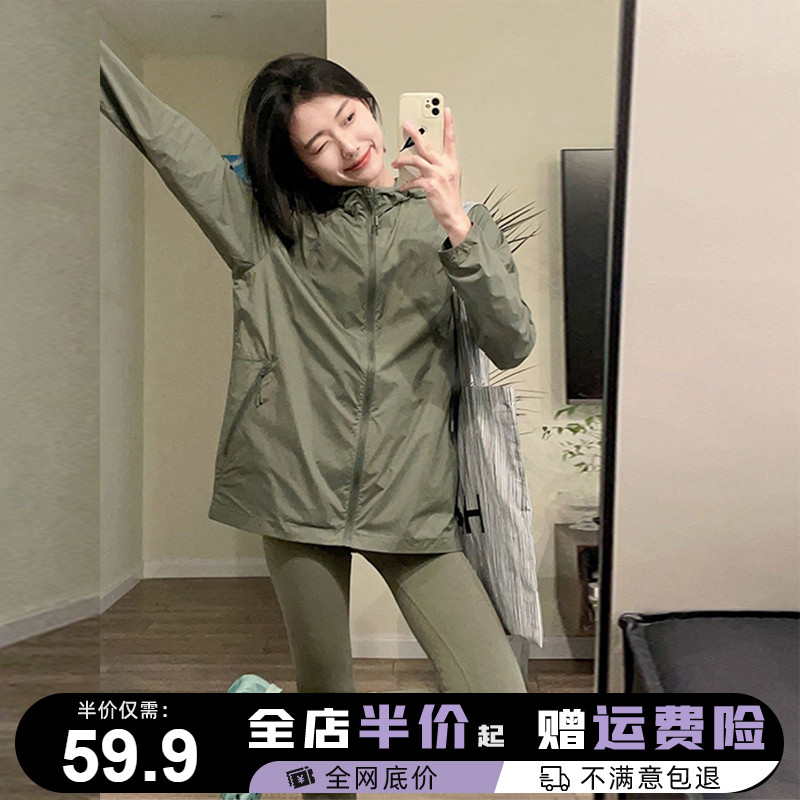 防曬服綠色外套薄款衝鋒衣防曬衣開衫女士夏季休閒2023年新款爆款