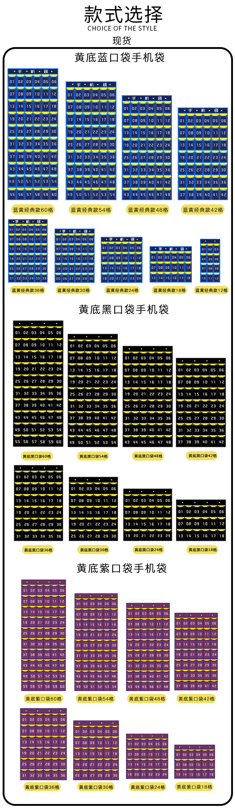 颜色 蓝黄经典款18格,蓝黄经典款12格,蓝黄经典款24格,蓝黄经典款30格,蓝黄经典款36格,蓝黄经典款42格,蓝黄经典款48格,蓝黄经典款54格,蓝黄经典款60格,【分体款】蓝黄经典款60格(2只一套),【分体款】蓝黄经典款72格(2只一套),黄底黑口袋款12格,黄底黑口袋款18格,黄底黑口袋款24格,黄底黑口袋款30格,黄底黑口袋款36格,黄底黑口袋款42格,黄底黑口袋款48格,黄底黑口袋款54格,黄底紫口袋款18格,黄底紫口袋款24格,黄底紫口袋款30格,黄底紫口袋款36格,黄底紫口袋款42格,黄底紫口袋款48格,黄底紫口袋款54格,深蓝色透明款30格,黄色透明款36格,白色透明款36格,藏青透明款36格,天蓝透明款30格,黑色透明款30格,黄底灰口袋款30格,黄底灰口袋款36格