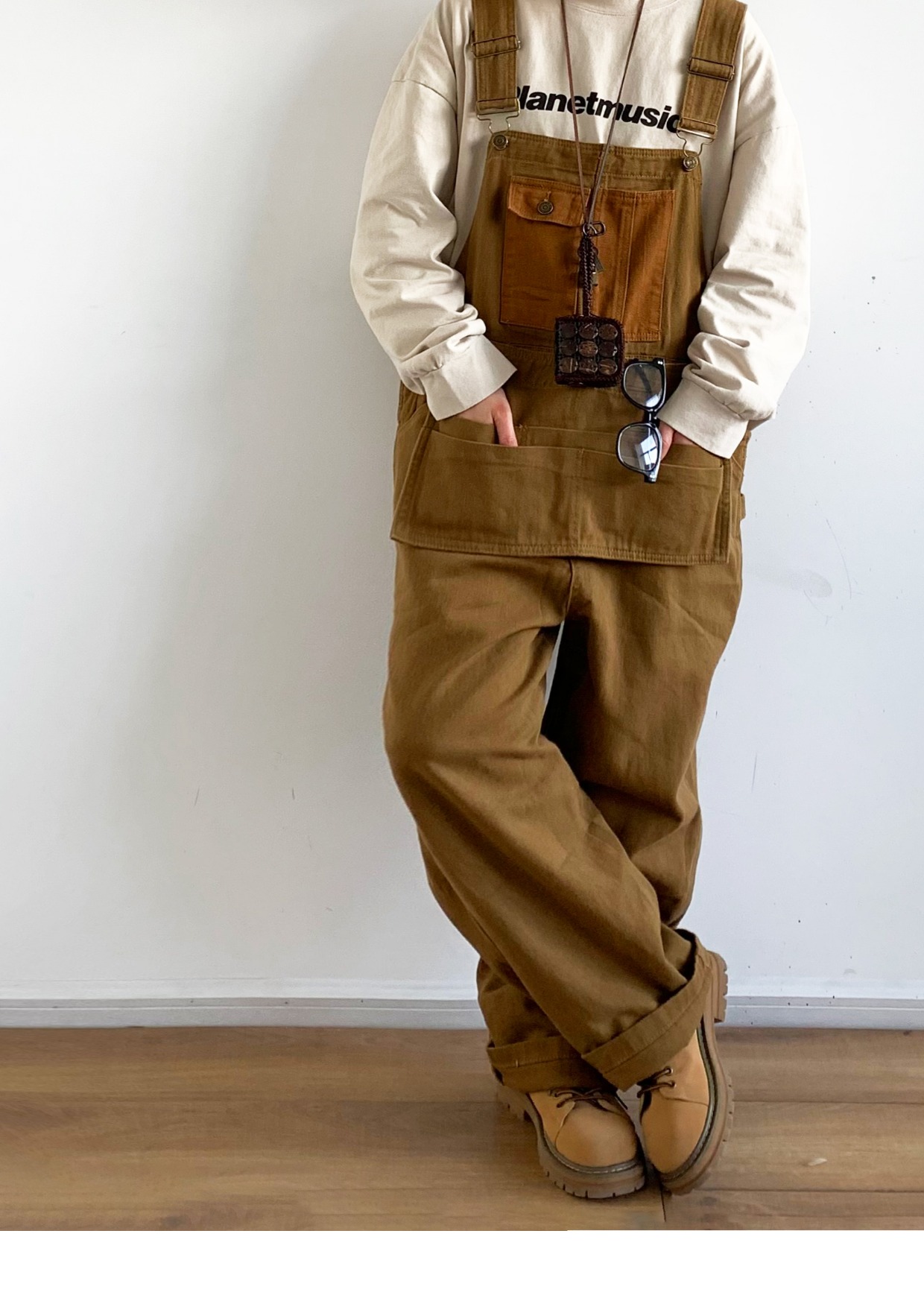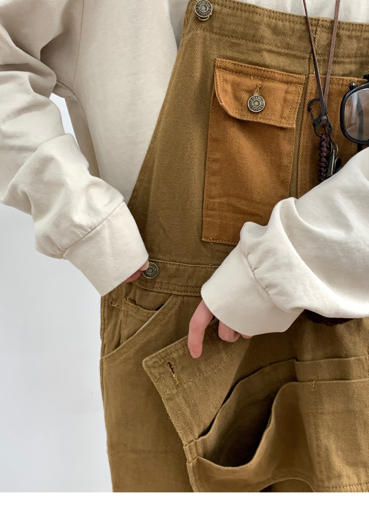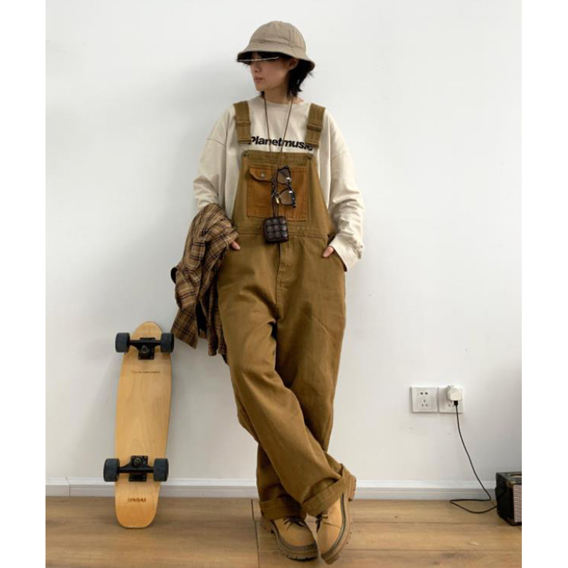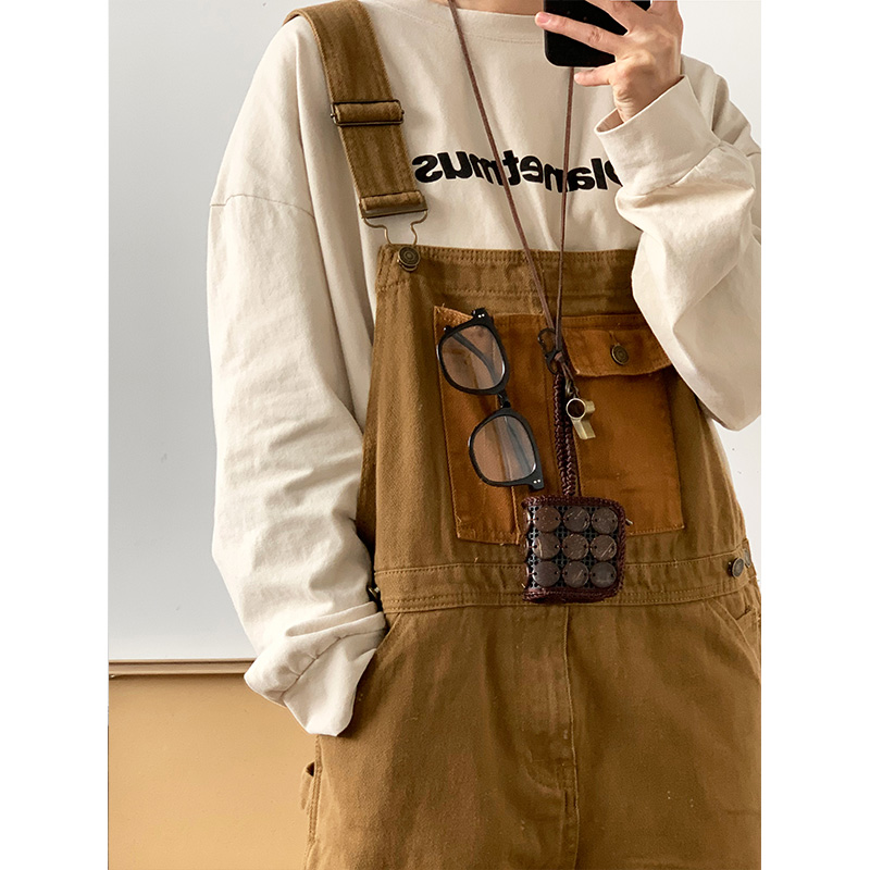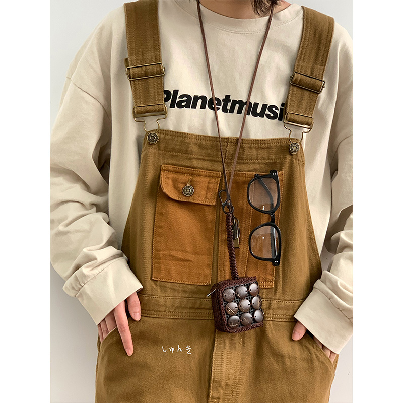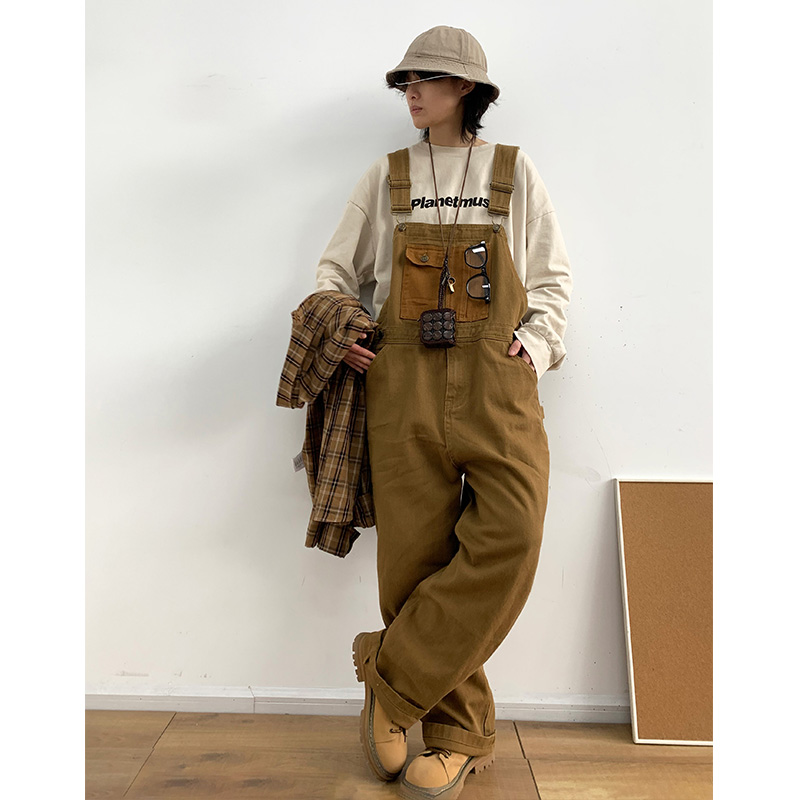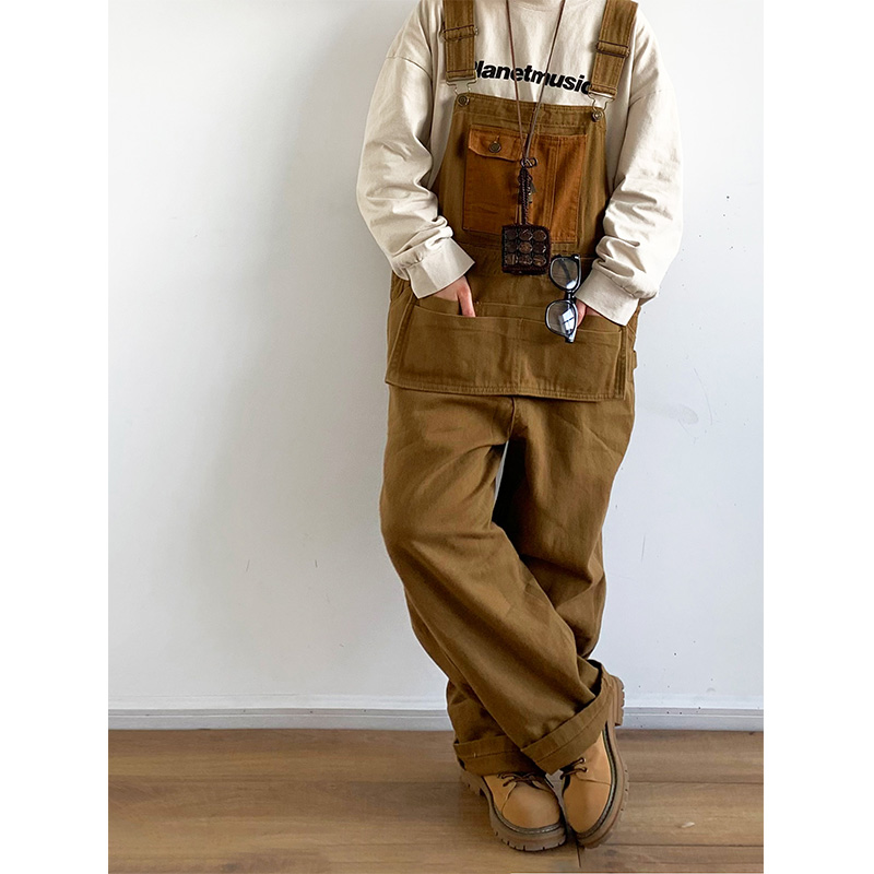 Revival plan 日系復古卡其p44工裝抱嬰袋褲寬鬆咔嘰吊帶褲長褲男女