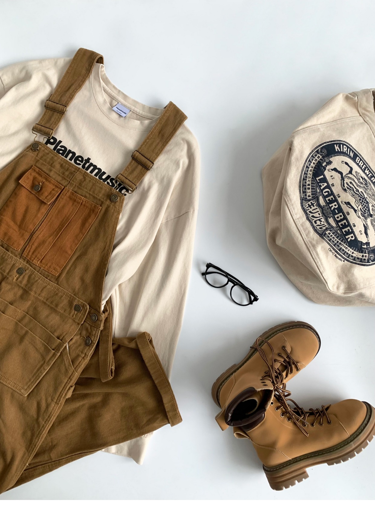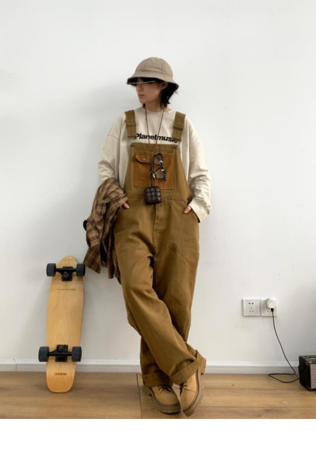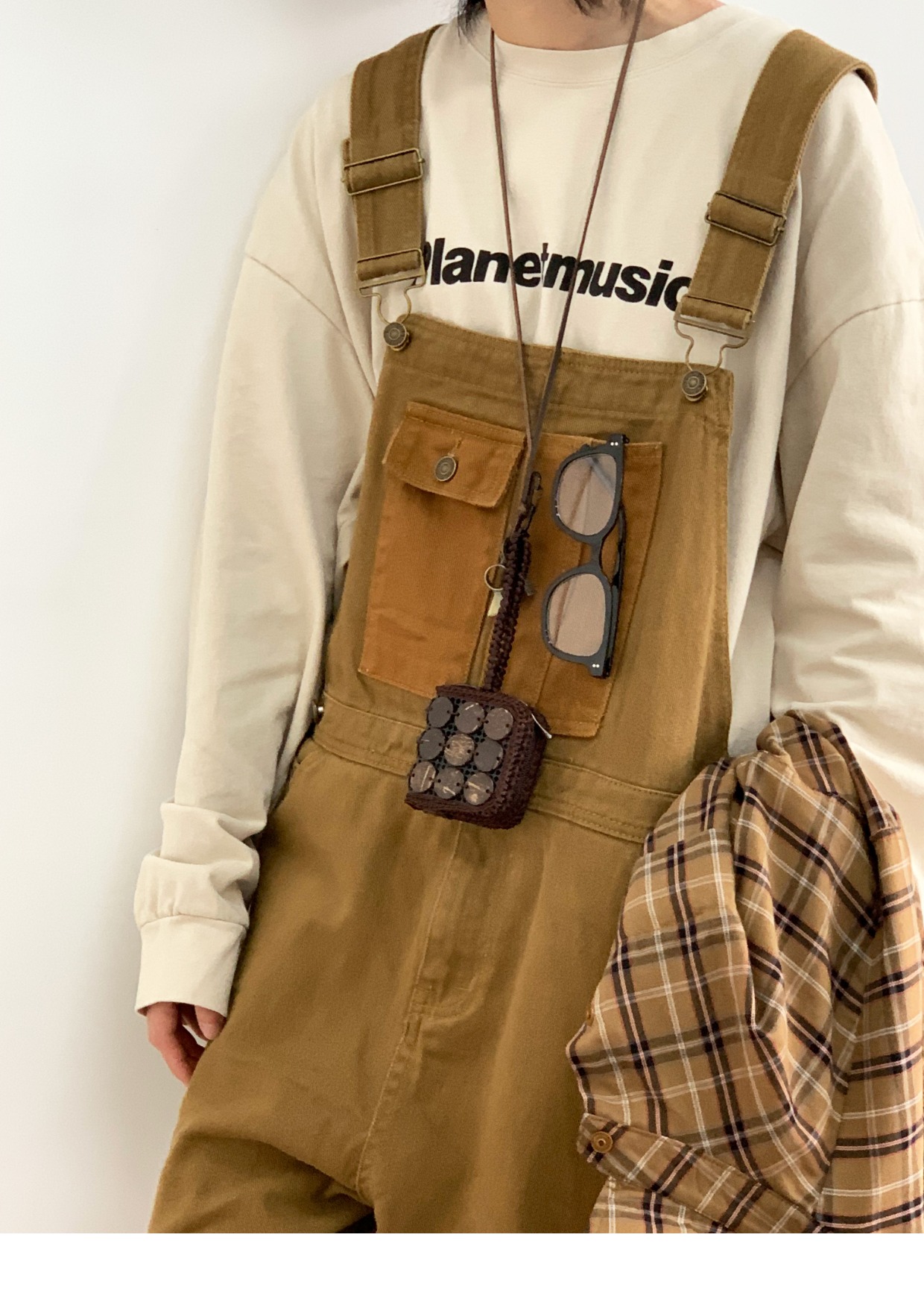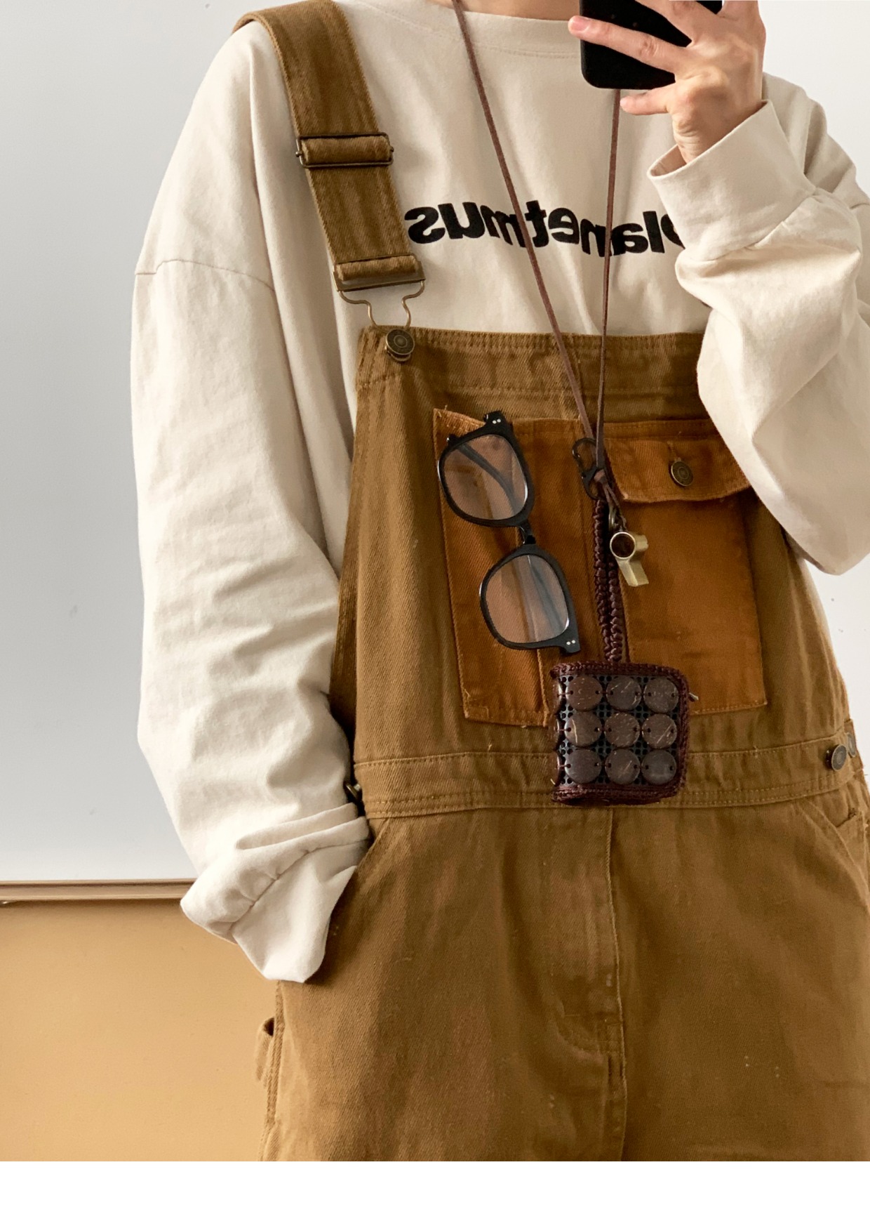 Revival plan 日系復古卡其p44工裝抱嬰袋褲寬鬆咔嘰吊帶褲長褲男女