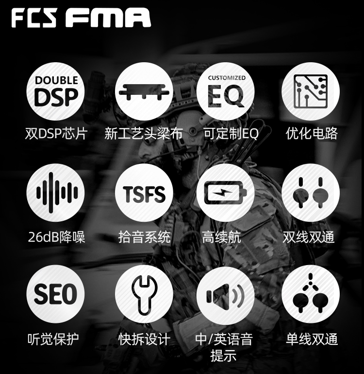FMA FCS 新版 AMP 數字版拾音降噪通信戰術耳機 射擊聽力保護耳罩